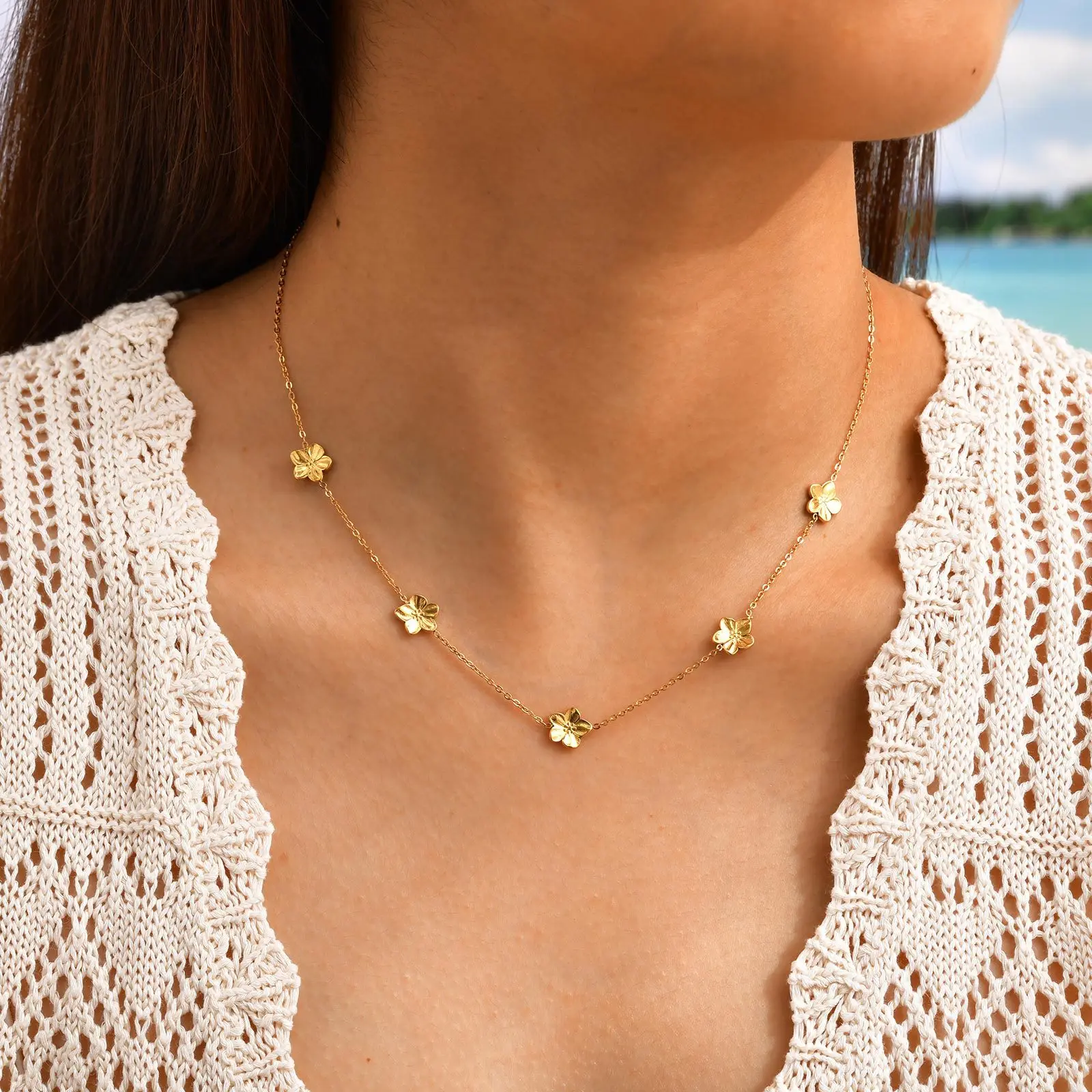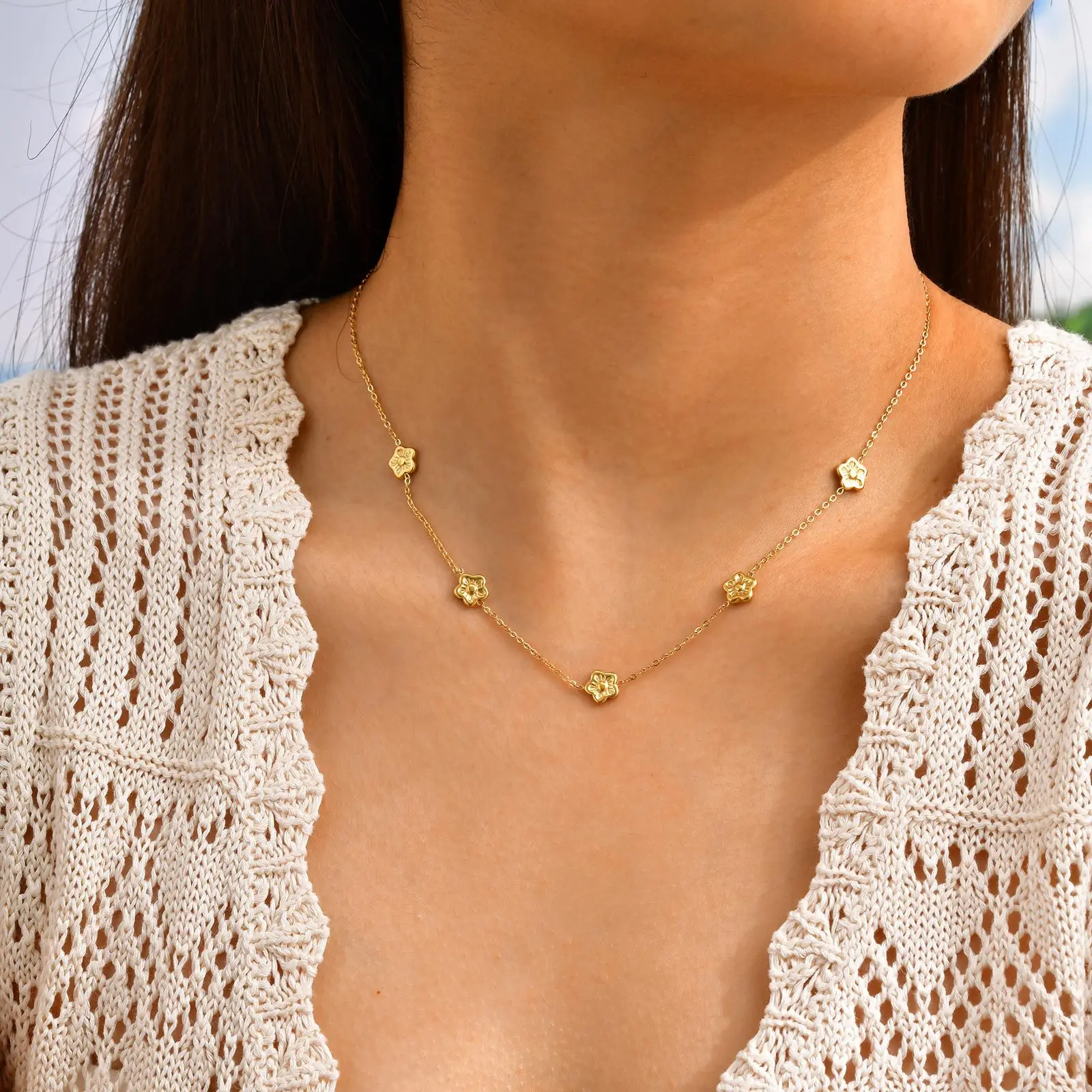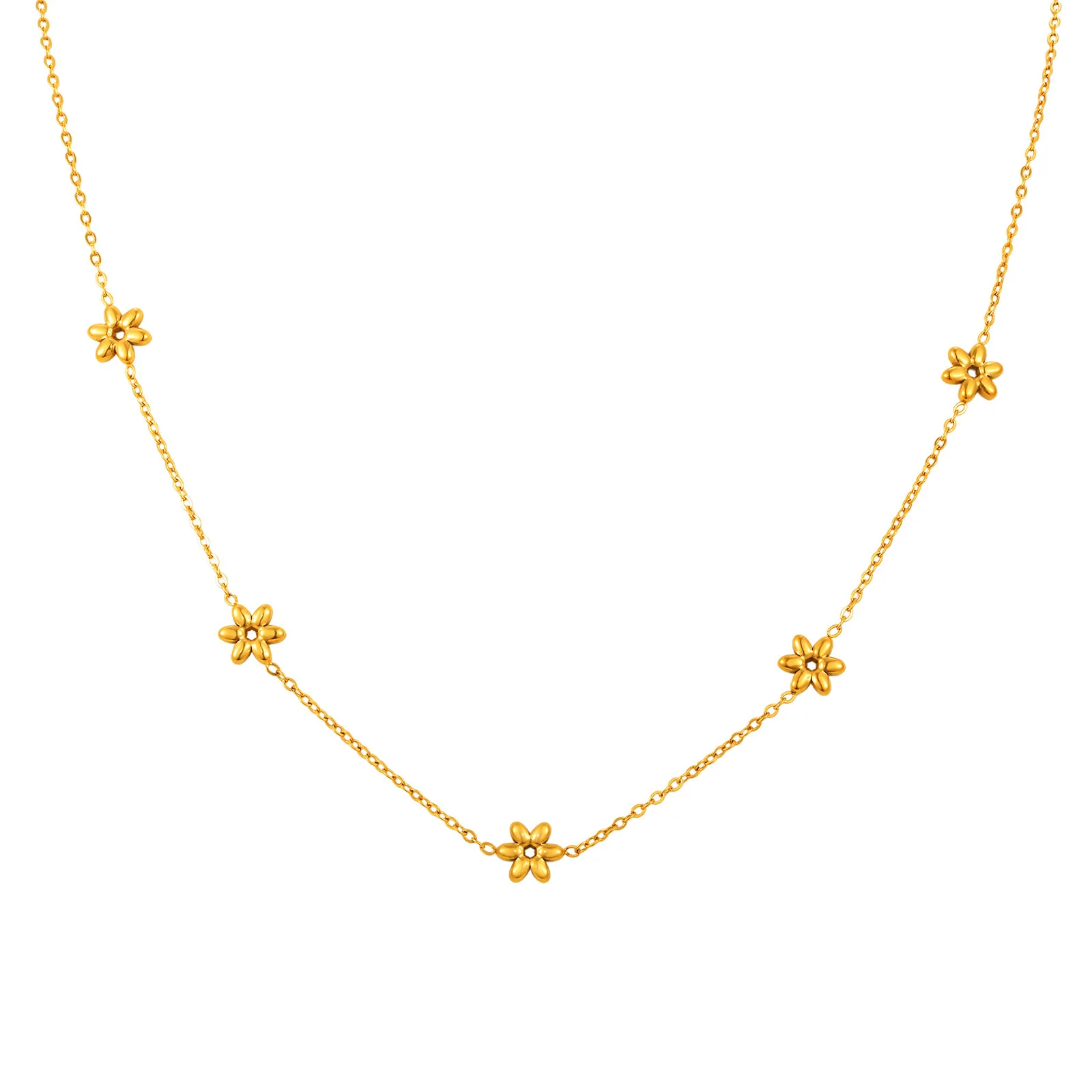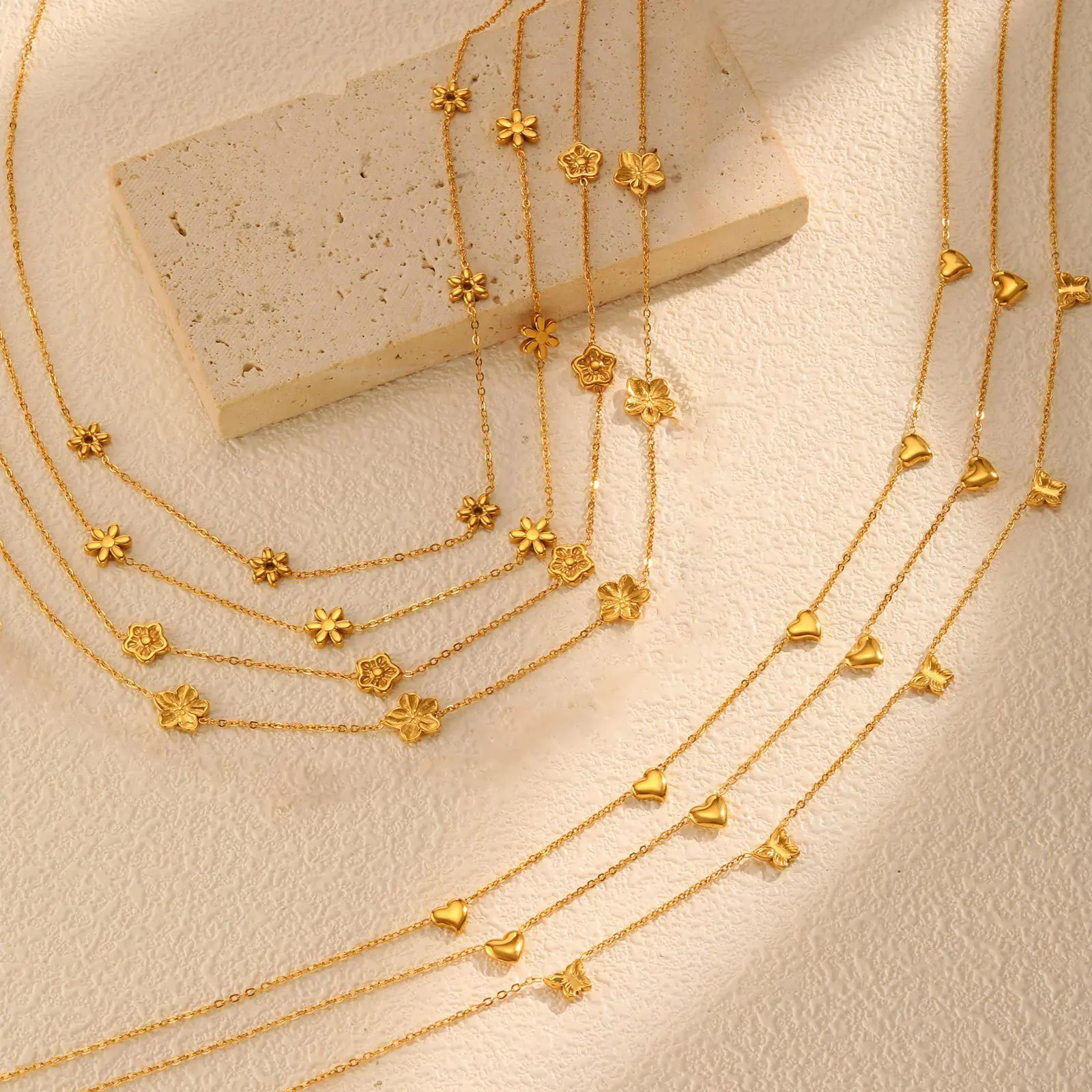 Summer Simple Gold Plated Stainless Steel Link Chain Choker Necklace Flower Heart Butterfly Necklace for Women