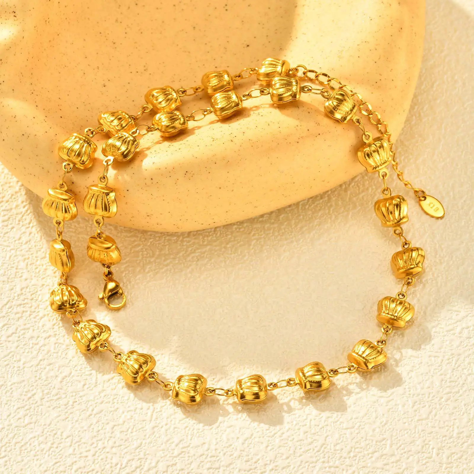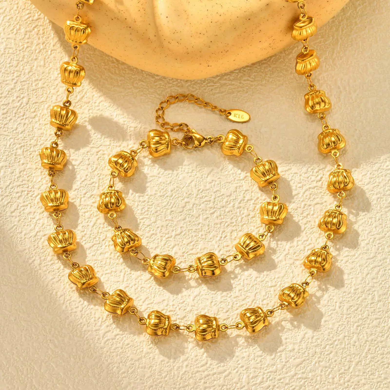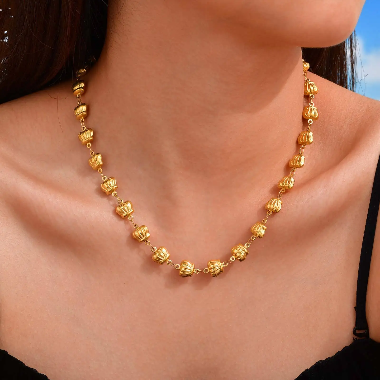 Women's Punk Style Stainless Steel Gold Plated Necklace Geometric Pattern Crown Shape Link Chain Necklace