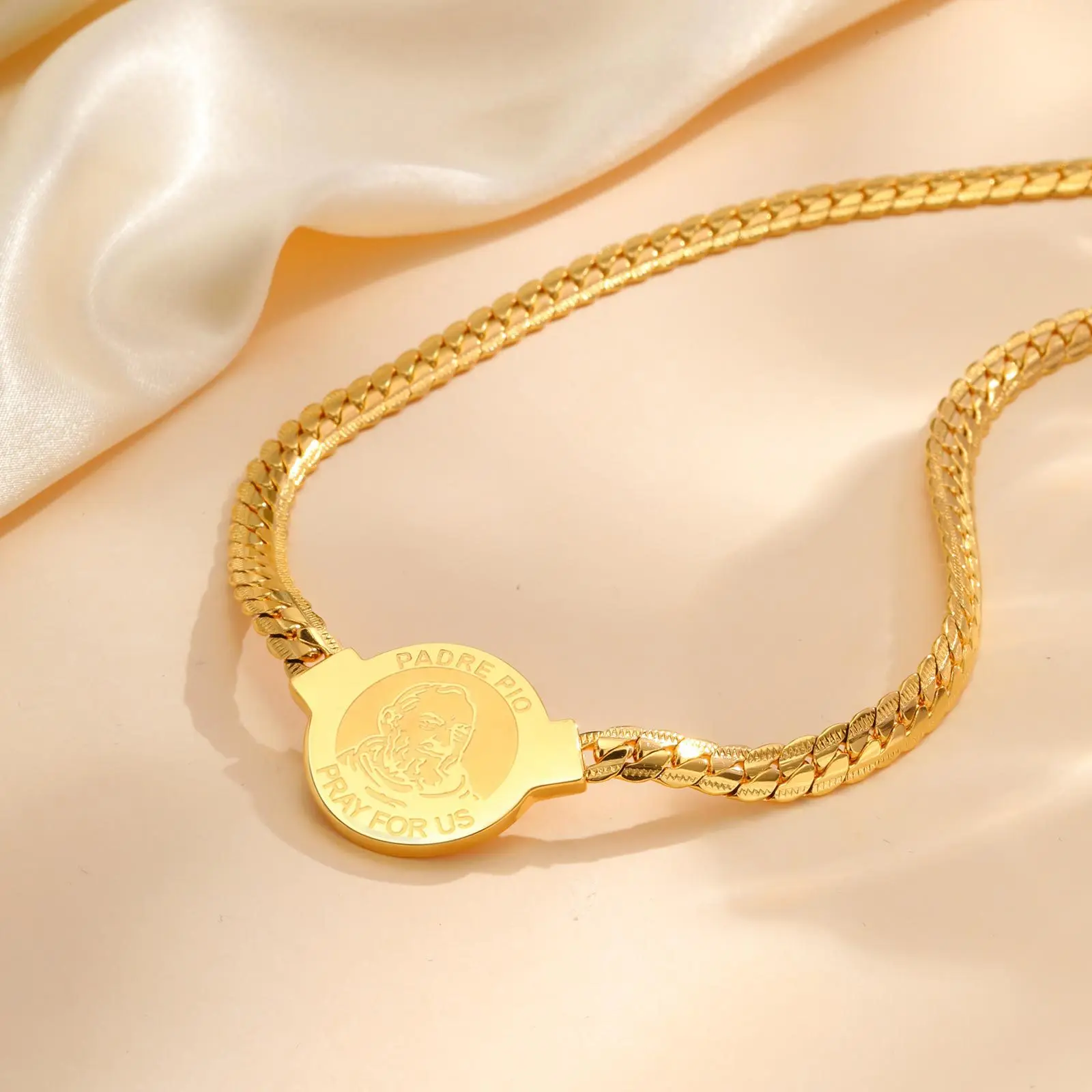 New Trendy Nk Chain Saint Judas Round Pendant Religious All-match Stainless Steel Encryption Pendant Necklace