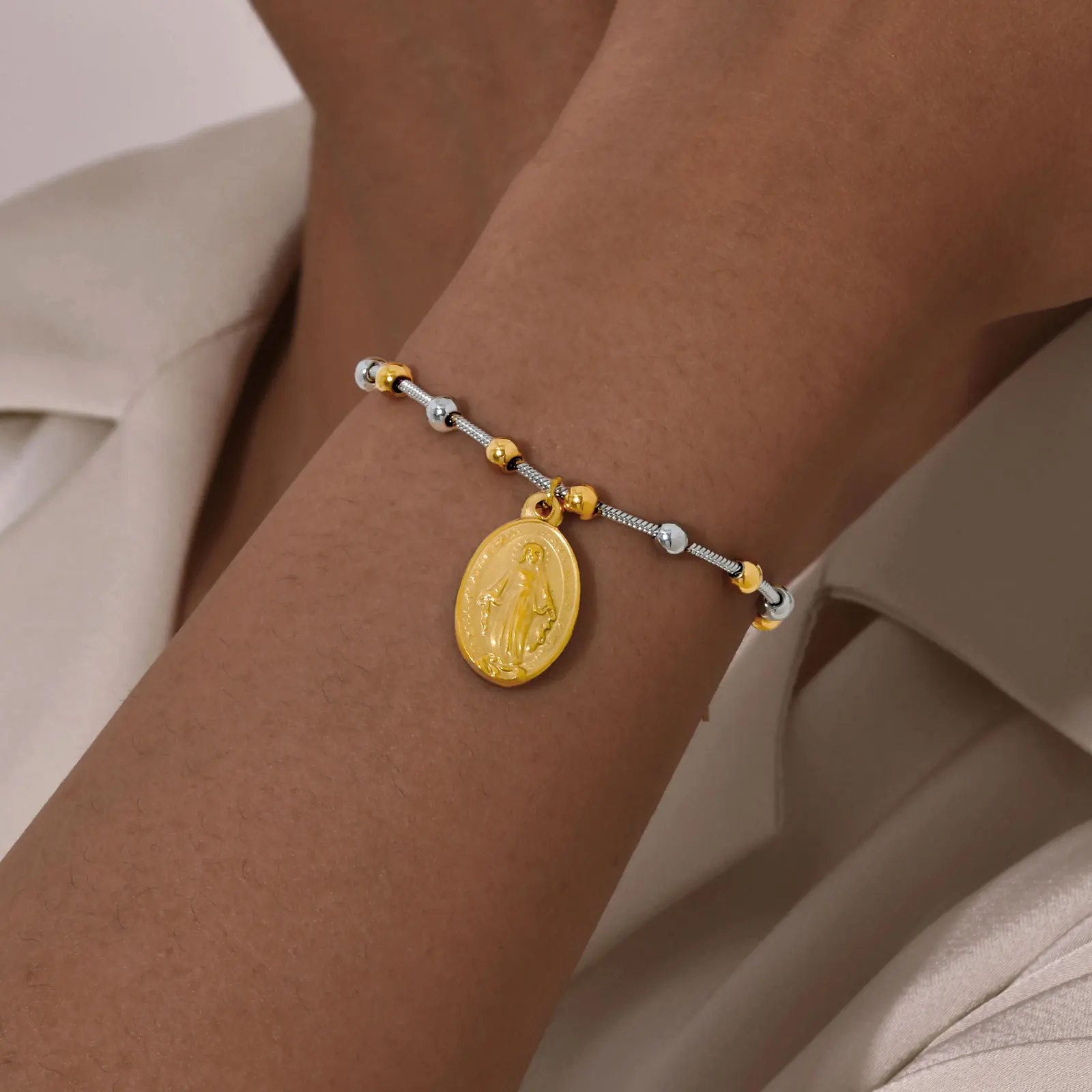 Fashion Women Men Stainless Steel Charm Cross Virgin Mary Bracelet 18k Gold Plated Beads Chain Bracelet