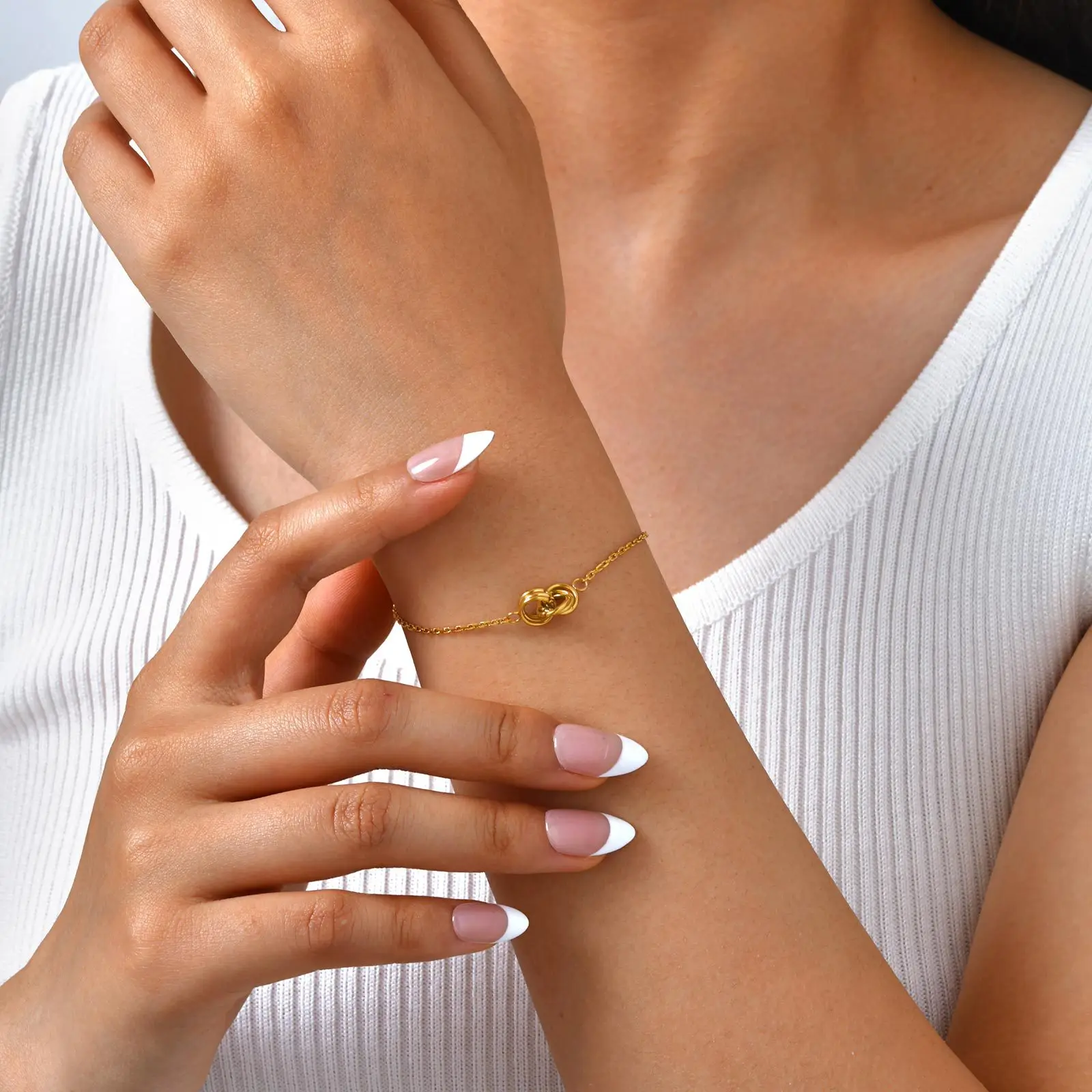 Fashion Minimalist Adjustable Chain Knot Heart Wrapped Bracelets Gold Plated Bracelet for Women