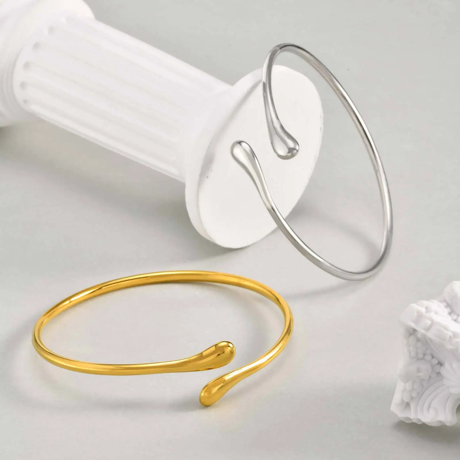 New Trendy Women Jewelry Open Adjustable Bangle 18k Gold Plated Stainless Steel Smooth Water Drop Opening Bracelet