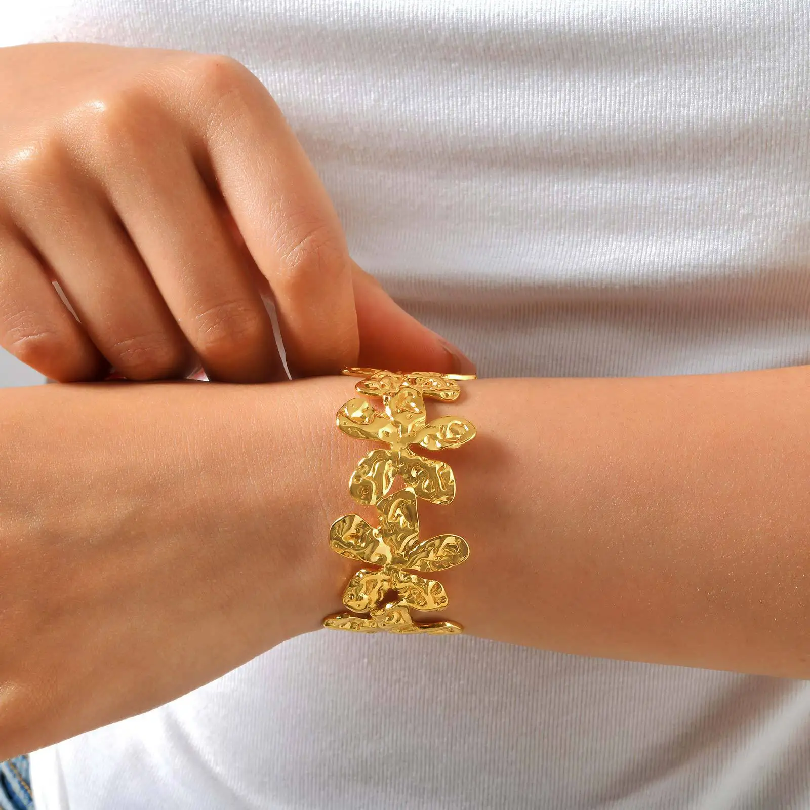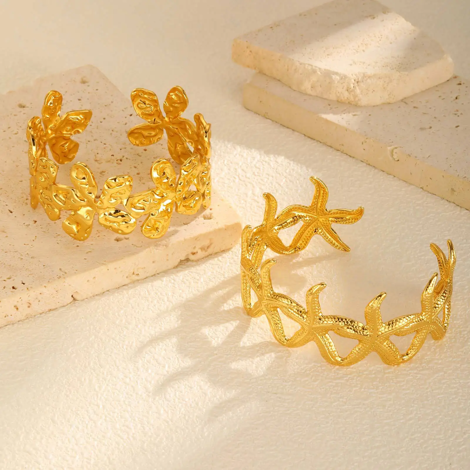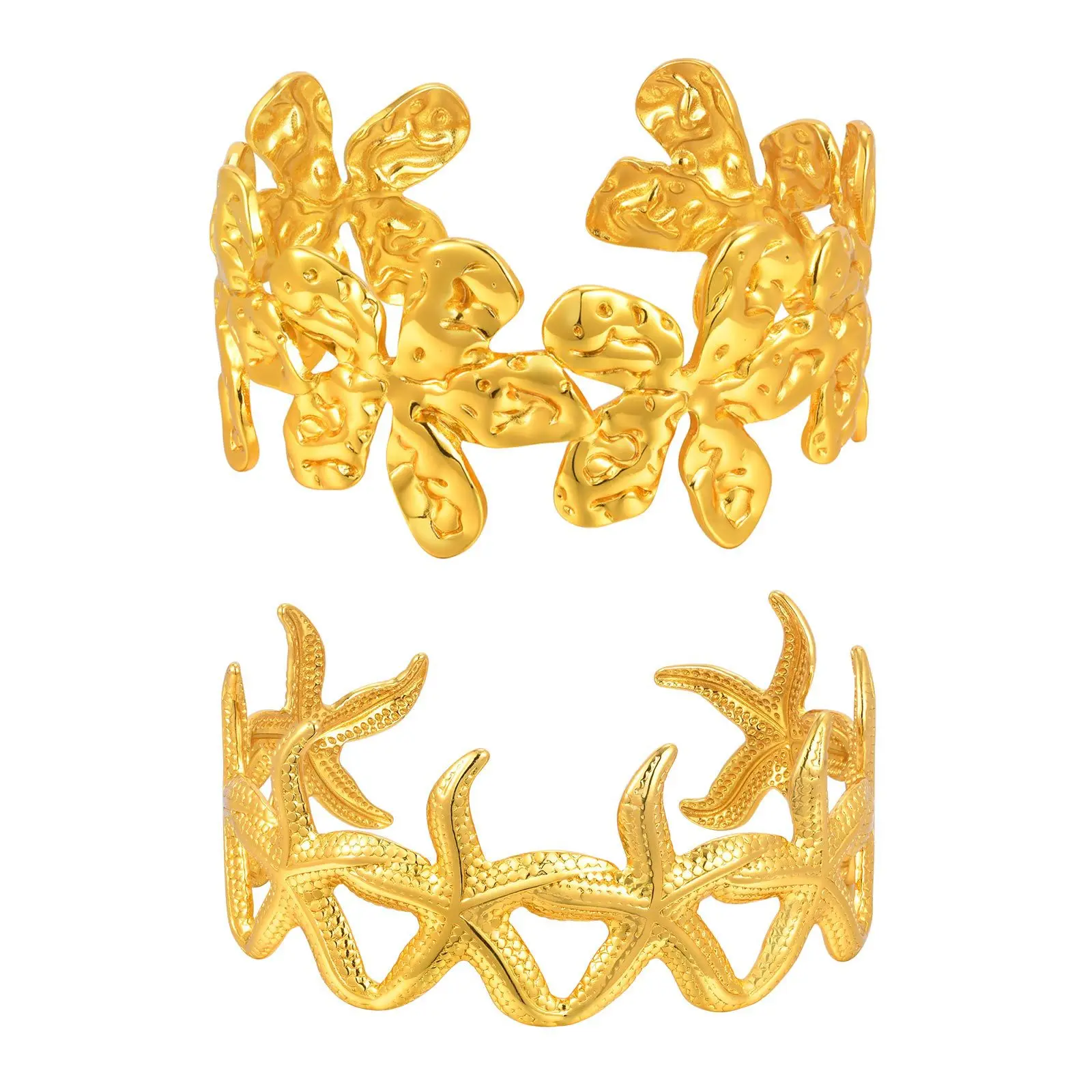 Personalized Waterproof Jewelry Stainless Steel Flower Starfish Shape Bangle 18k Gold Plated Open Bangle Bracelet
