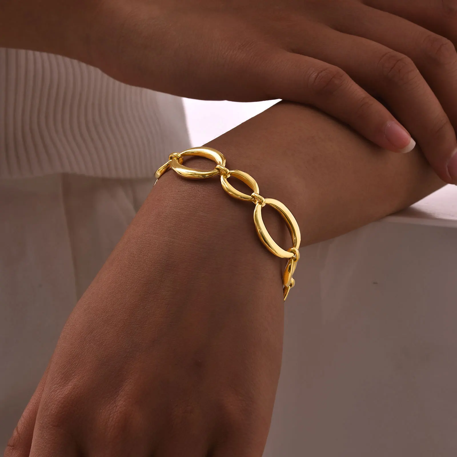 Simple Stainless Steel Chunky Link Chain Bracelet 18k Gold Plated Geometric Pattern Bracelet for Women