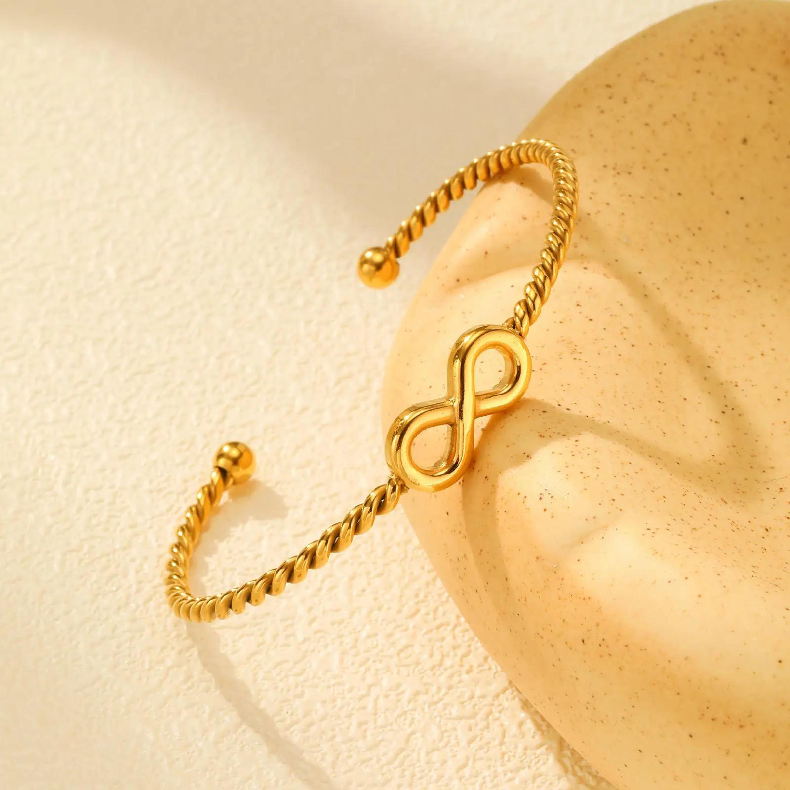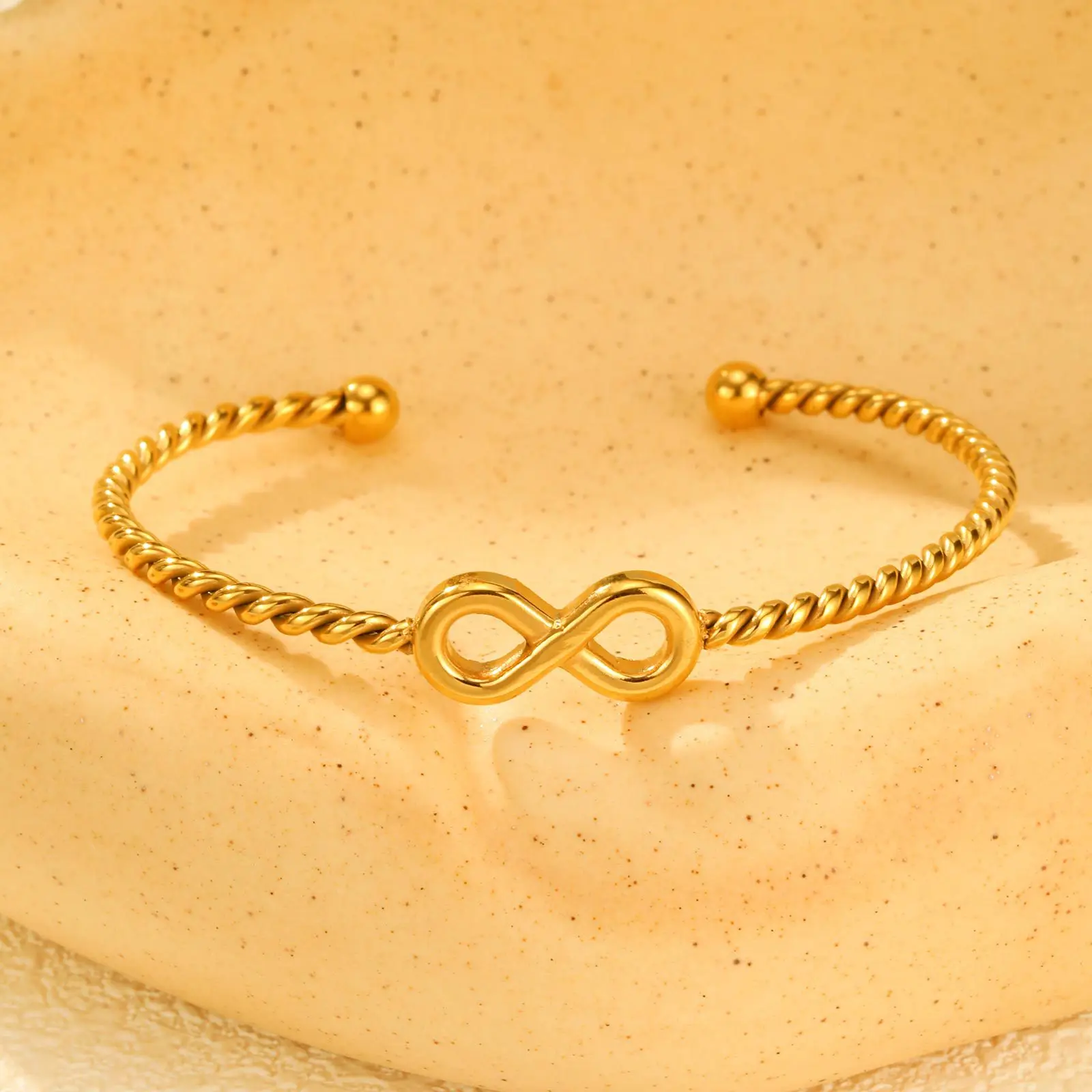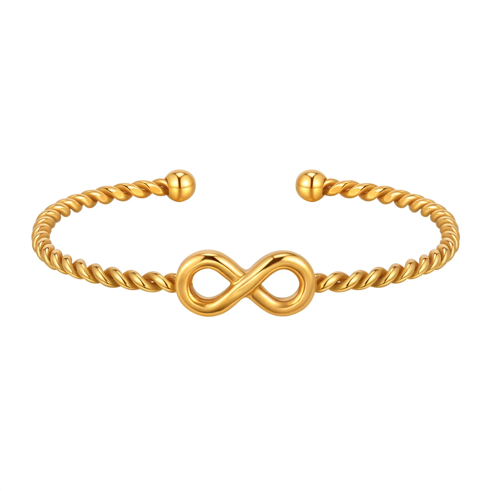New Fashion Simple Twist Bangle Gold Plated Stainless Steel Women Charm Adjustable Knot Cuff Bangles
