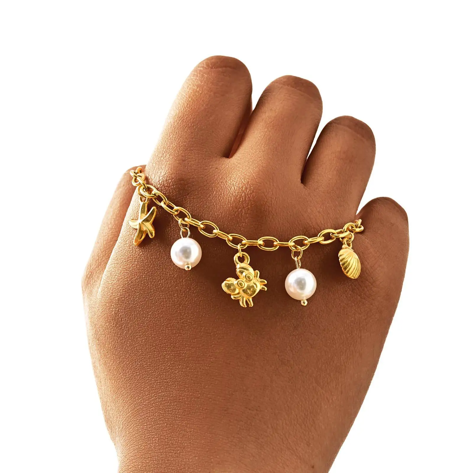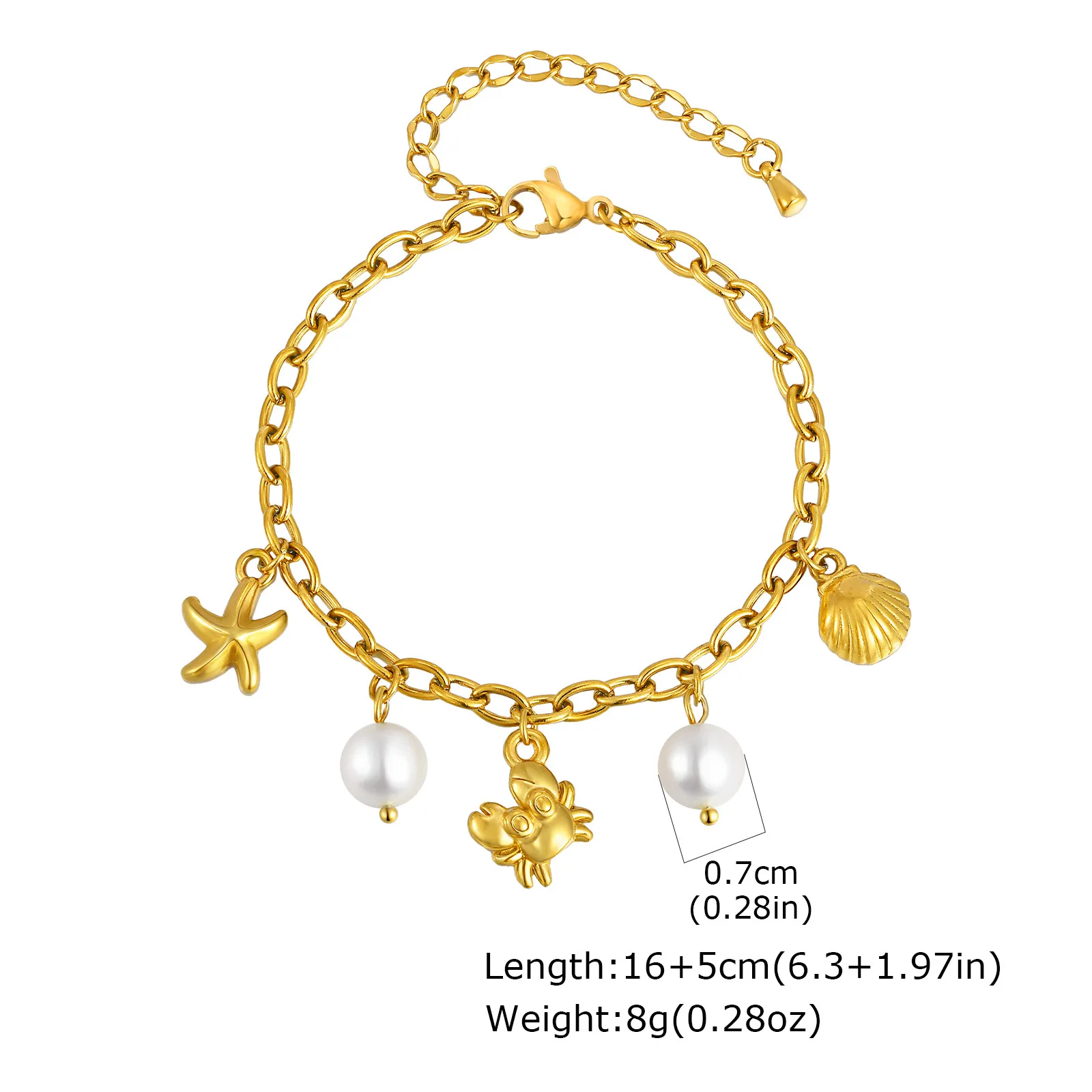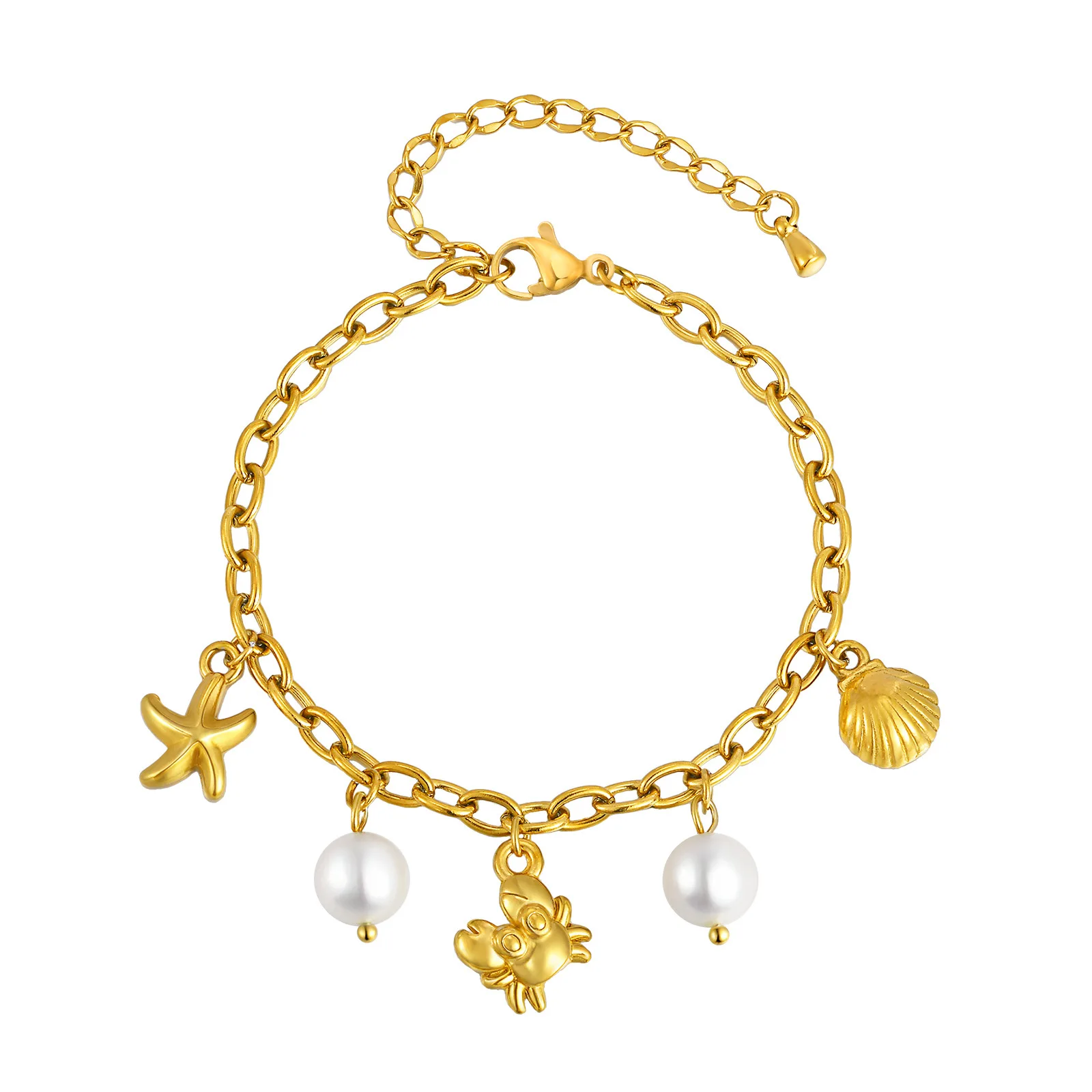 Fashion Jewelry Summer Ocean Series Charms Bracelets Beach Style Conch Starfish Crab Pearl Pendant Bracelet