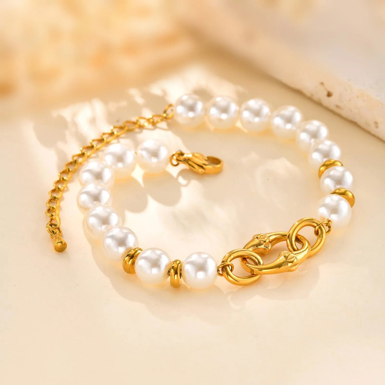 Personalized Stainless Steel 18k Gold Plated Beaded Bracelet Vintage Charm Imitation Pearl Bracelet for Girl