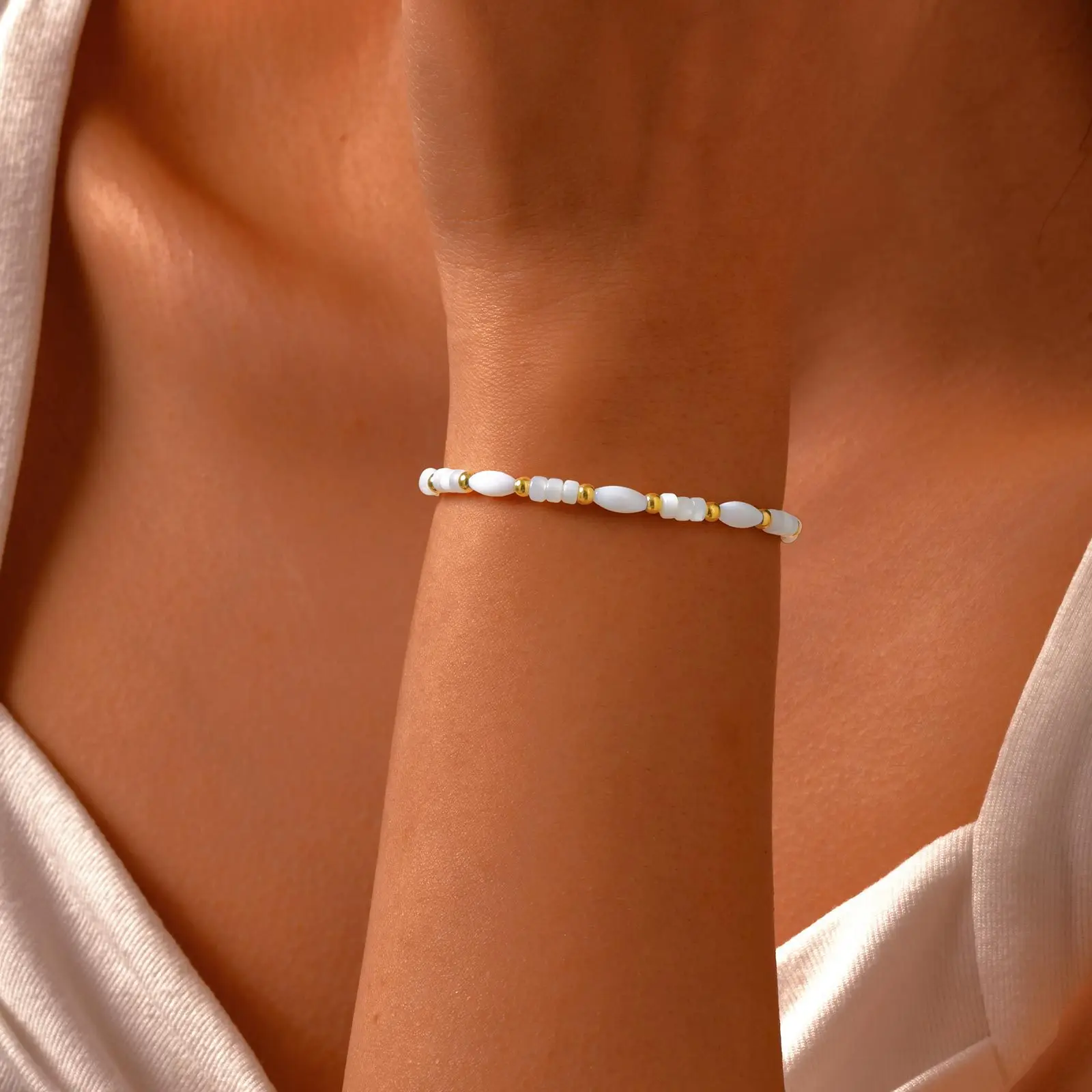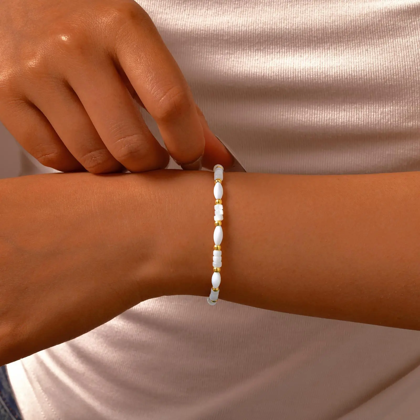 Fashion Jewelry 18k Gold Plated Stainless Steel Women Beads Bracelets White Shell Beaded Bracelet
