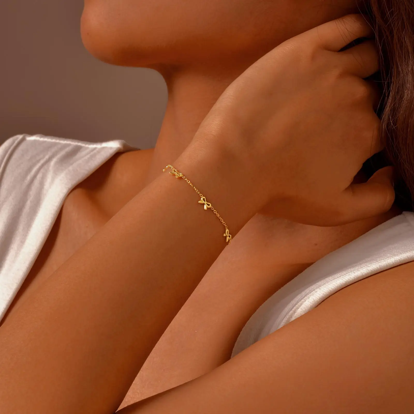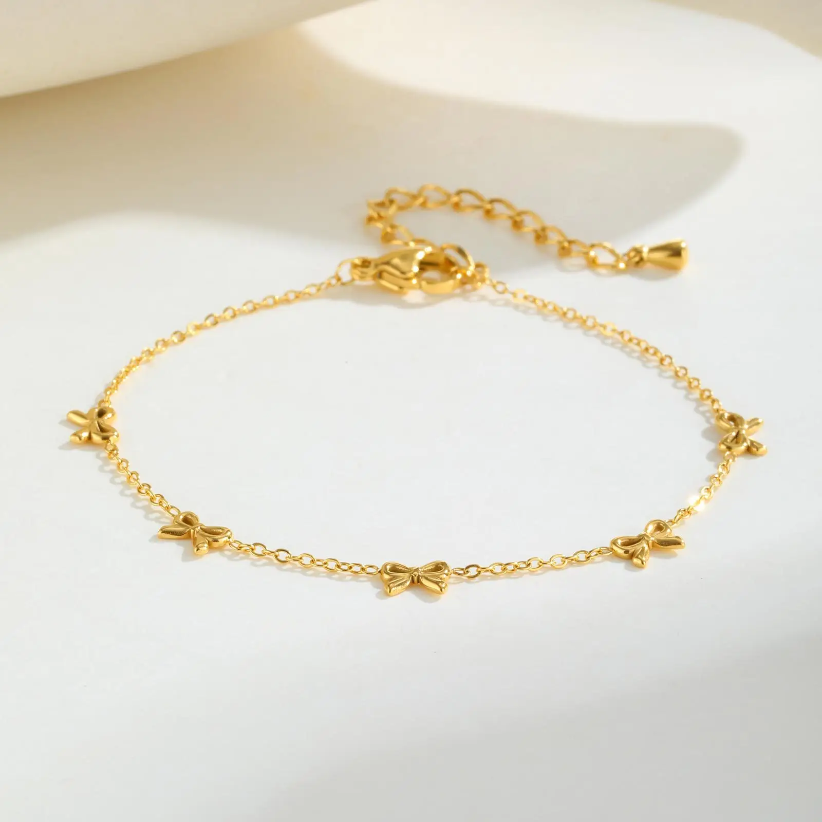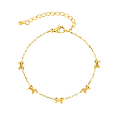 Trendy Minimalist Design Bowknot Charm Bracelets 18k Gold-plated Stainless Steel Chain Bracelet for Women