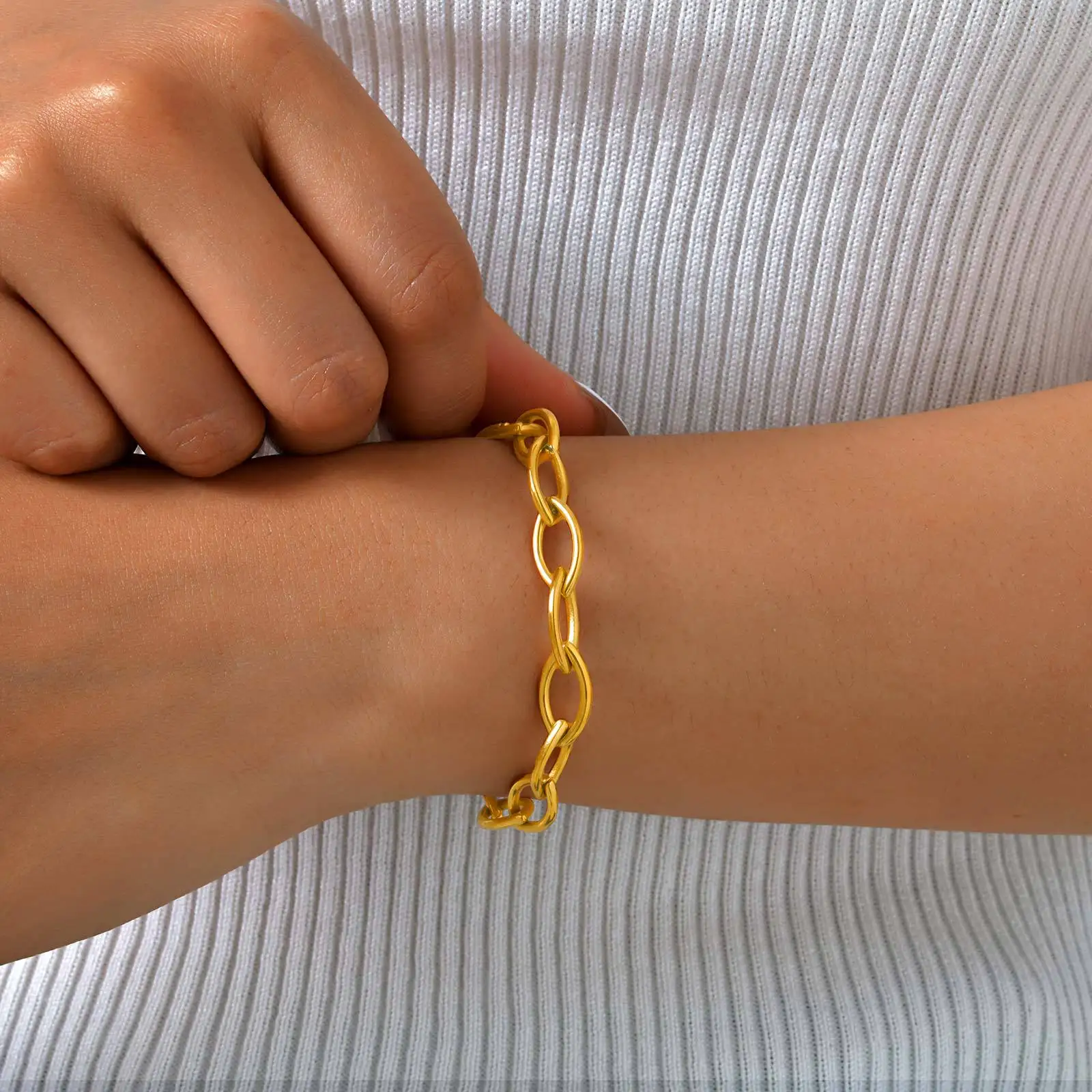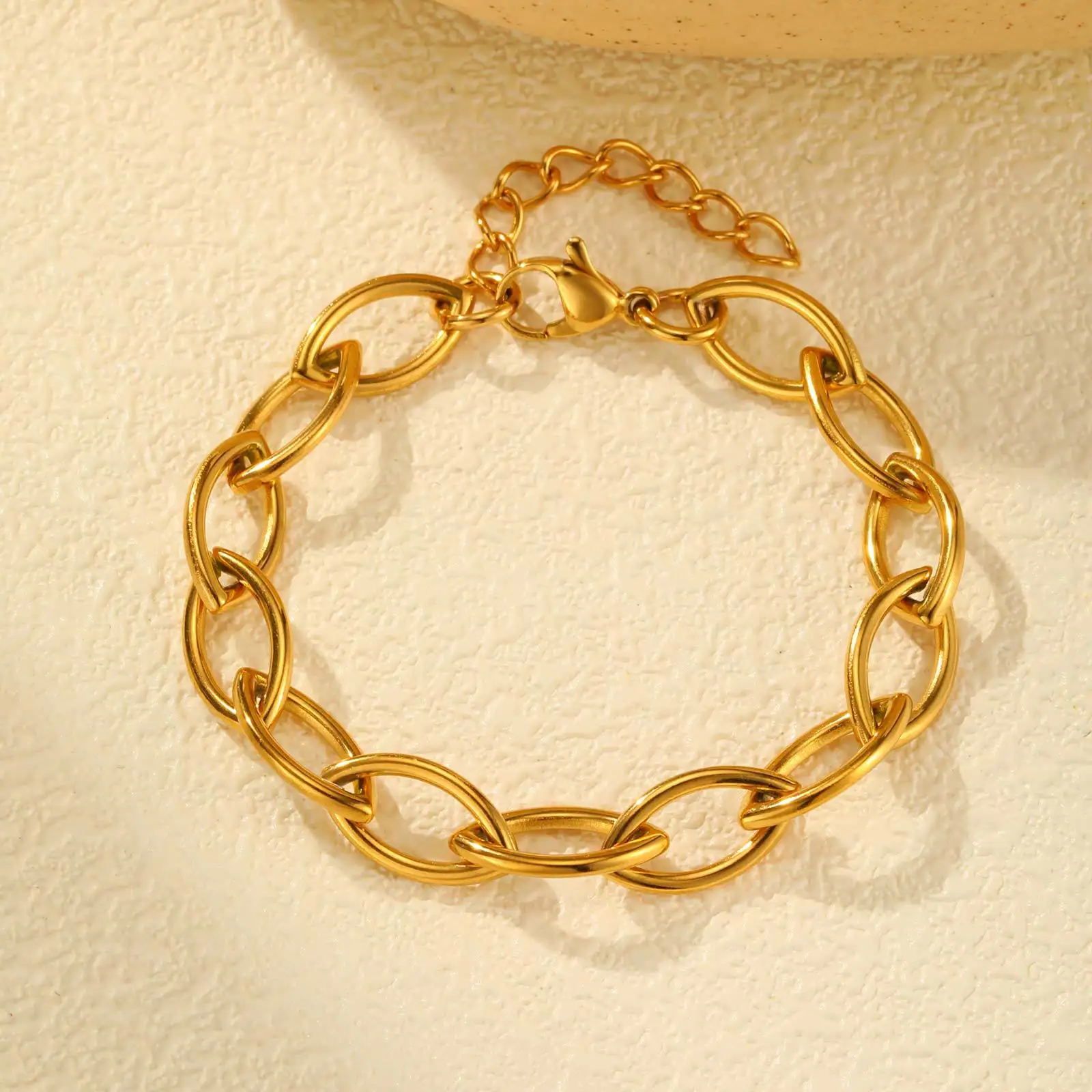 Fashion Simple 18k Gold Plated Link Chain Bracelet Women's Stainless Steel Cuban Chain Bracelets