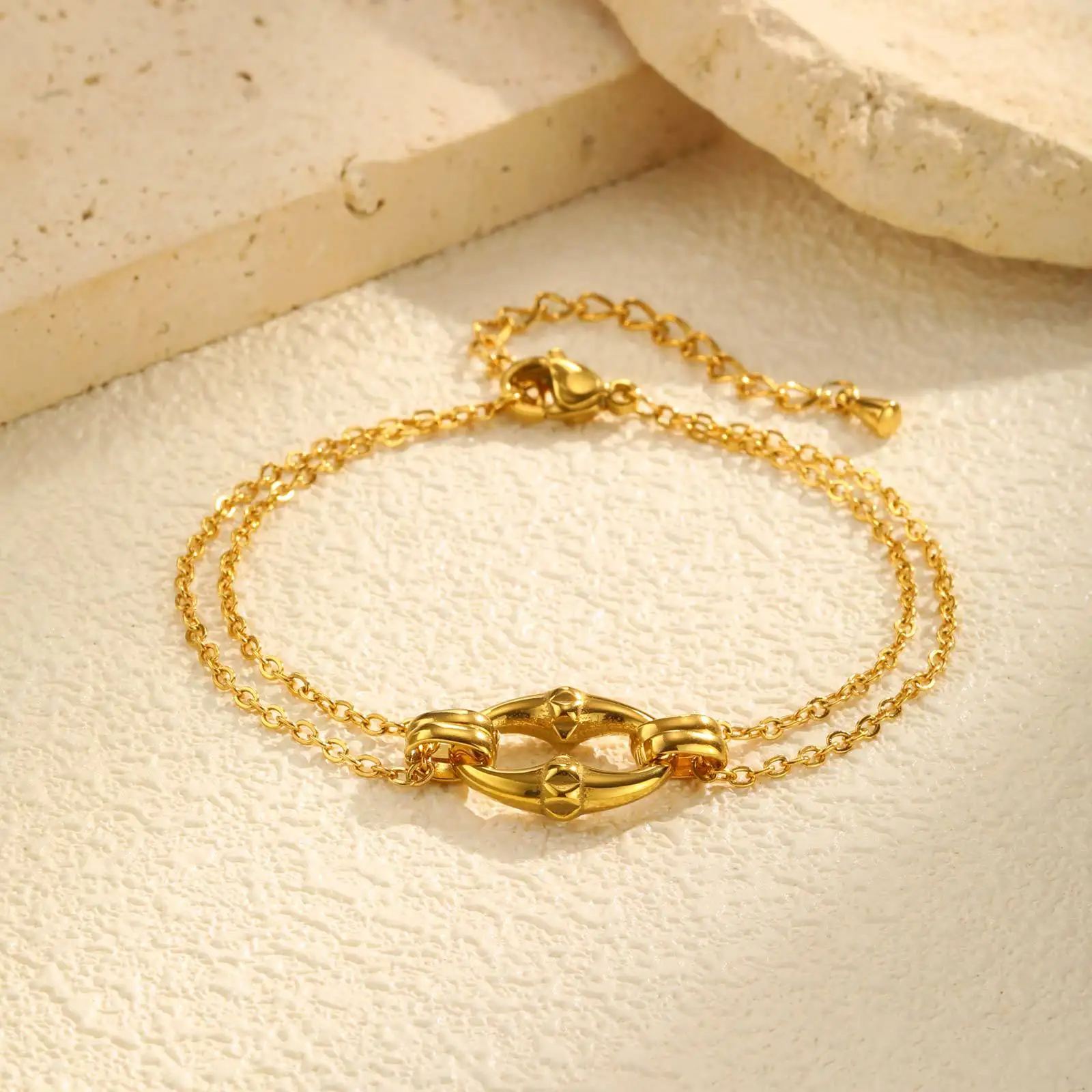 New Minimalist Stainless Steel Chain Hollow Bracelet Pig Snout Double Layer Bracelet for Women