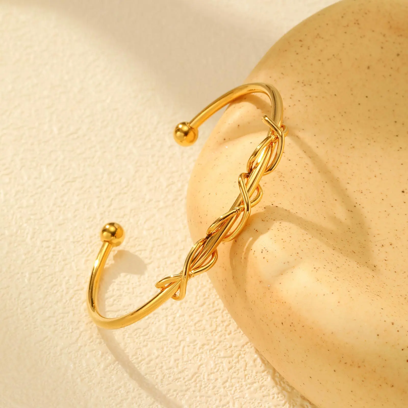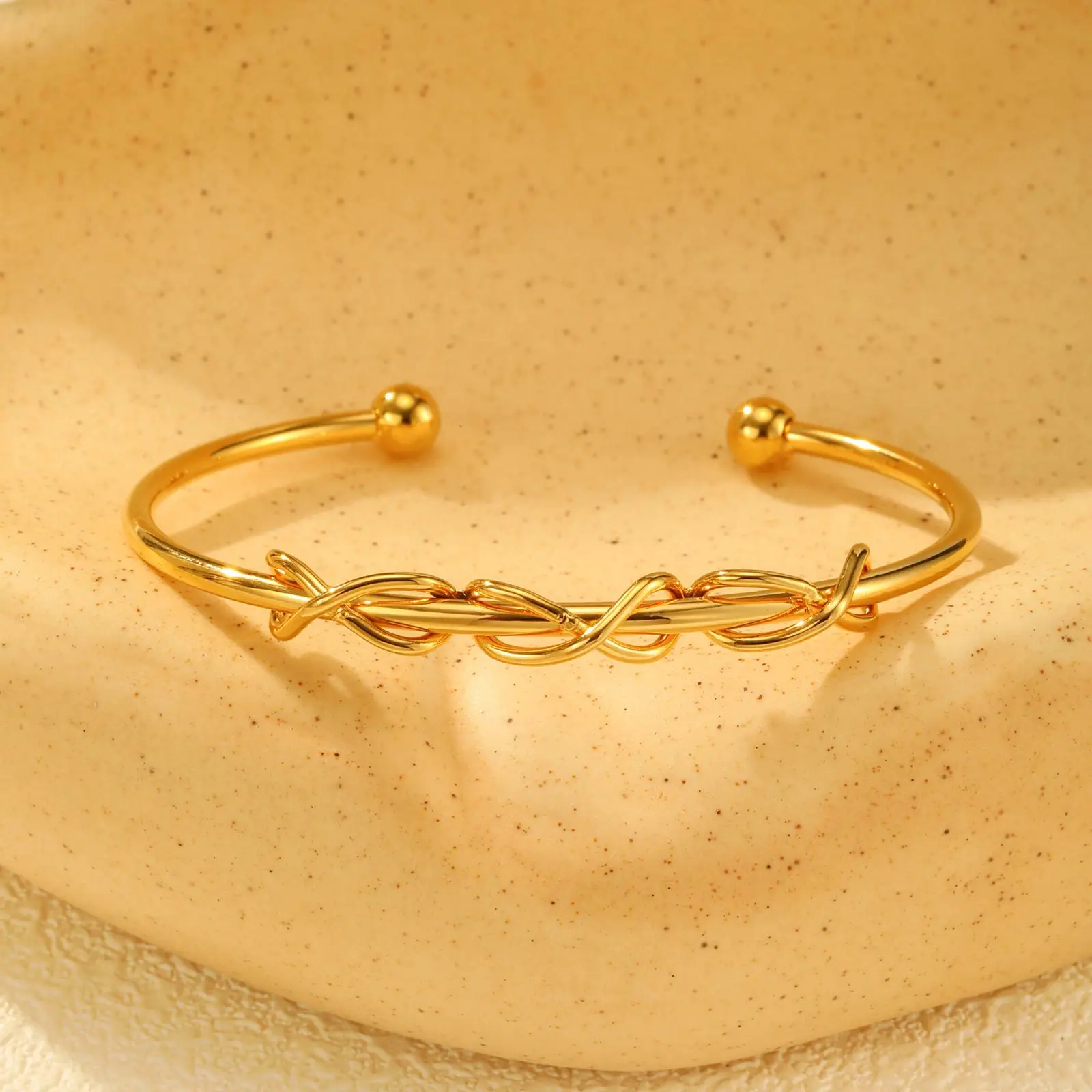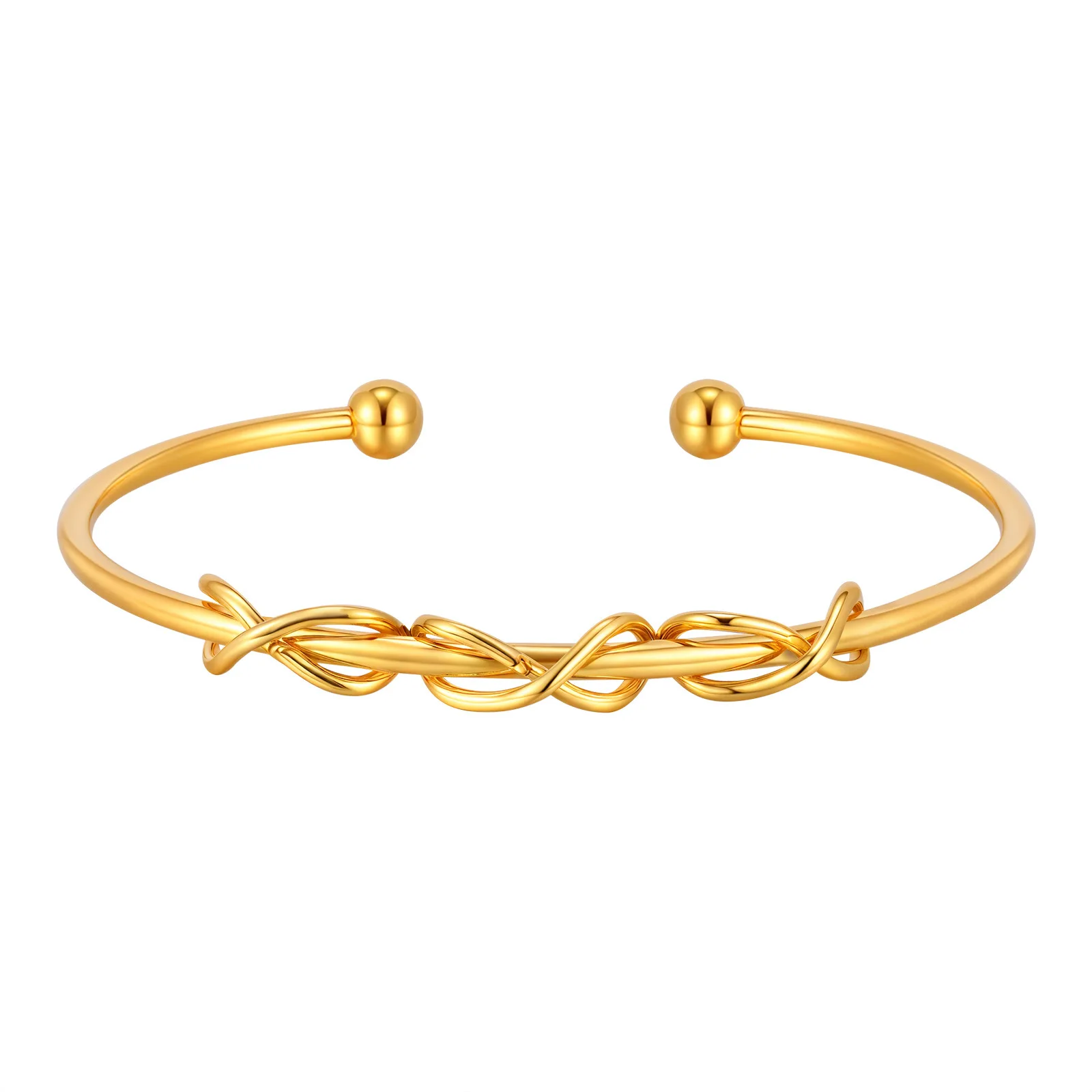 Minimalist Jewelry Open Cuff Bangle 18k Gold Plated Women's Adjustable Concentric Knot Bracelet Bangle