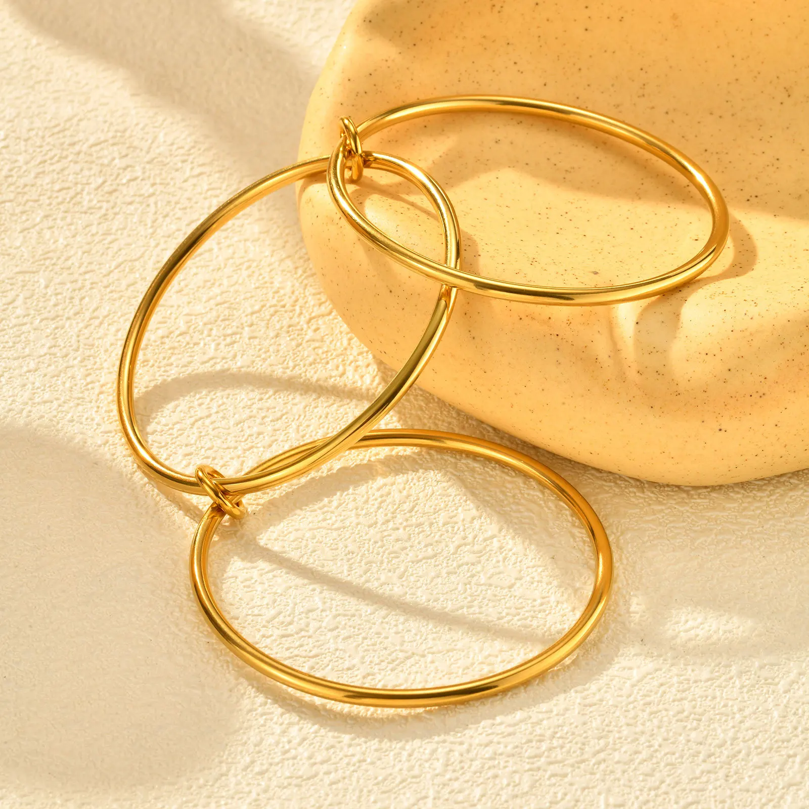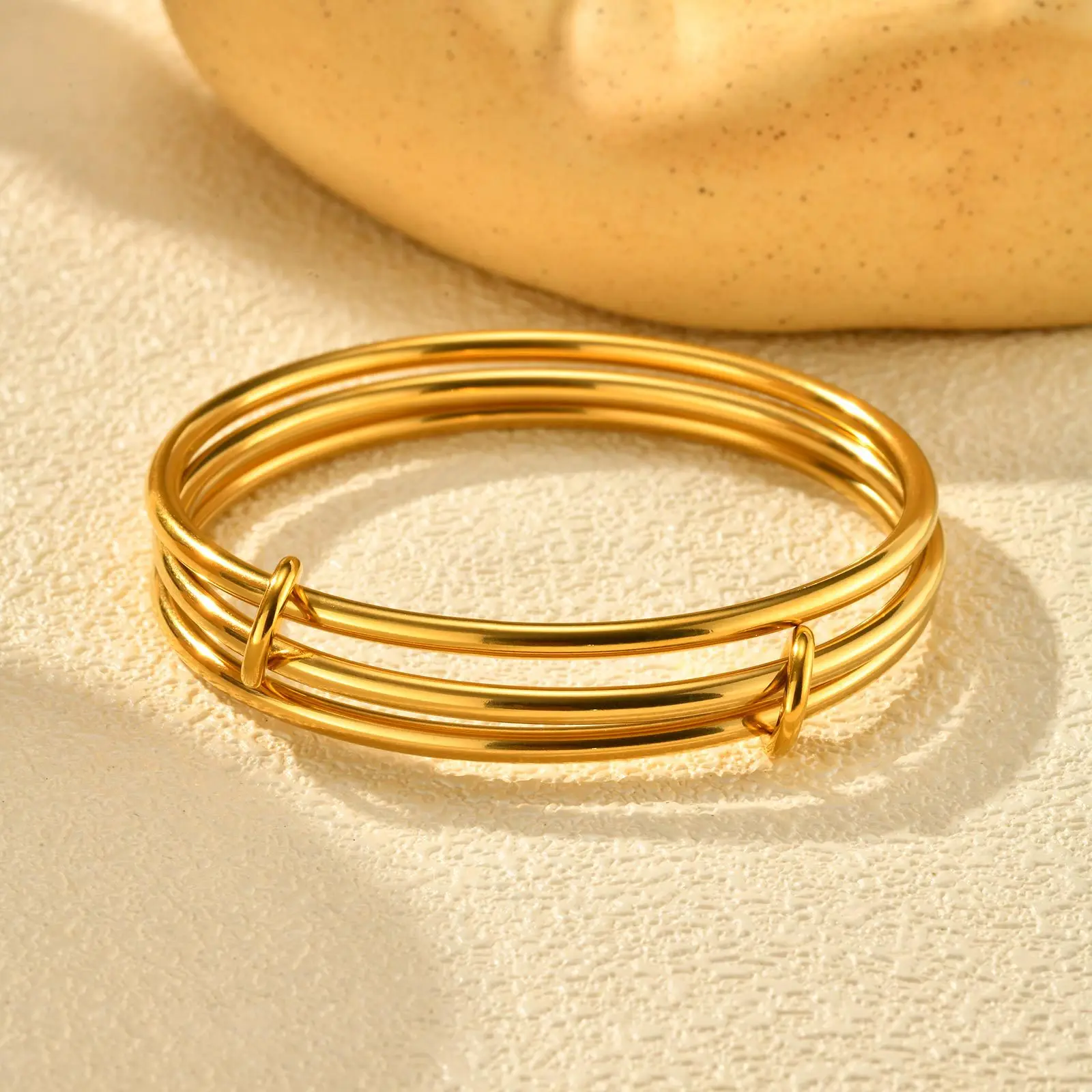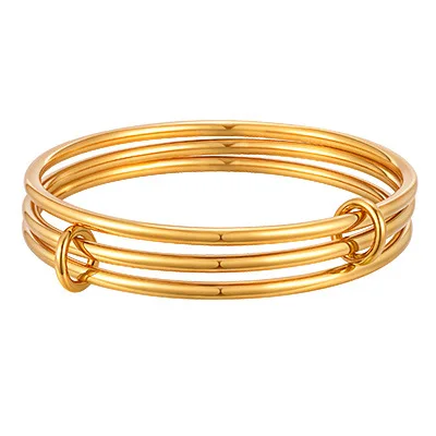 Simple Classic Style Full-light Three-layer Ring Buckle Stackable Bracelet Stainless Steel Fashion Bangles