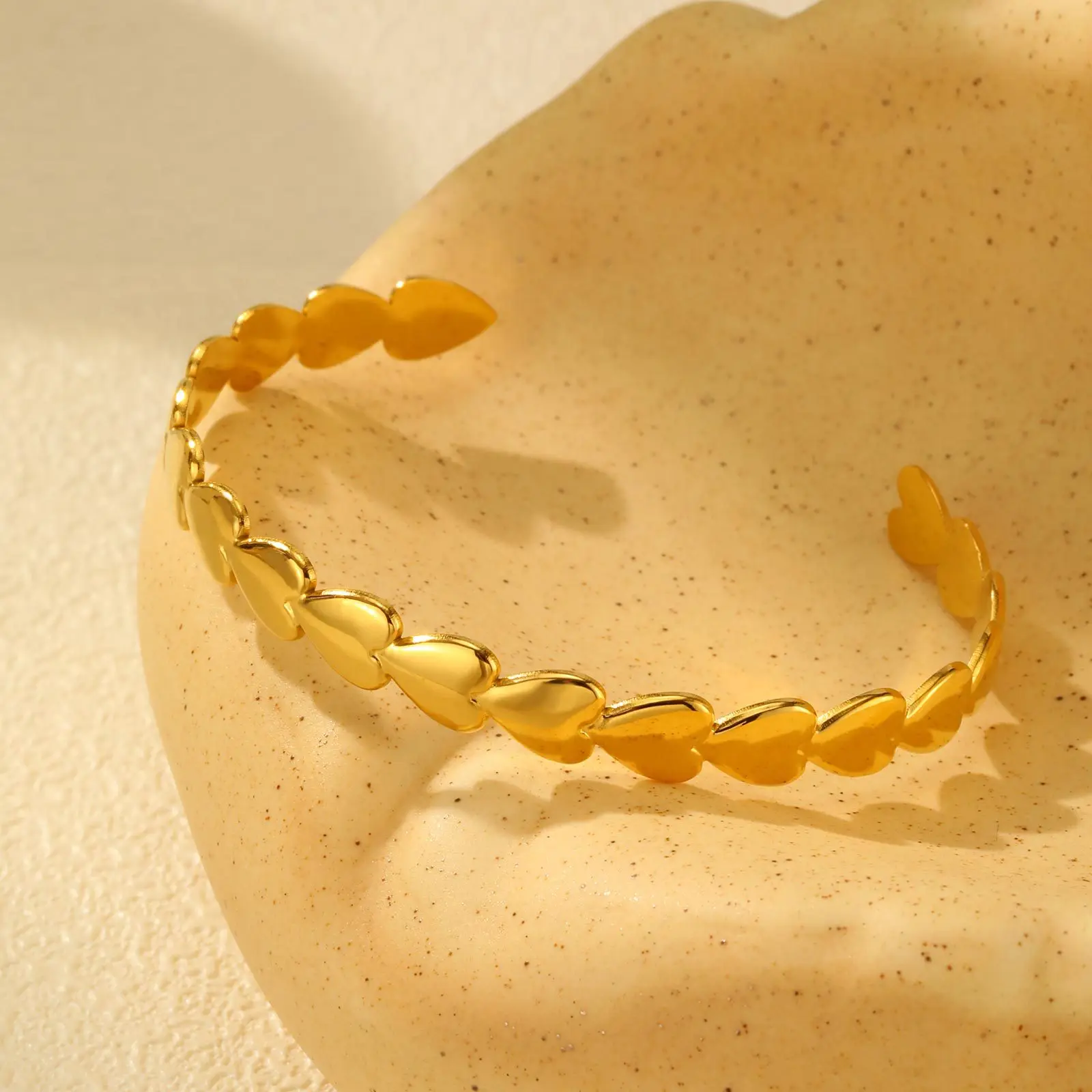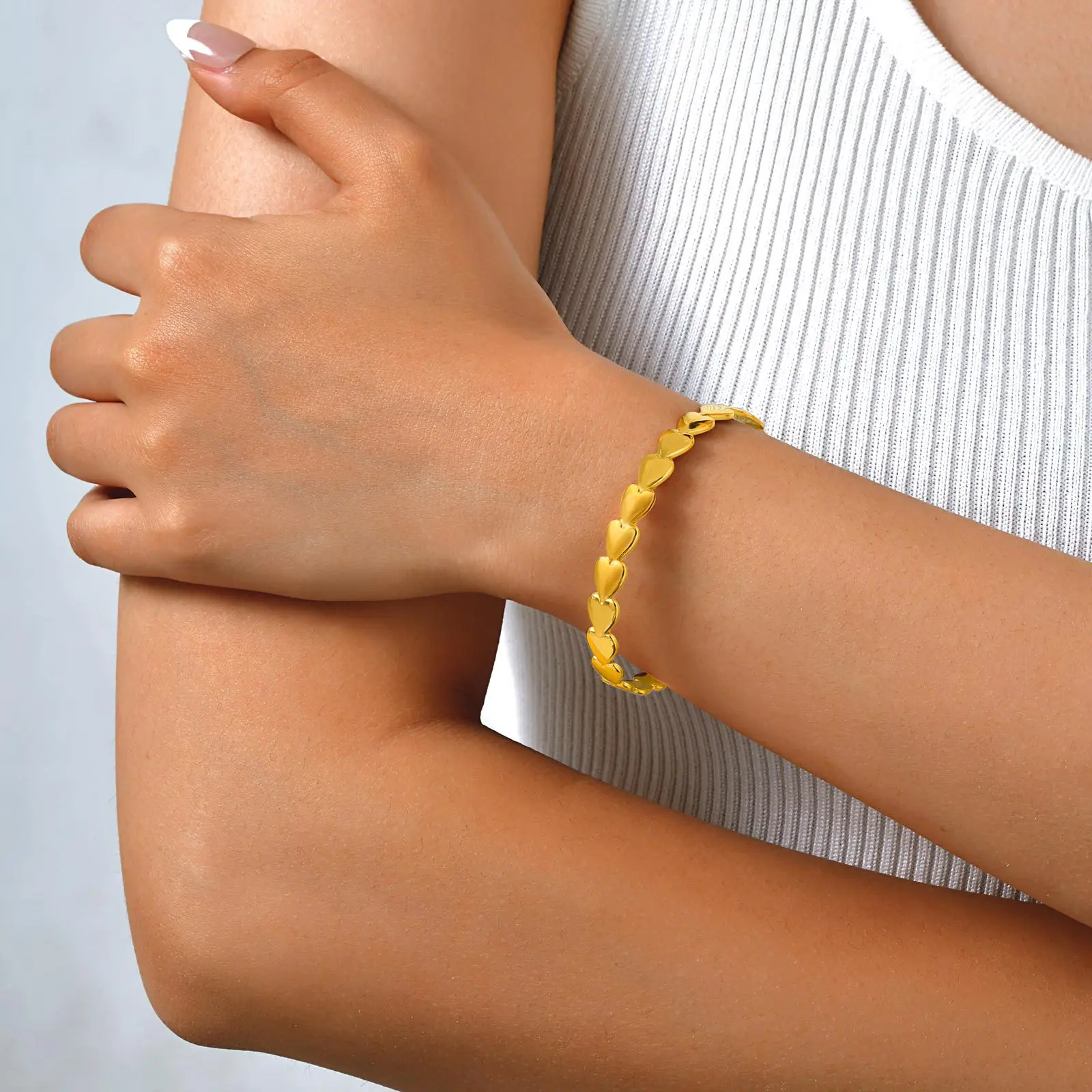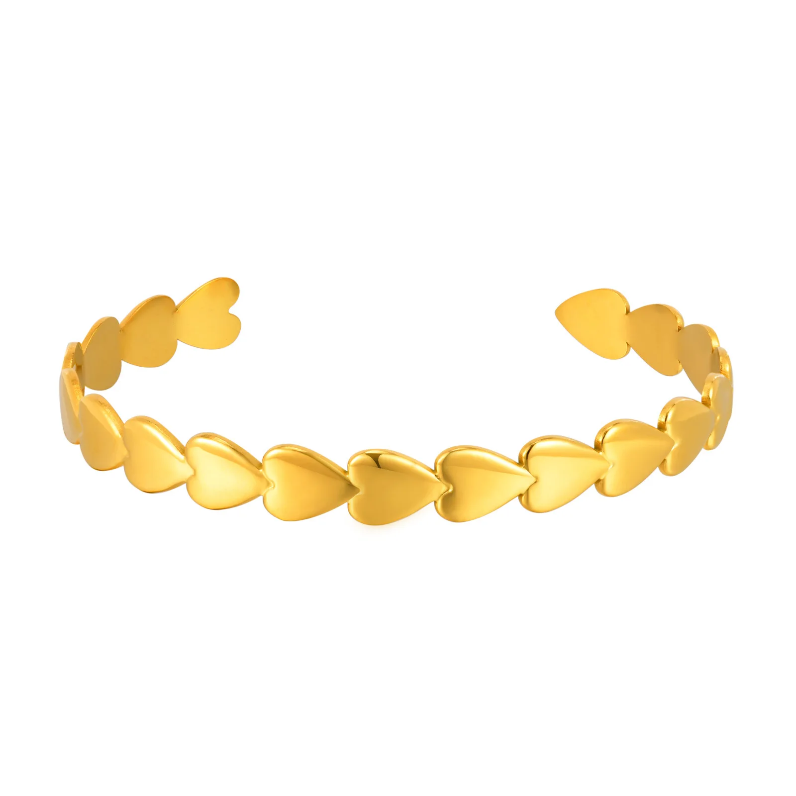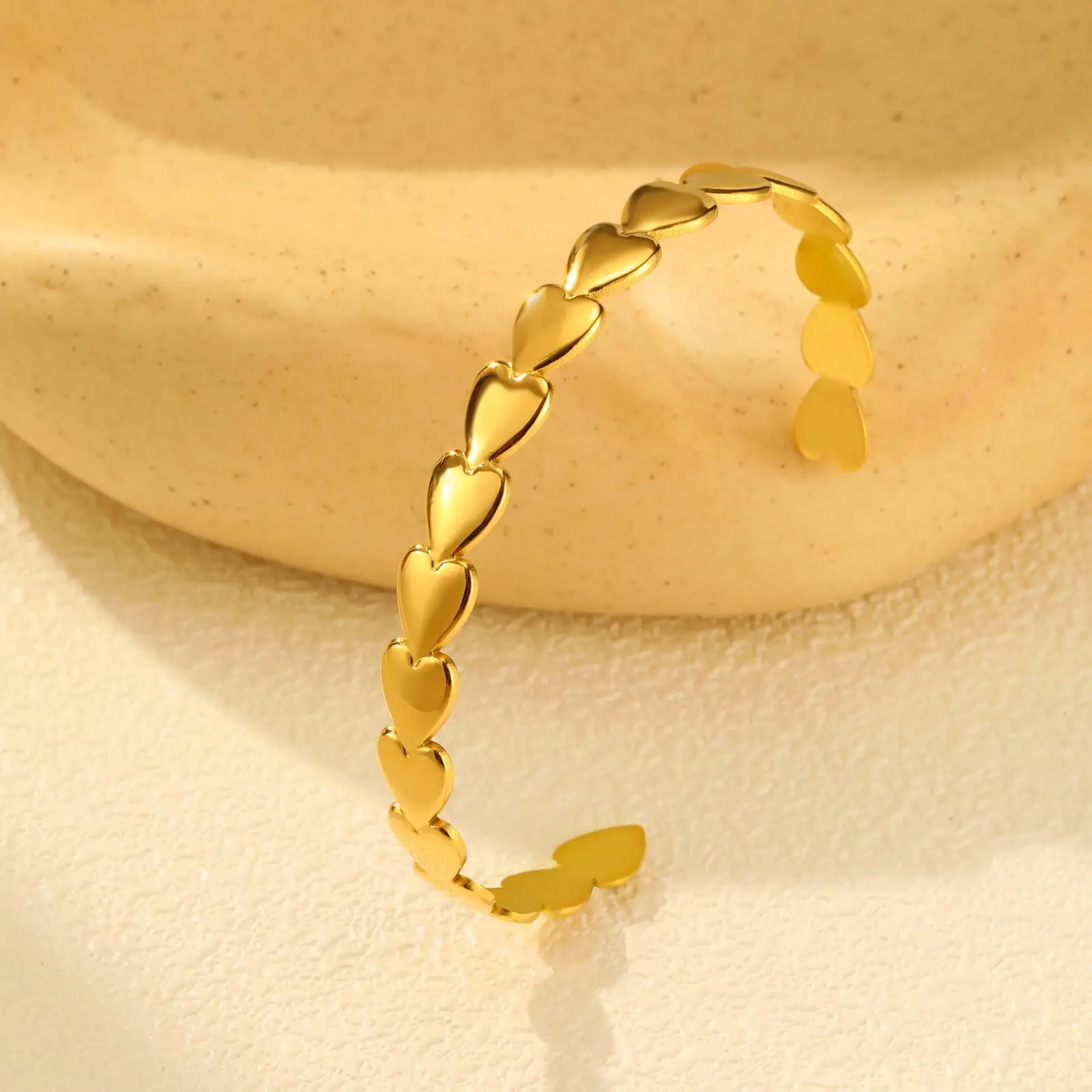 New Trendy Stainless Steel Adjustable Opening Bracelet Women Heart Shape C-shaped Open Cuff Jewelry Bangles