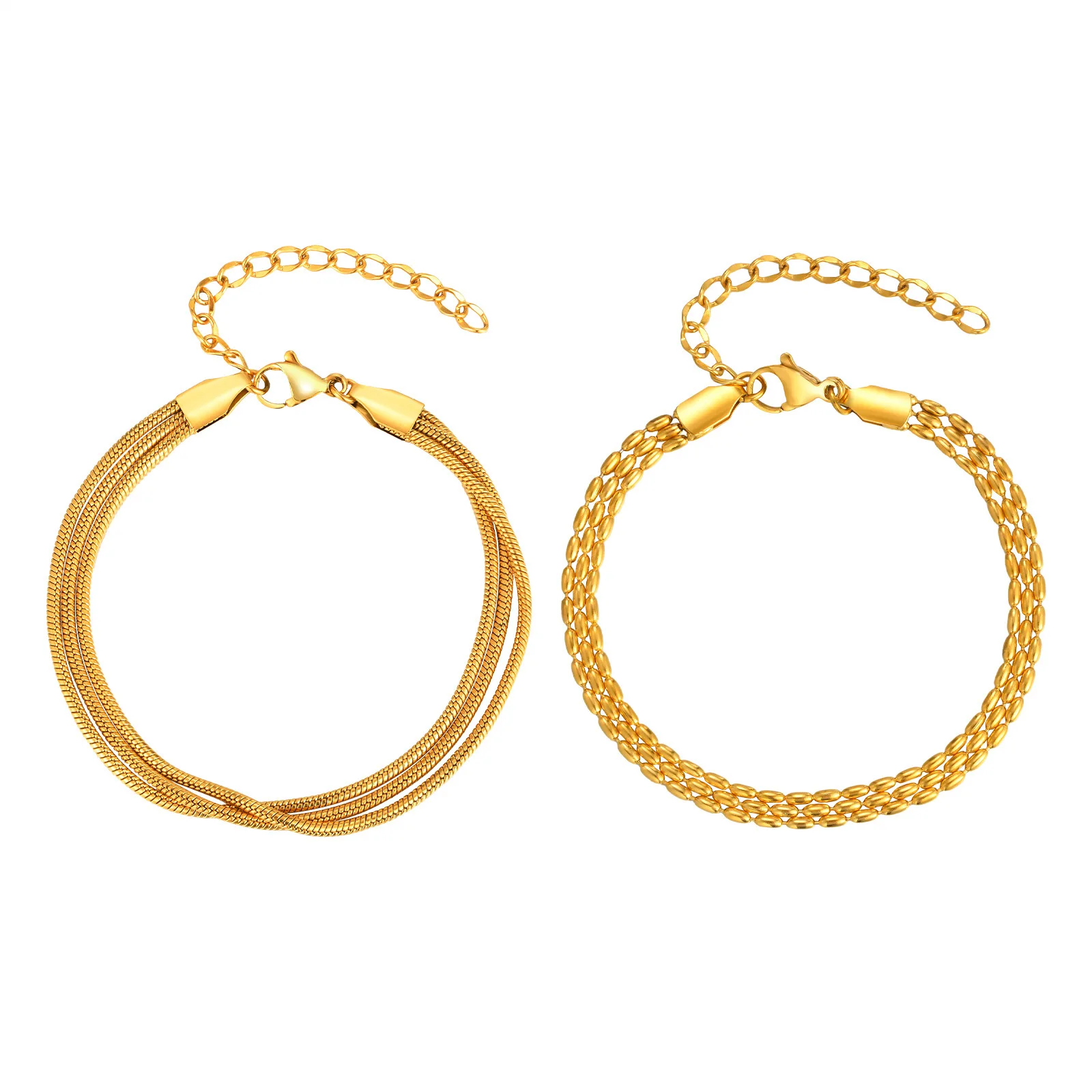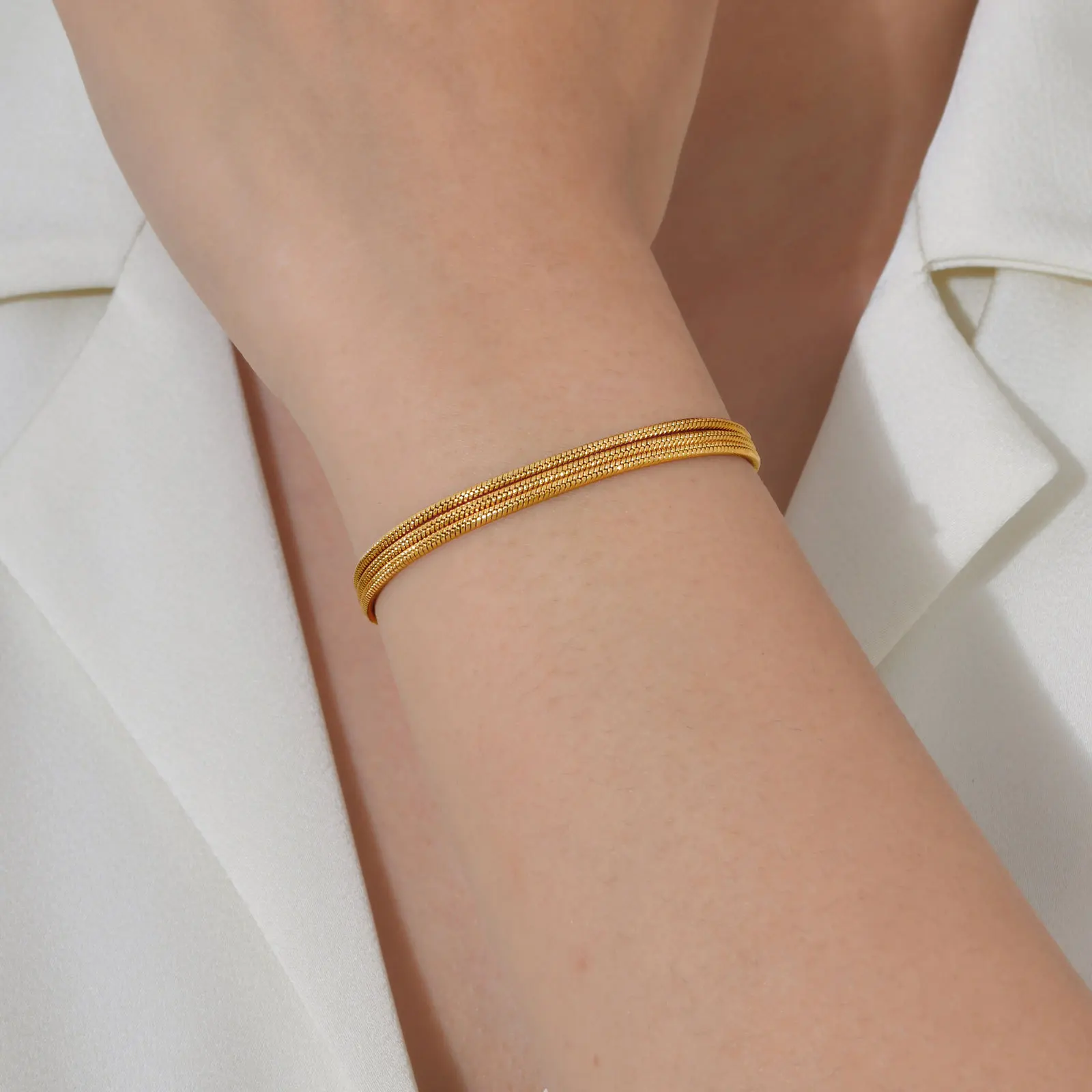 Fashion Simple Textured Braided Design Layered Snake Chain Link Bracelets Stainless Steel Women Hand Chain Bracelet