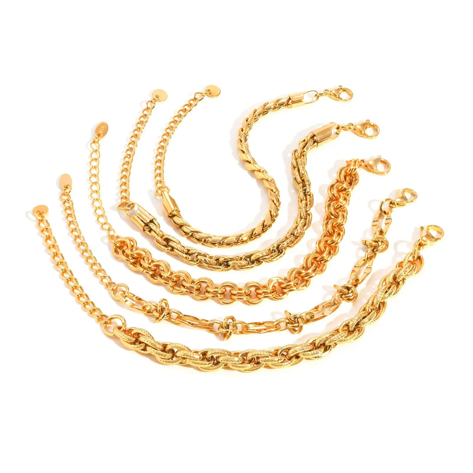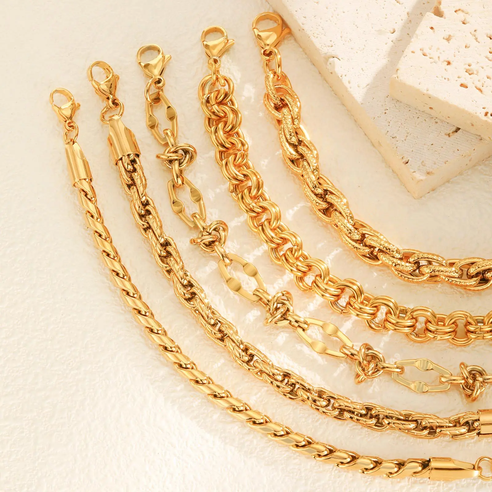 Fashion Waterproof Non Tarnish Jewelry Twist Geometric Bracelets Gold Plated Stainless Steel Link Chain Bracelet