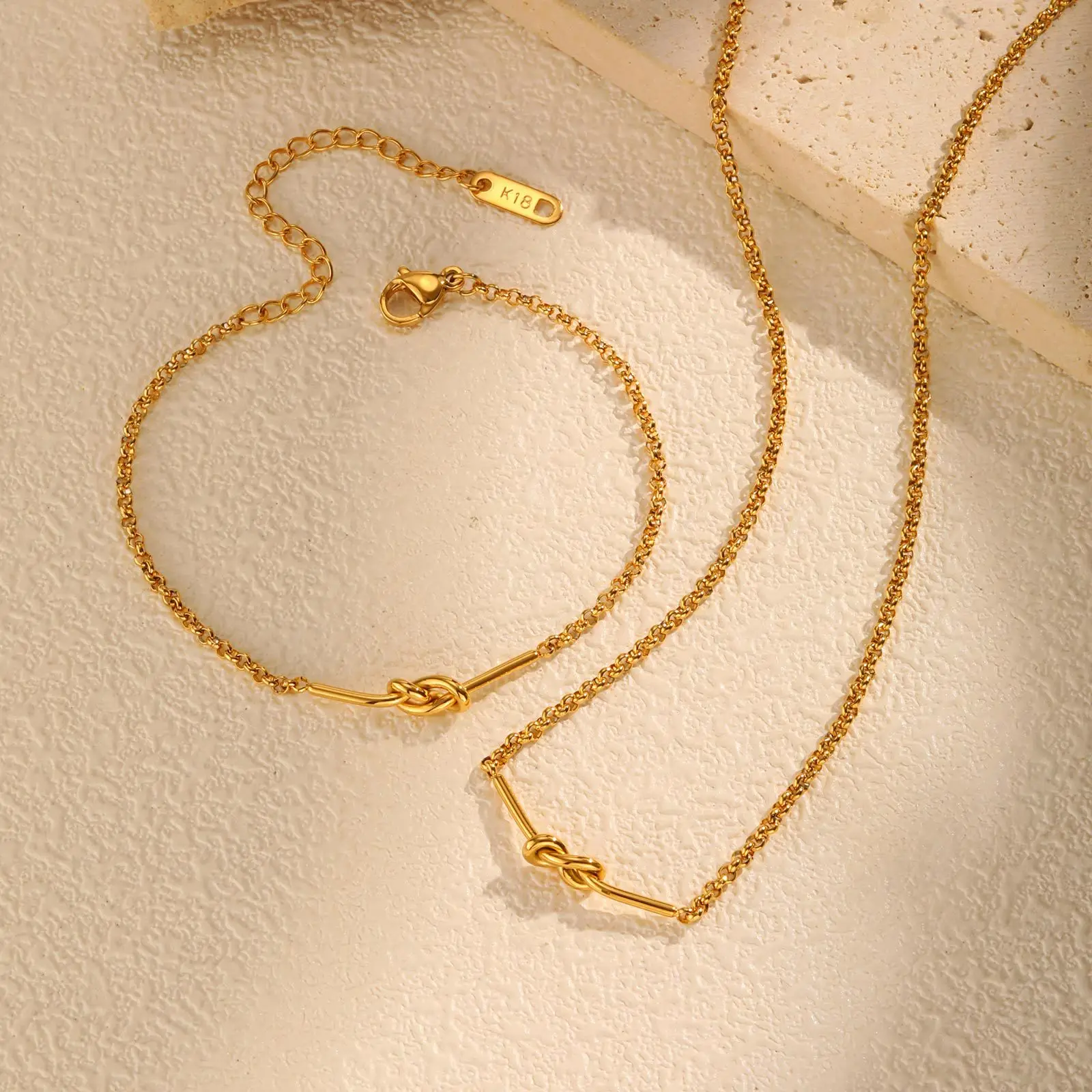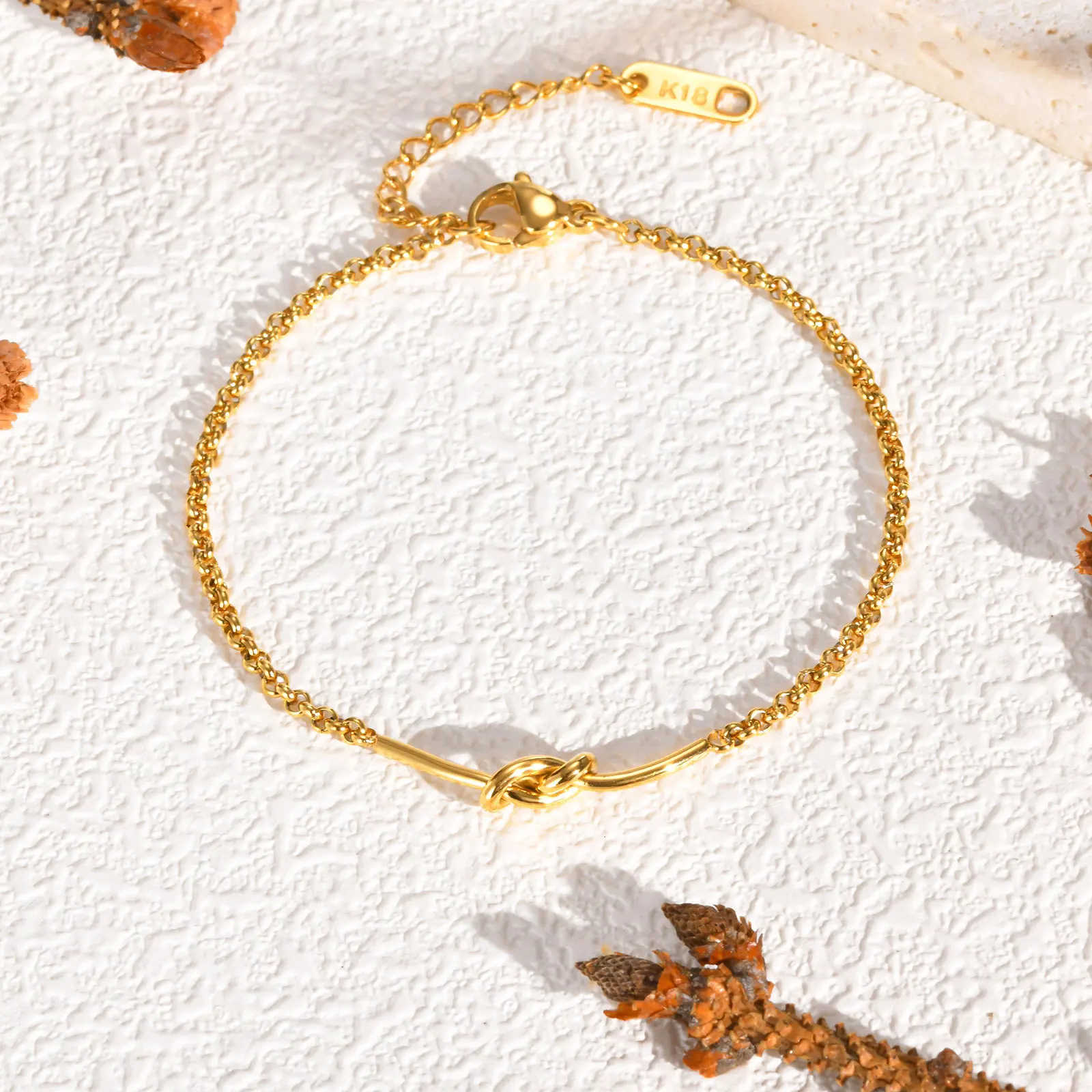 Custom Creative Knot Bar Design Women Bracelets Tarnish Free Vintage 18k Gold Plated Stainless Steel Chain Bracelet