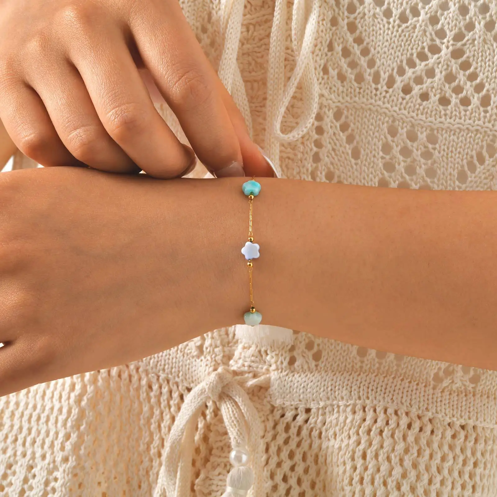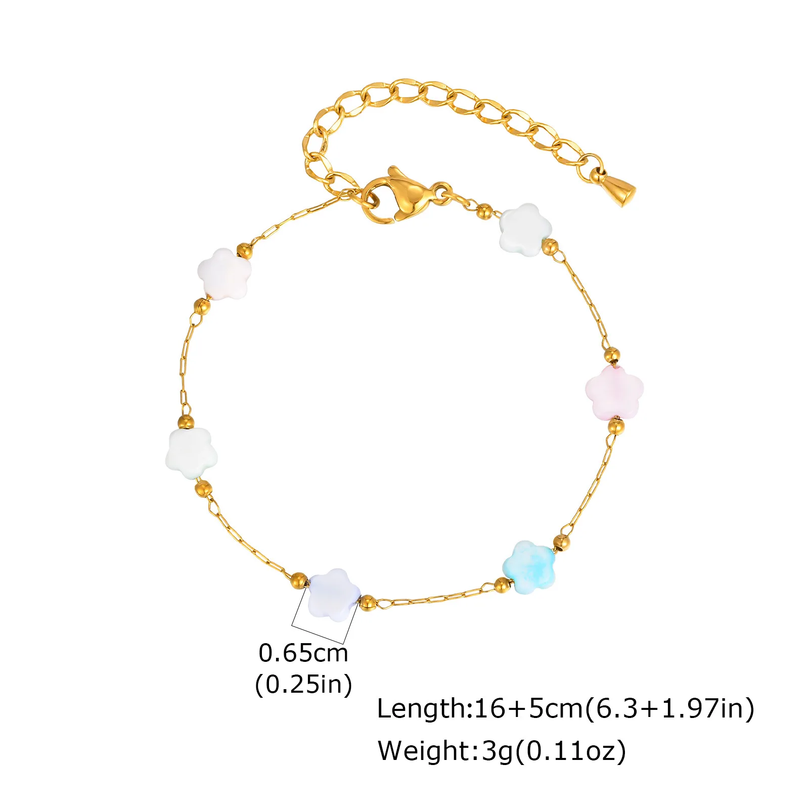 Wholesale Trendy Stainless Steel Bracelets Chain Women Gold Stainless Steel Colorful Flower Beaded Bracelet