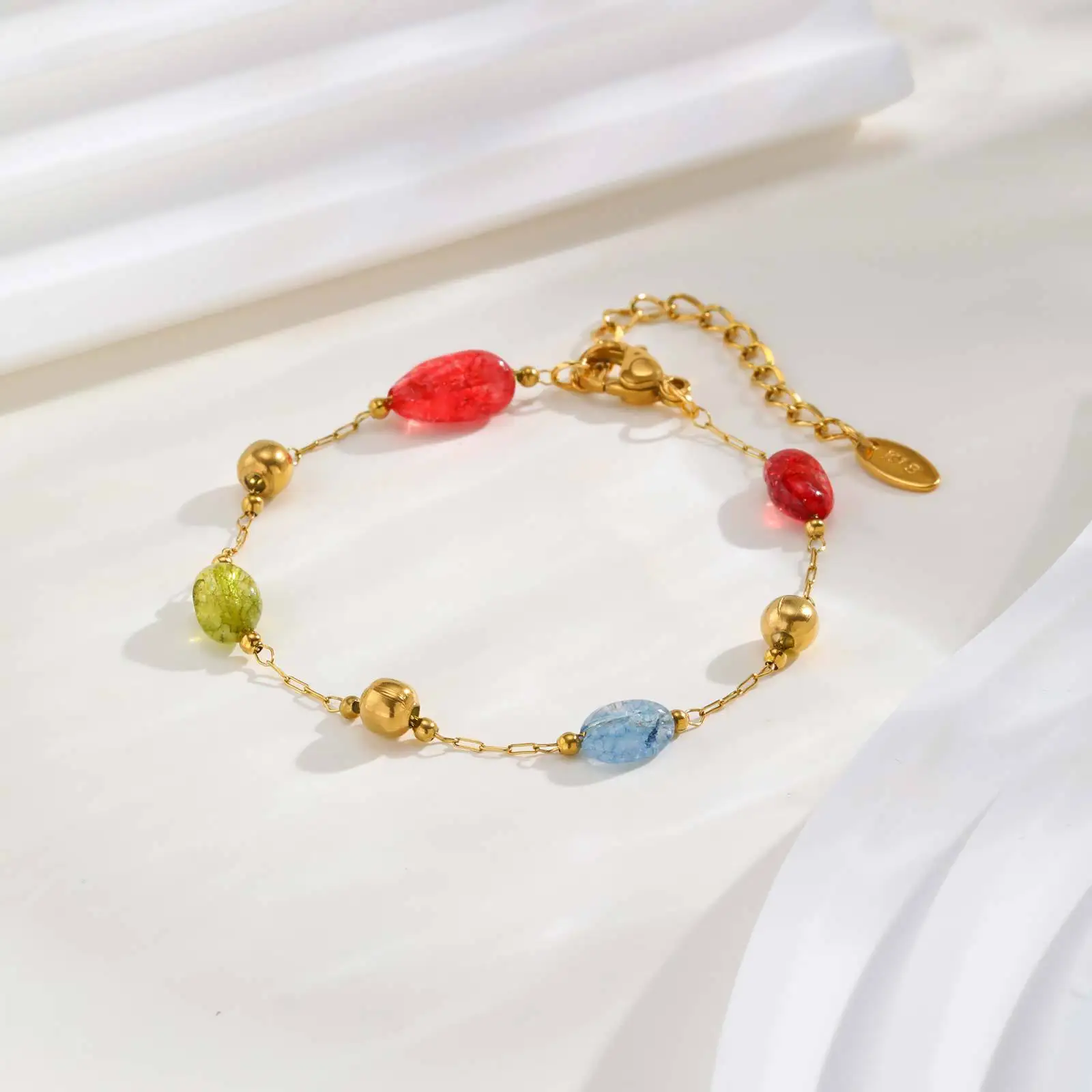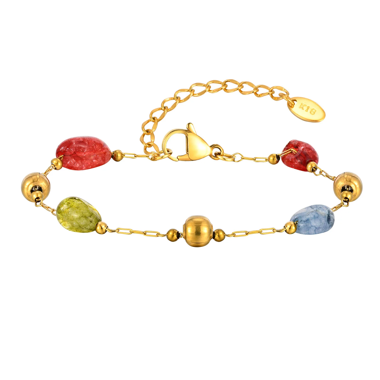 Wholesale Price Fashion Women Stainless Steel Beads Chain Bracelet 18k Gold-plated Natural Stone Bracelets