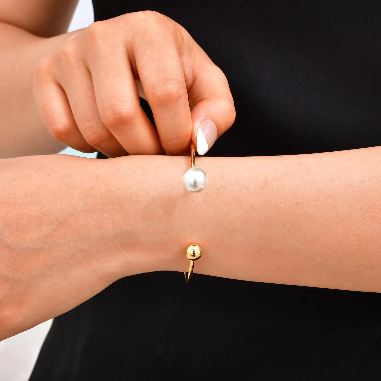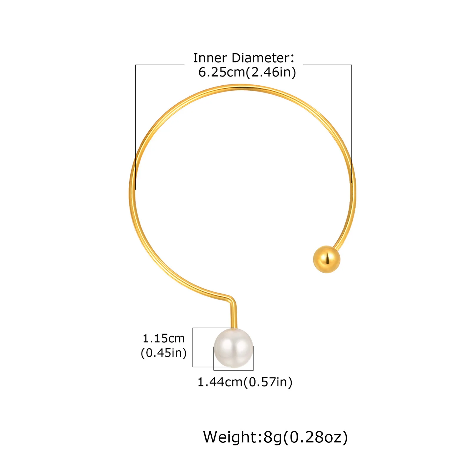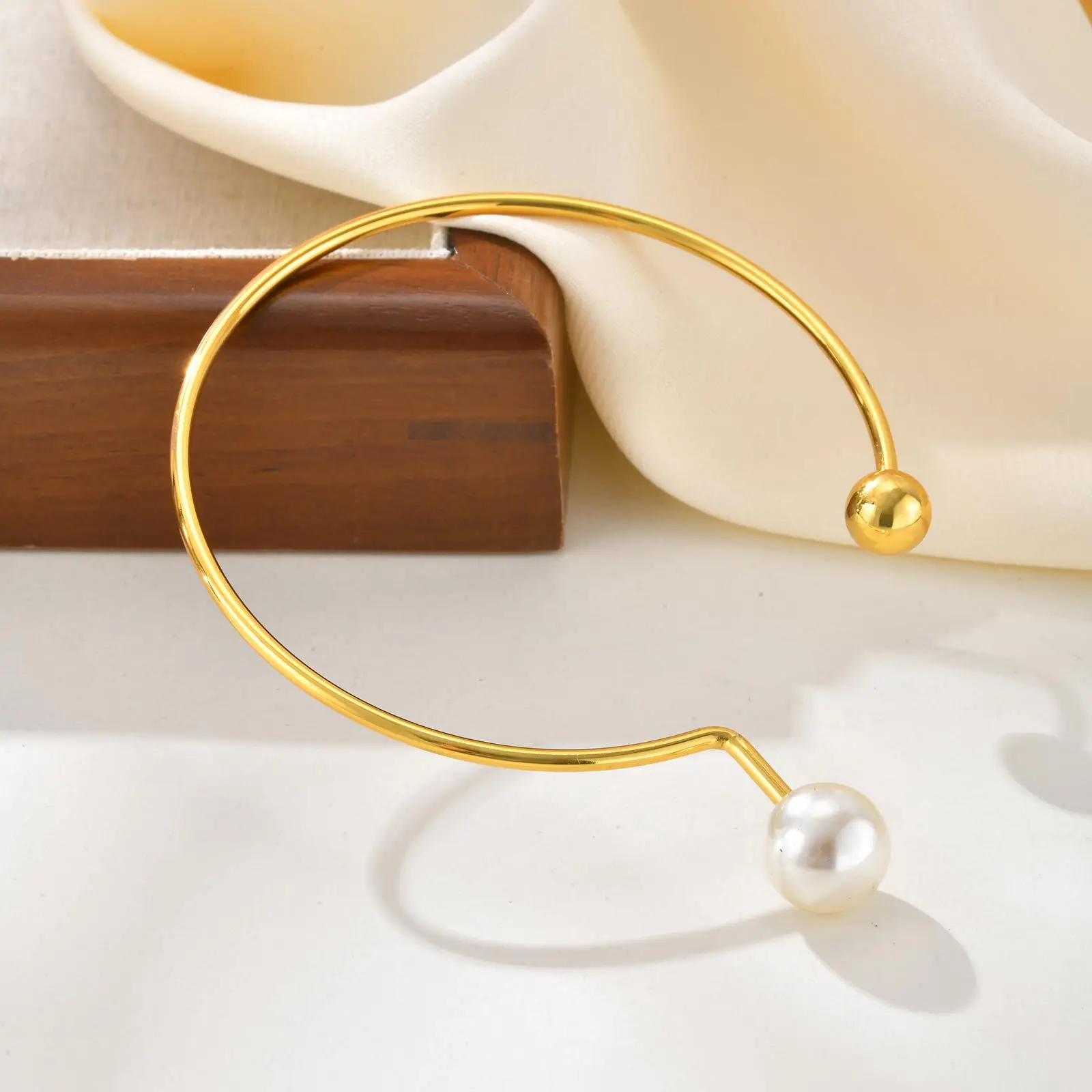 Luxury Charm Jewelry Adjustable Open Bracelet Bangle Stainless Steel Waterproof Double Ball Pearl Cuff Bangle