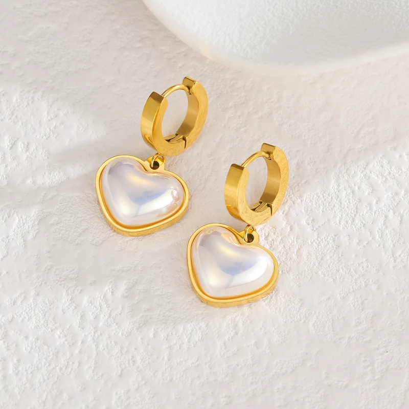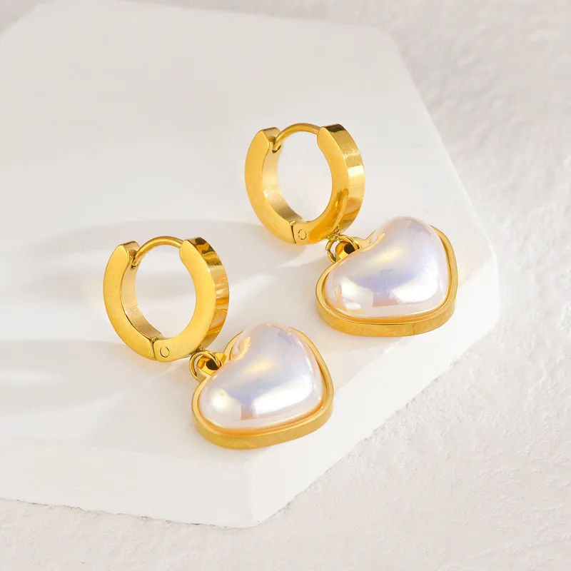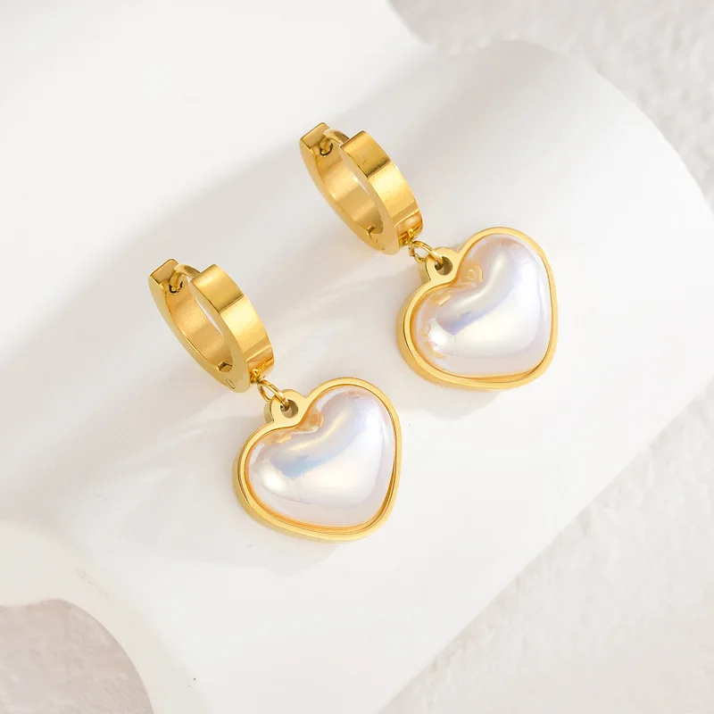 Fashion High-end Pearl Heart Stainless Steel Earrings Fine Lightweight Anti-corrosion Pearl Drop Earrings Ear Accessories