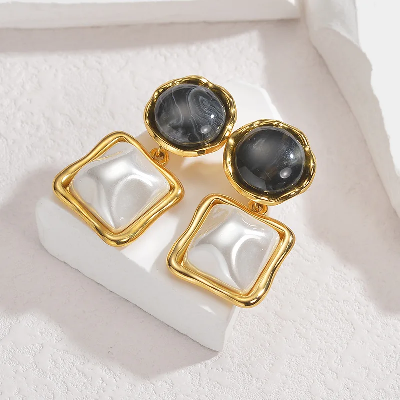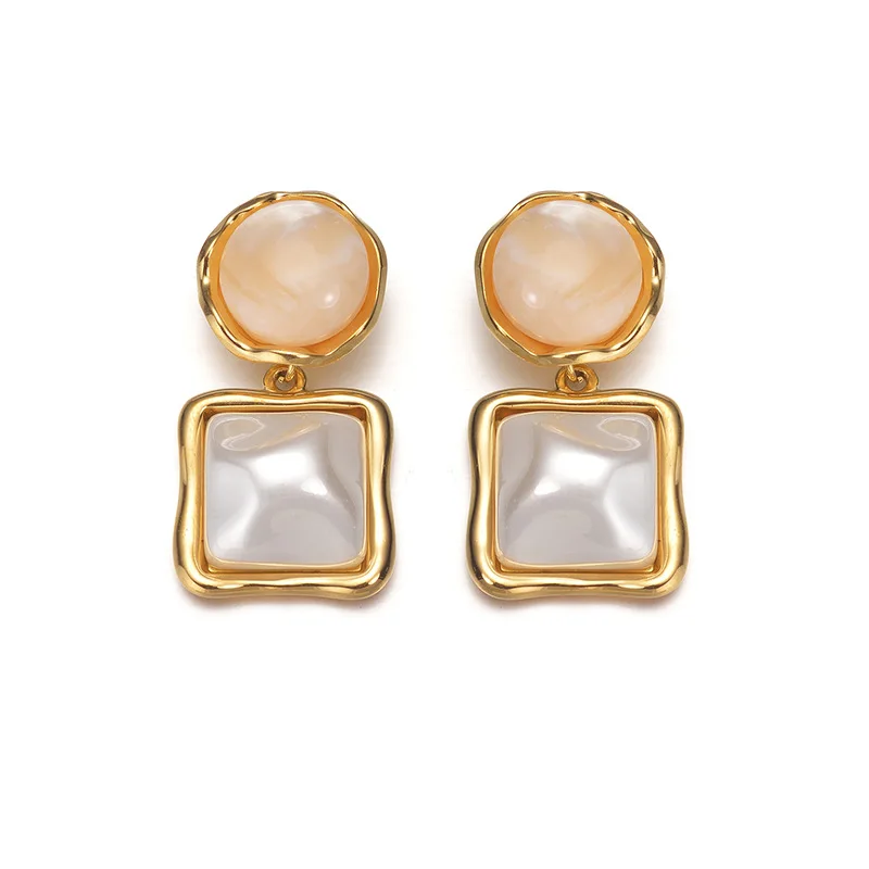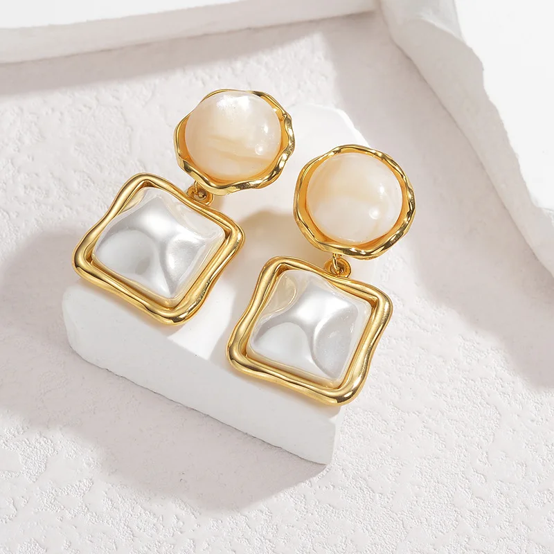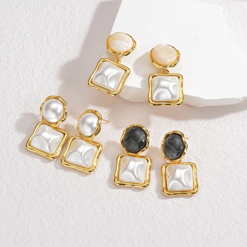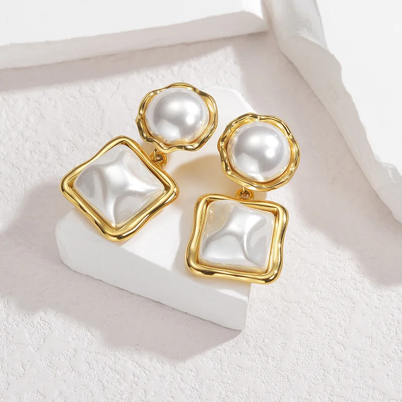 Fashion Minimalist Women's Jewelry Earrings Anti Allergic Stainless Steel 18k Gold-Plated Geometric Square Pearl Drop Earrings