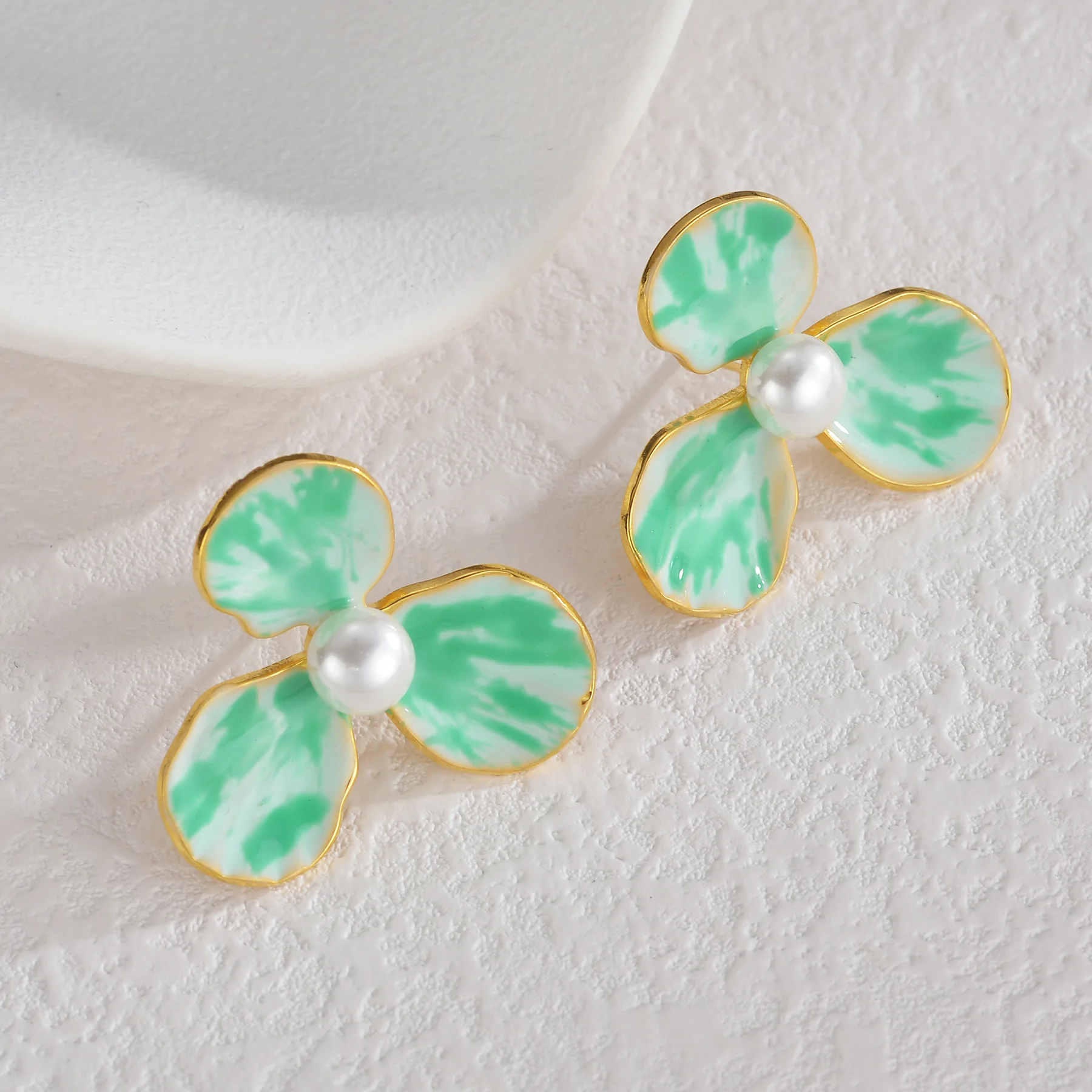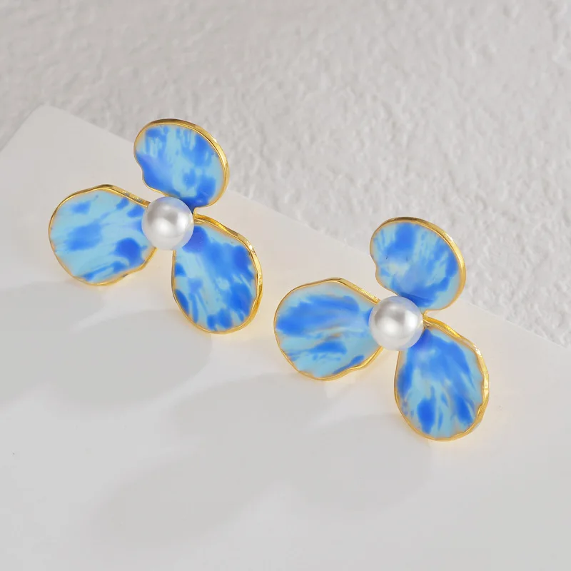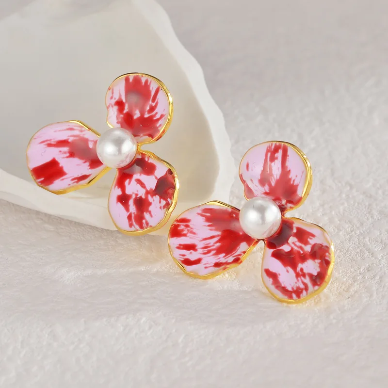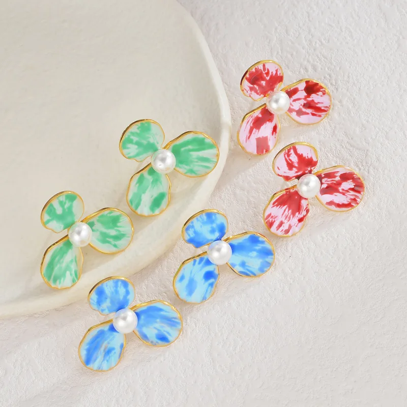 High-end Fine Women's Jewelry Flower Pearl Earrings VIntage 18K Gold Plated Stainless Steel Drop Earrings