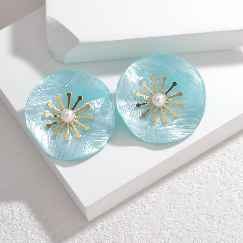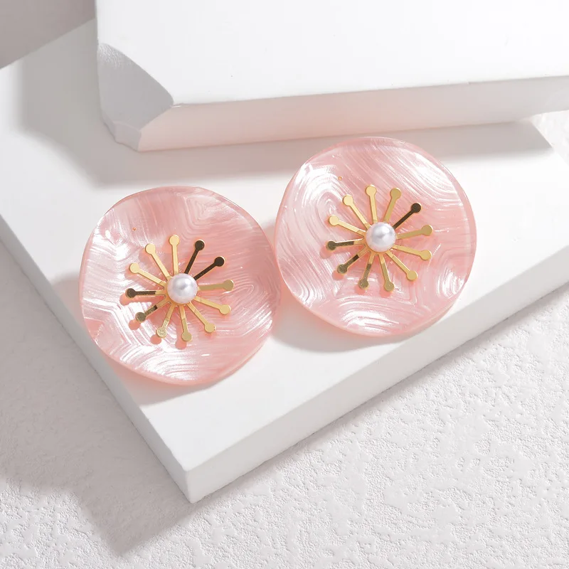 Classic Fashion Jewelry Acrylic Flower 18K Gold Plated Earrings Mini Studs Stainless Steel Small Stud Earrings for Women Girls