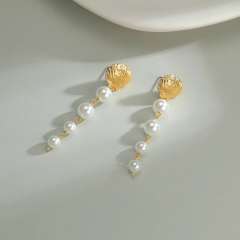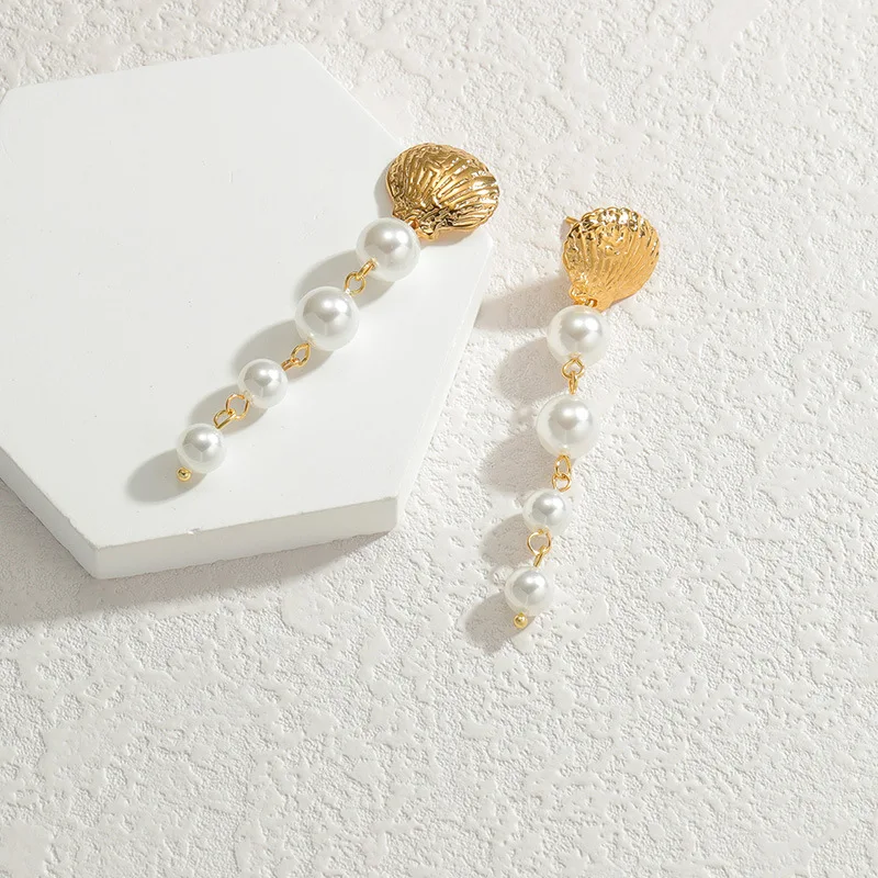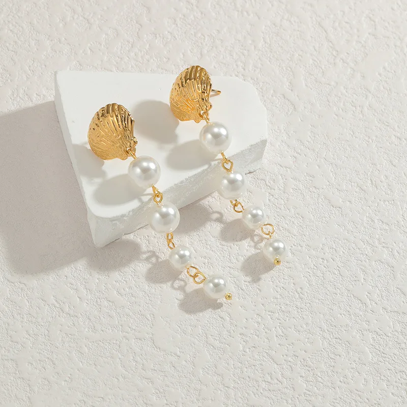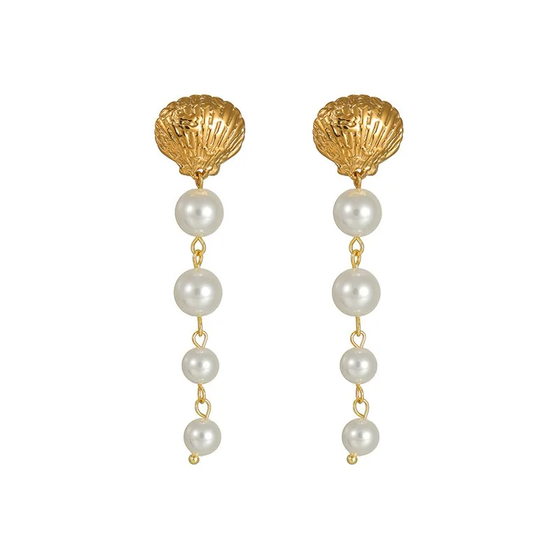 Fine Shell Shape Dangle Drop Earrings Jewelry Women's Fashion Pearls Stainless Steel Long Tassel Dangle Earring