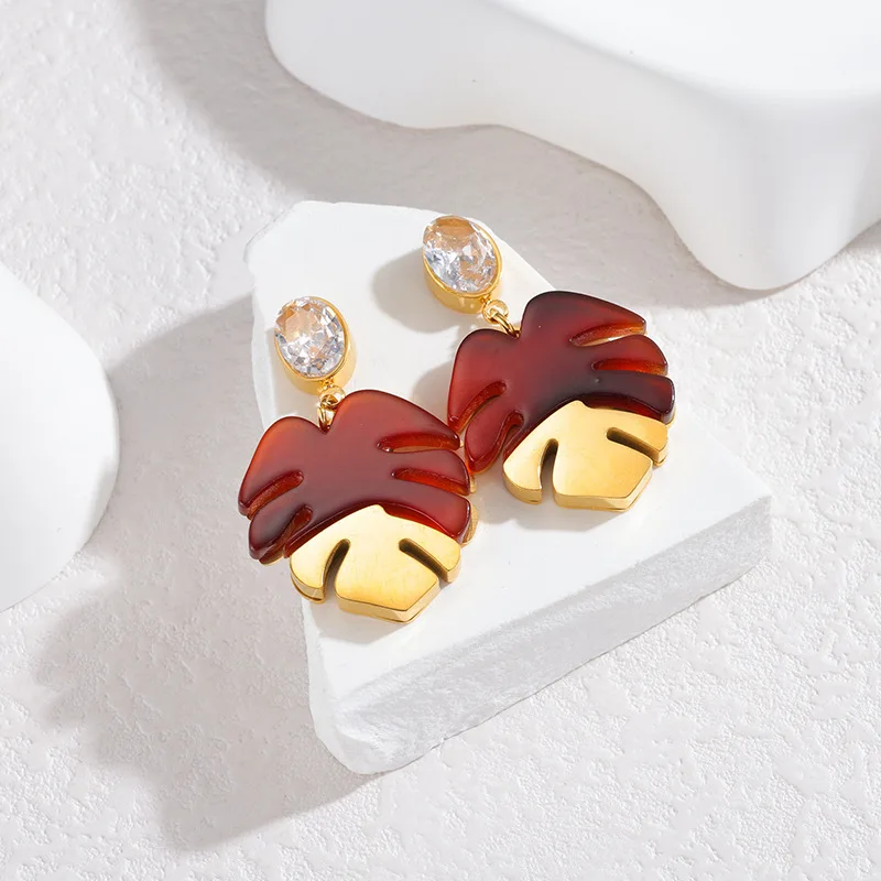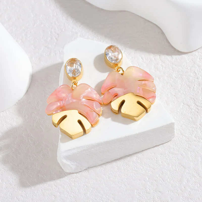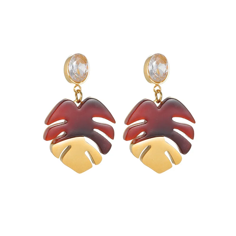 YUKAM Multi Colors Leaf Acrylic Turtle Back Bamboo Pendant Earrings Charm Drop Earrings Accessories Women Jewelry