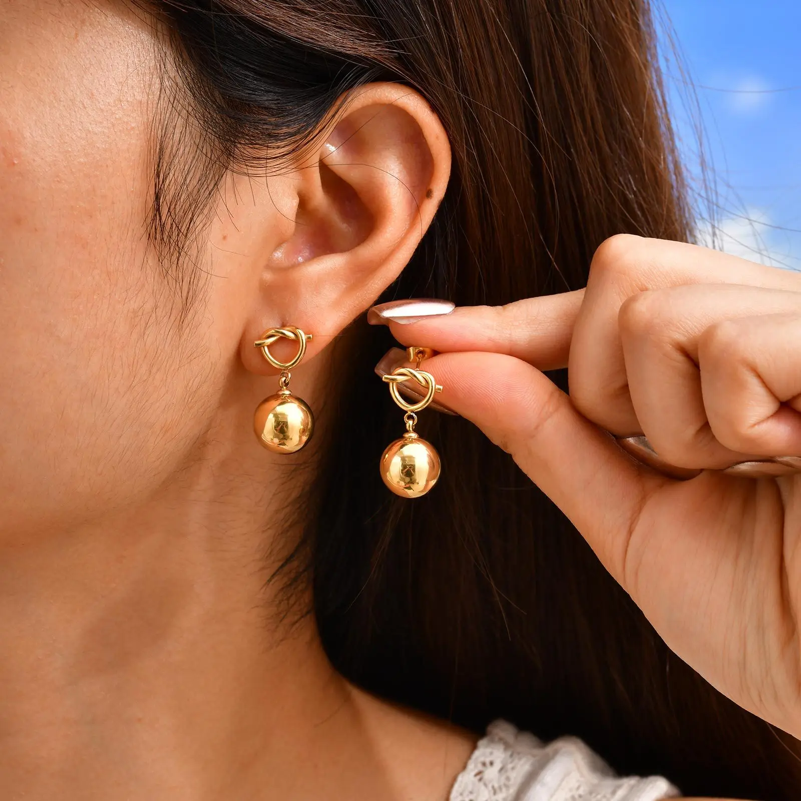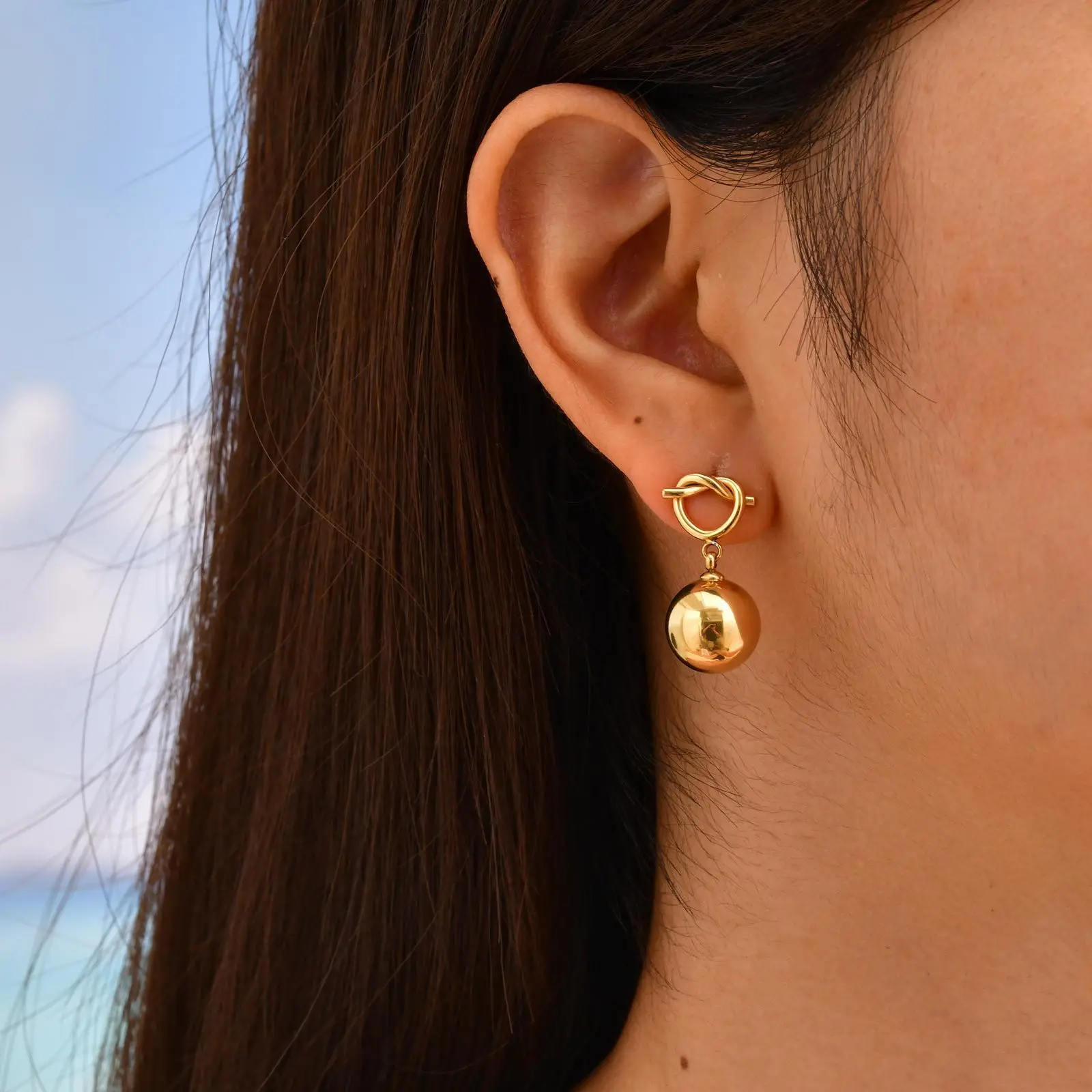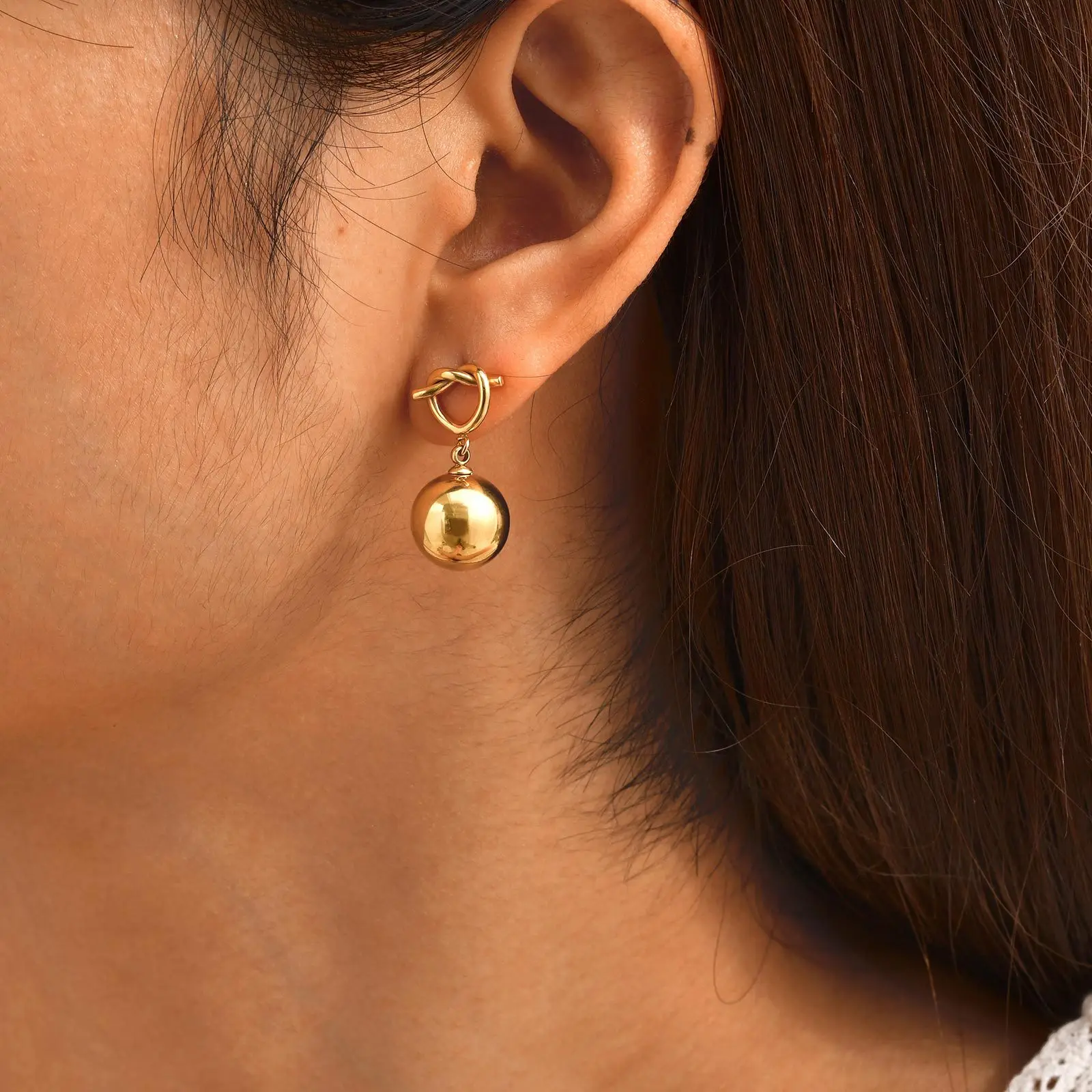 Ins Style Stainless Steel Chunky Earrings Knotted Heart-shaped Gold Ball Drop Earrings
