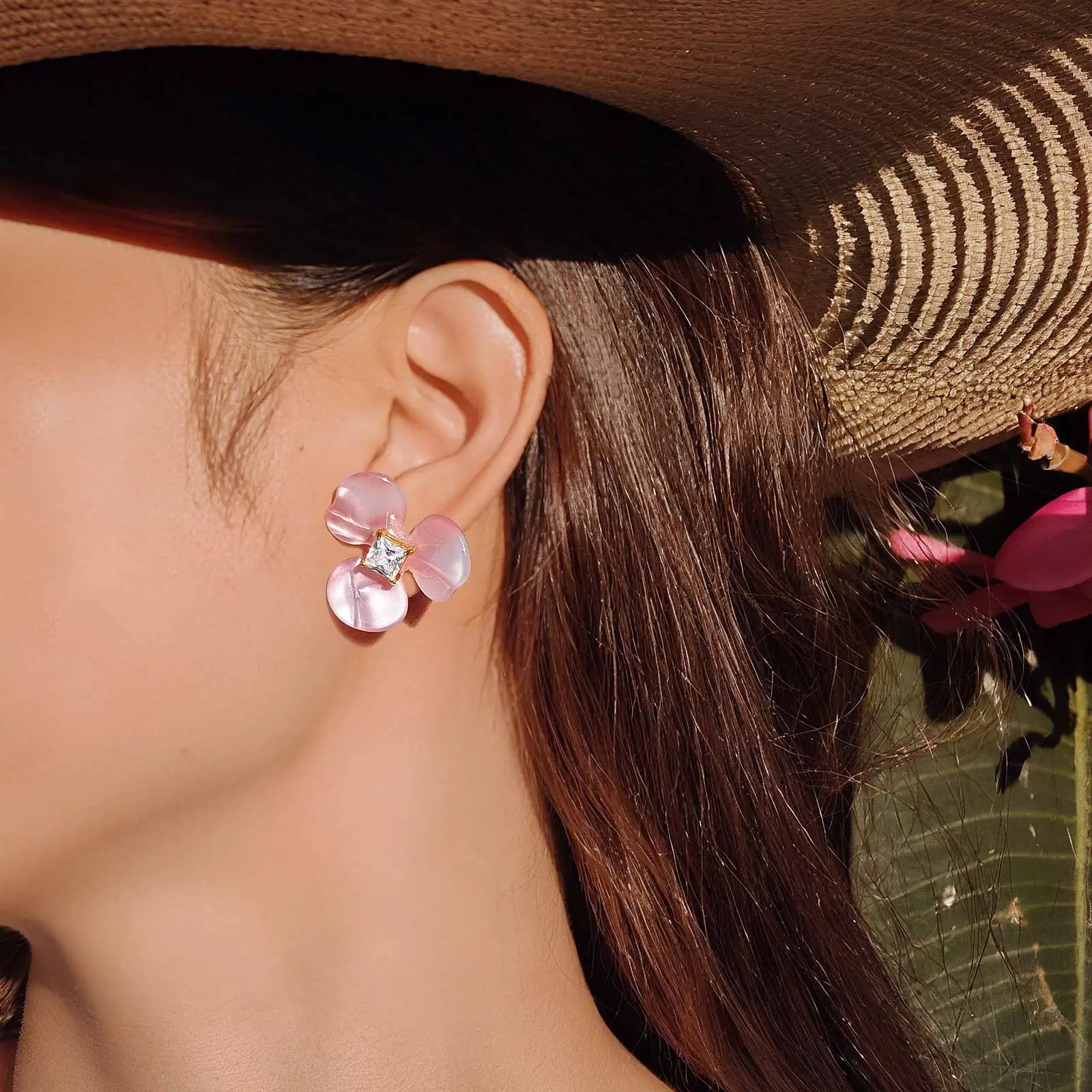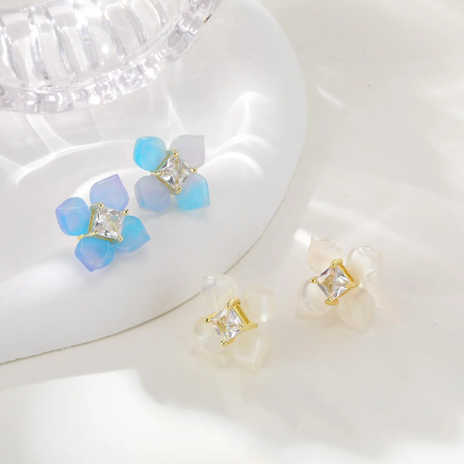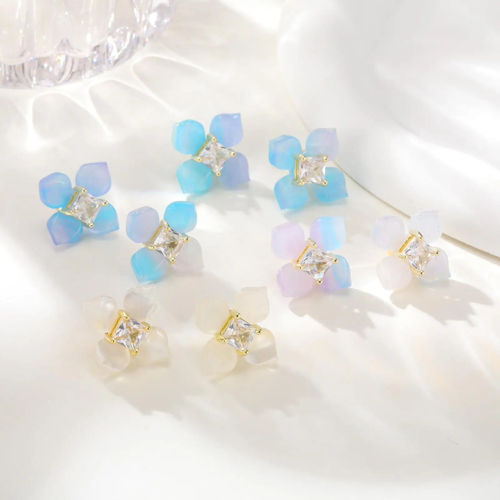Exquisite Resin Petal Sweet Tarnish Free Stainless Steel Gold Plated Ear Studs Flower Shape Stud Earrings for Women