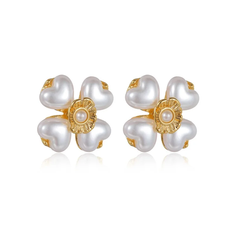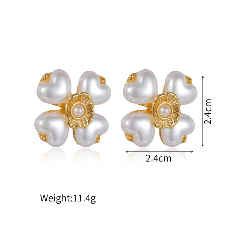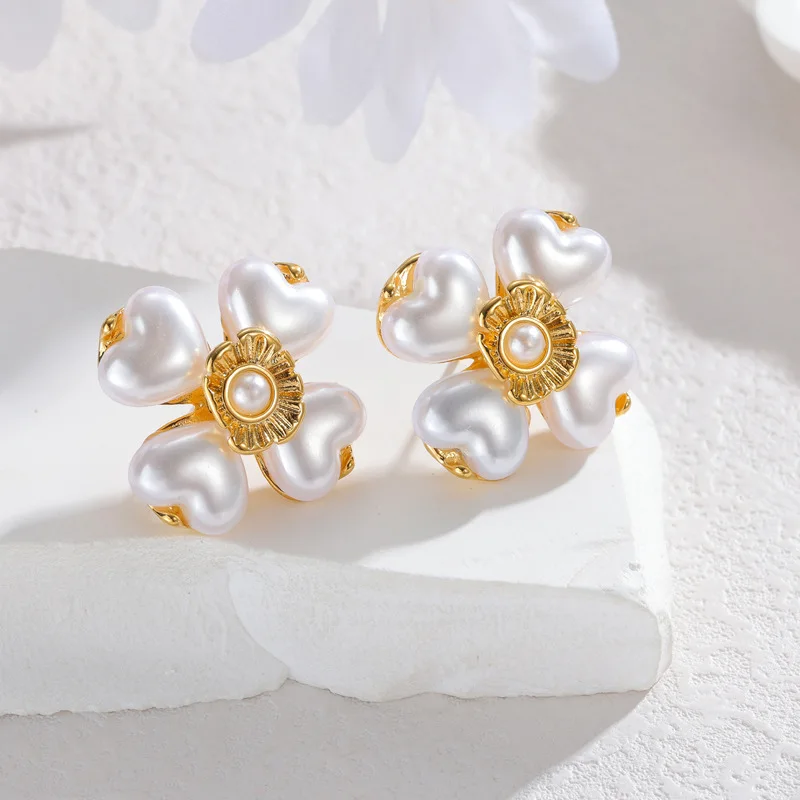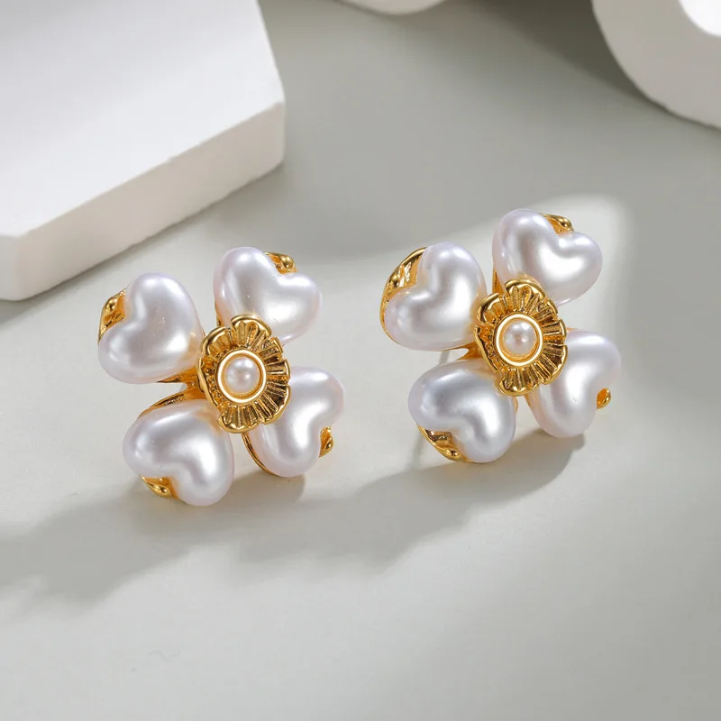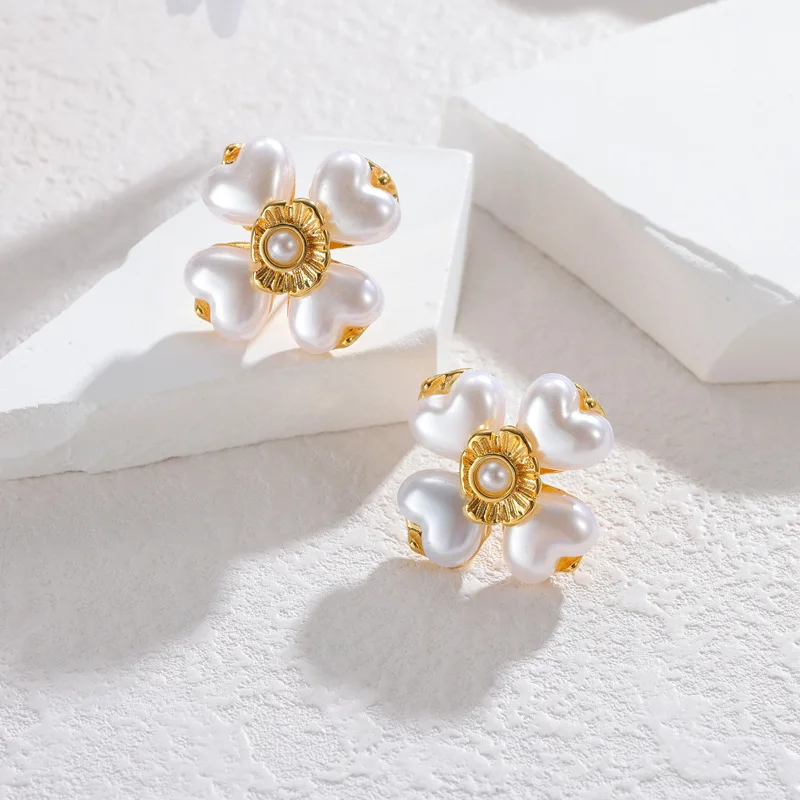 Fashion Jewelry Stainless Steel Heart Shape Pearl Flower Stud Earring 18k Gold Plated Stud Earring for Women