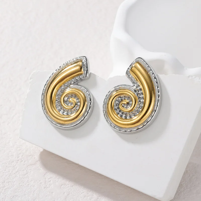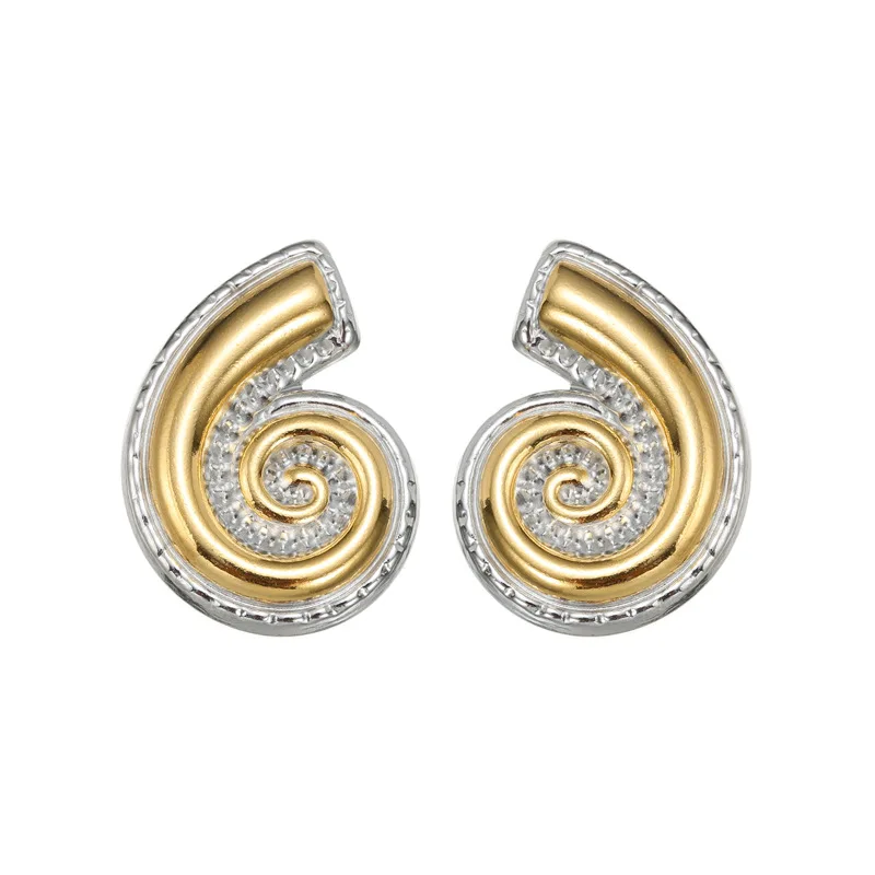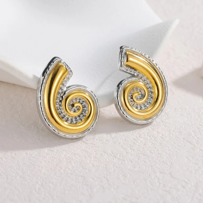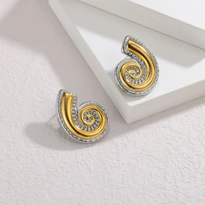 YUKAM Elegant Jewelry Zircon Conch Stud Earrings 18k Gold Plated Stainless Steel Chunky Stud Earring