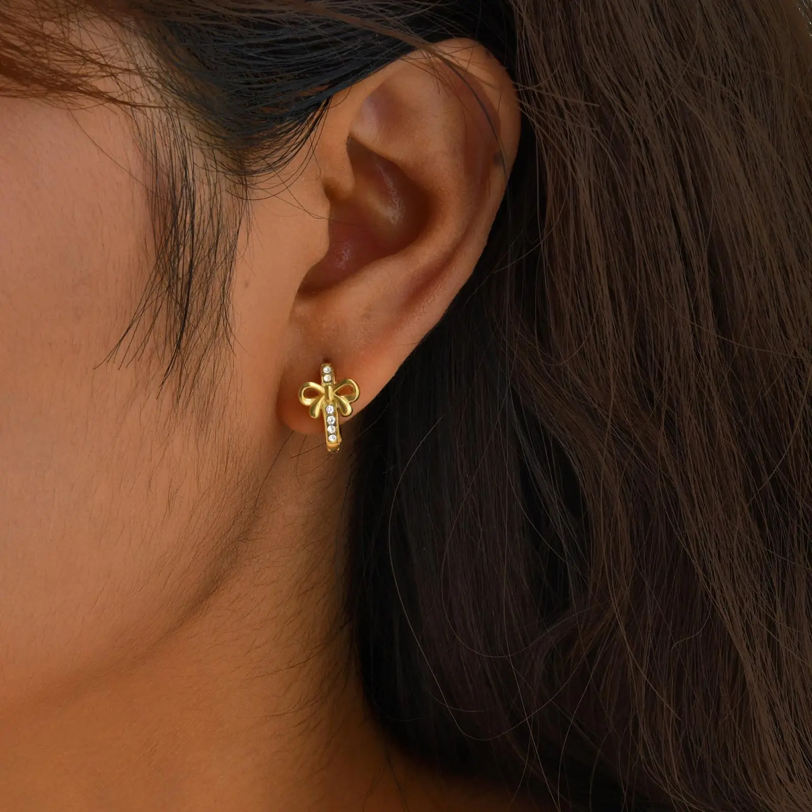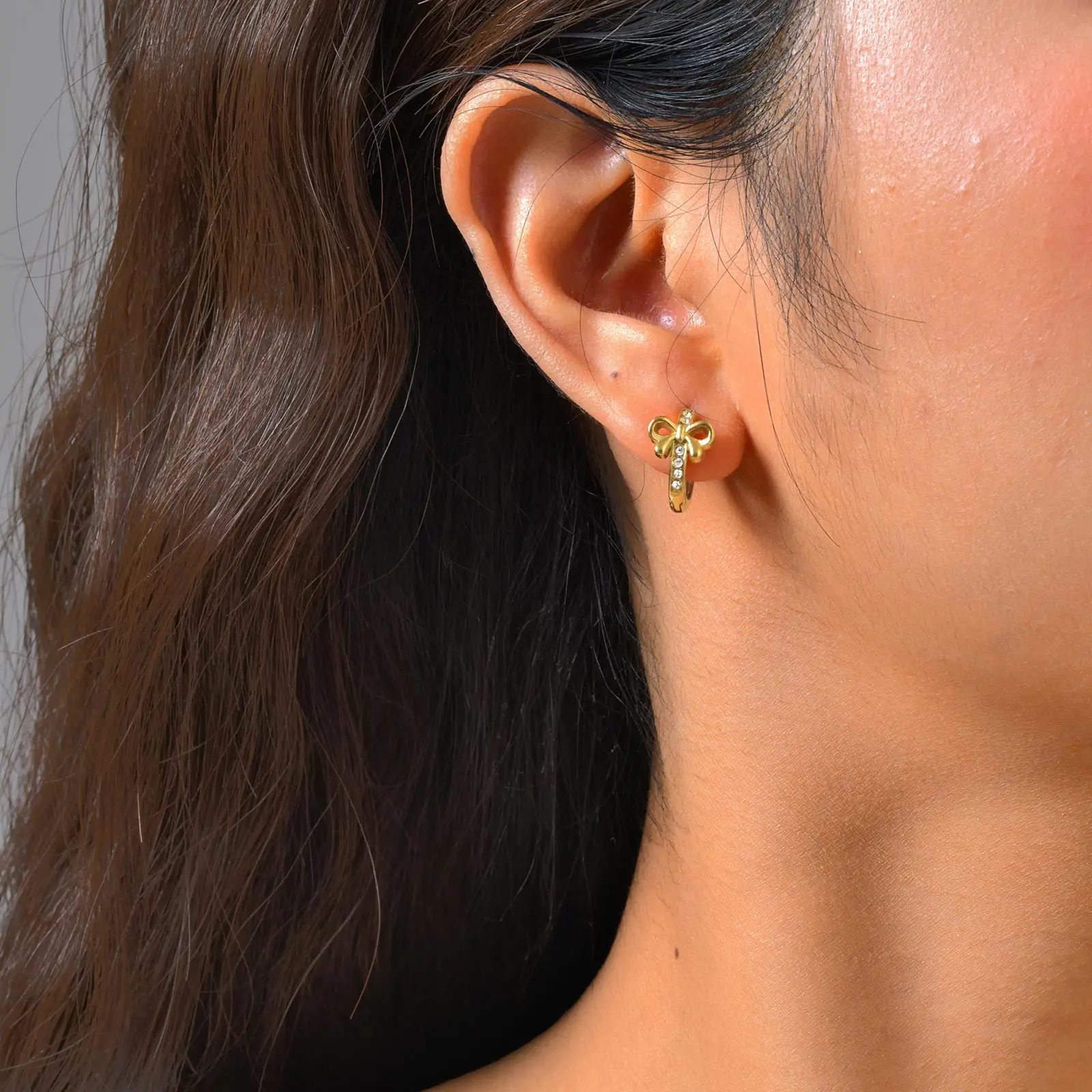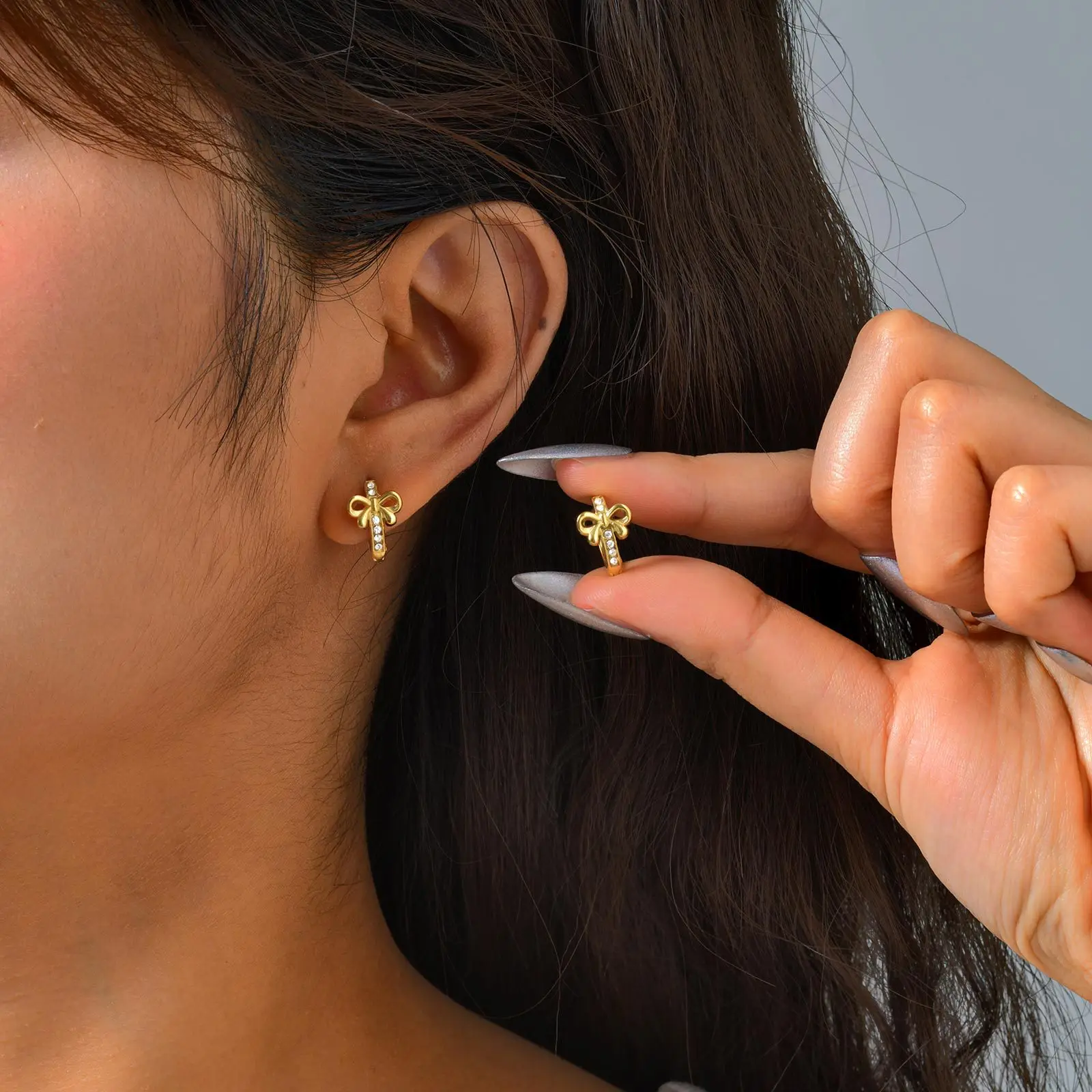 Simple Charm Small Stainless Steel Hoop Earrings Round 18k Gold Plated Cz Huggie Earrings for Women Girls