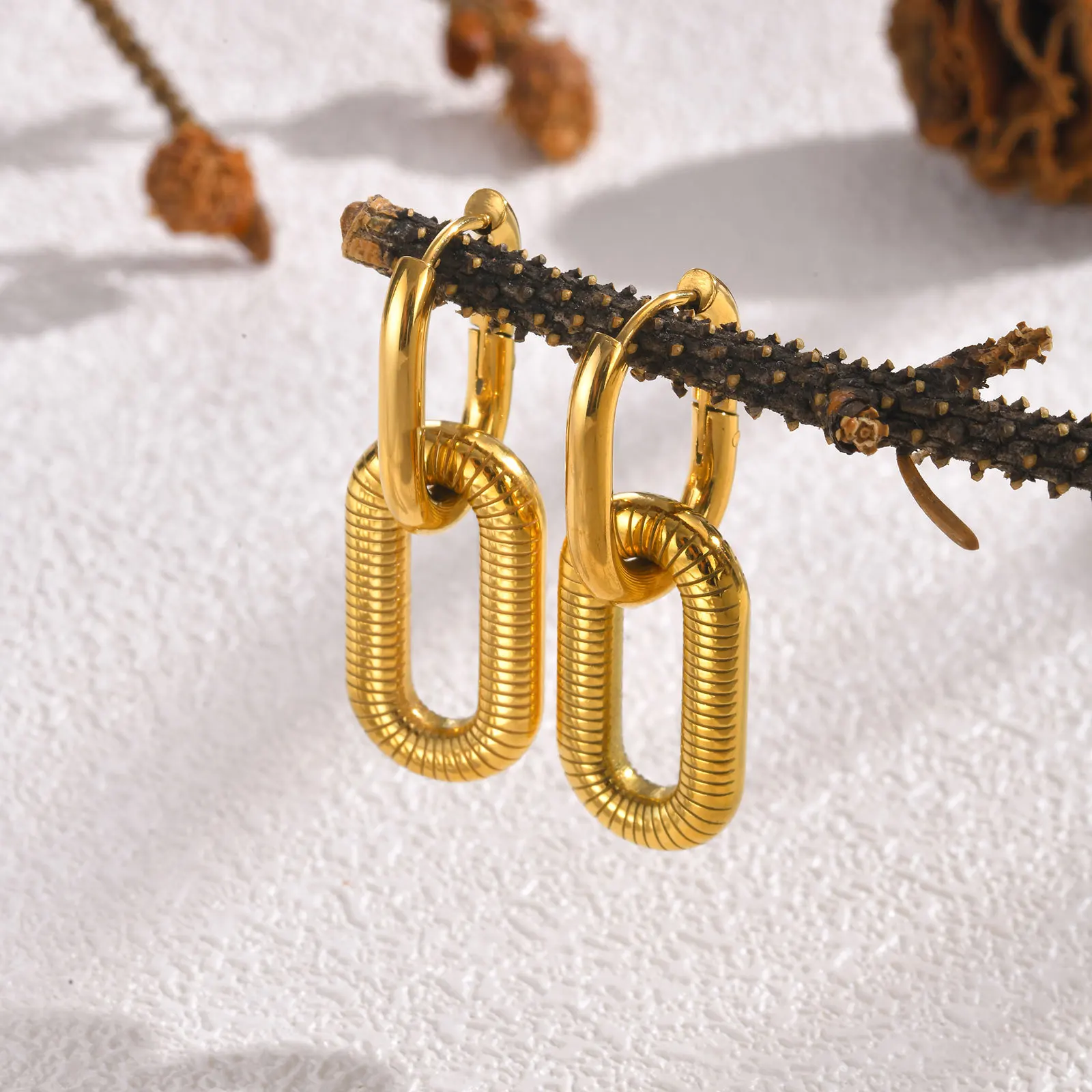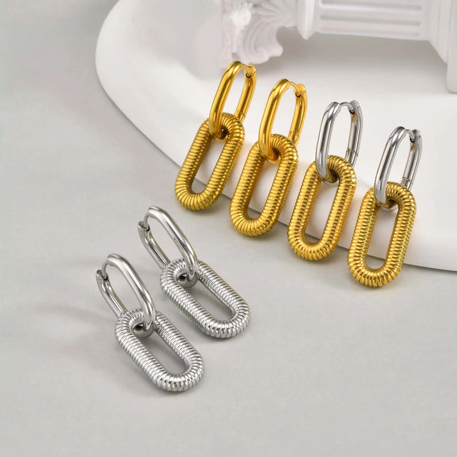 Stylish Ins Style Chunky Stainless Steel Hoop Earrings Stainless Steel Gold Plated Double U Shape Women Drop Hoop Earrings