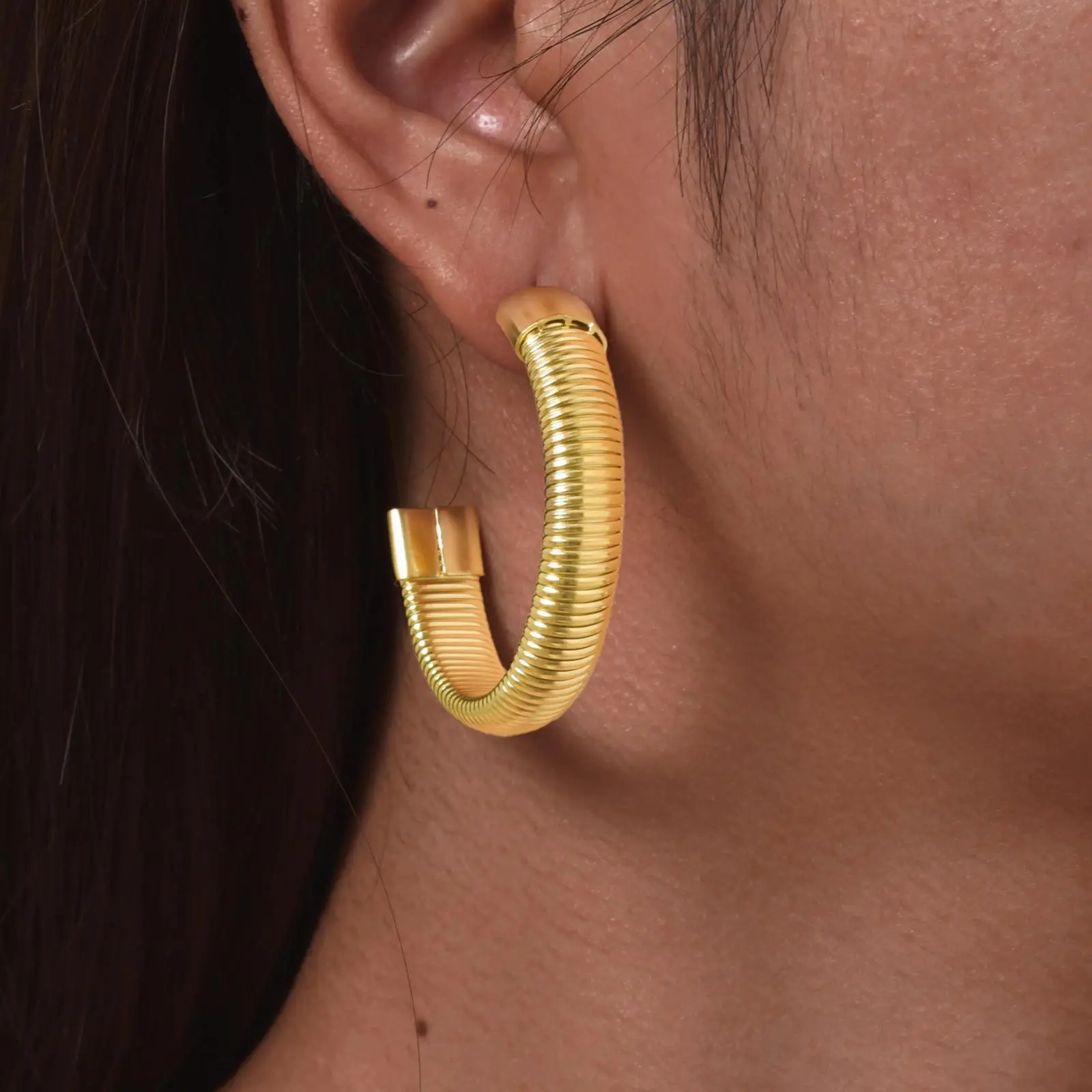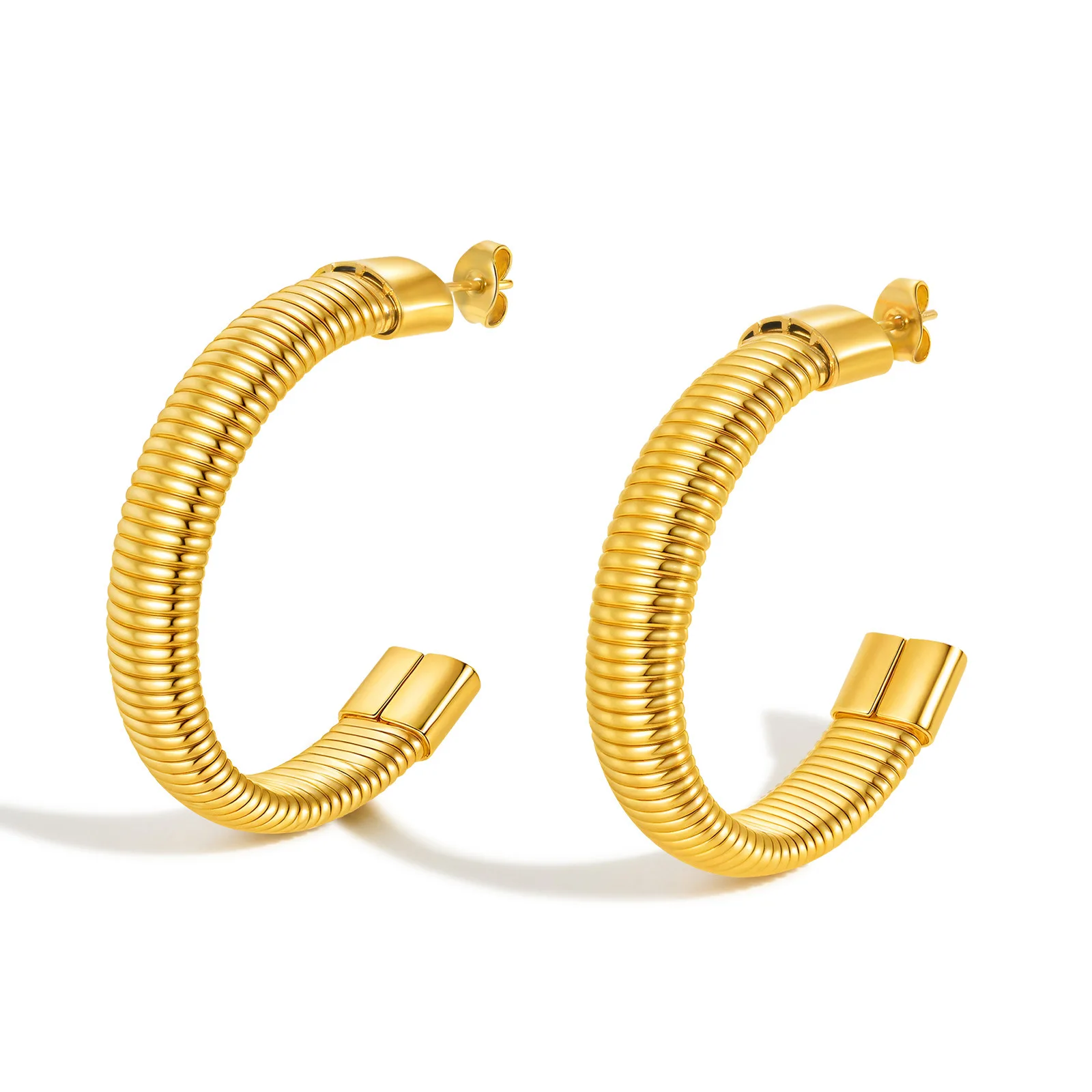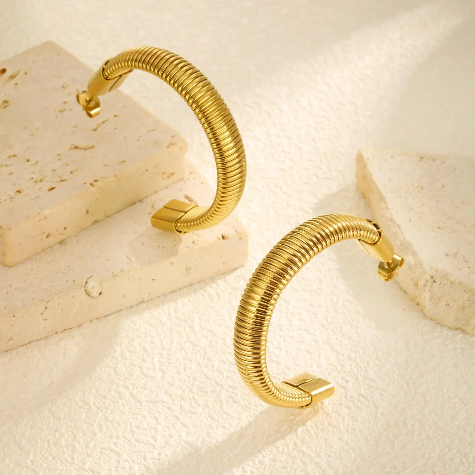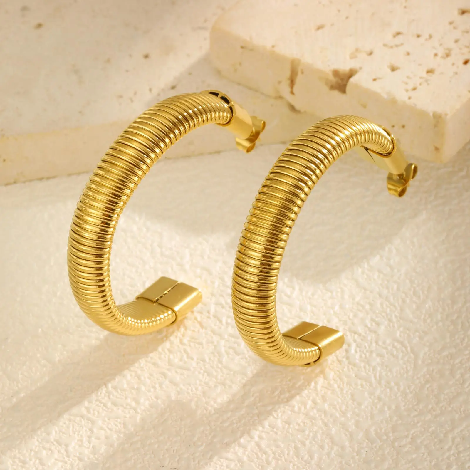 Hot Sale Stainless Steel Huggies Elastic C-Shaped Hoop Earrings Jewelry for Women Fashion Chunky Hoop Earrings