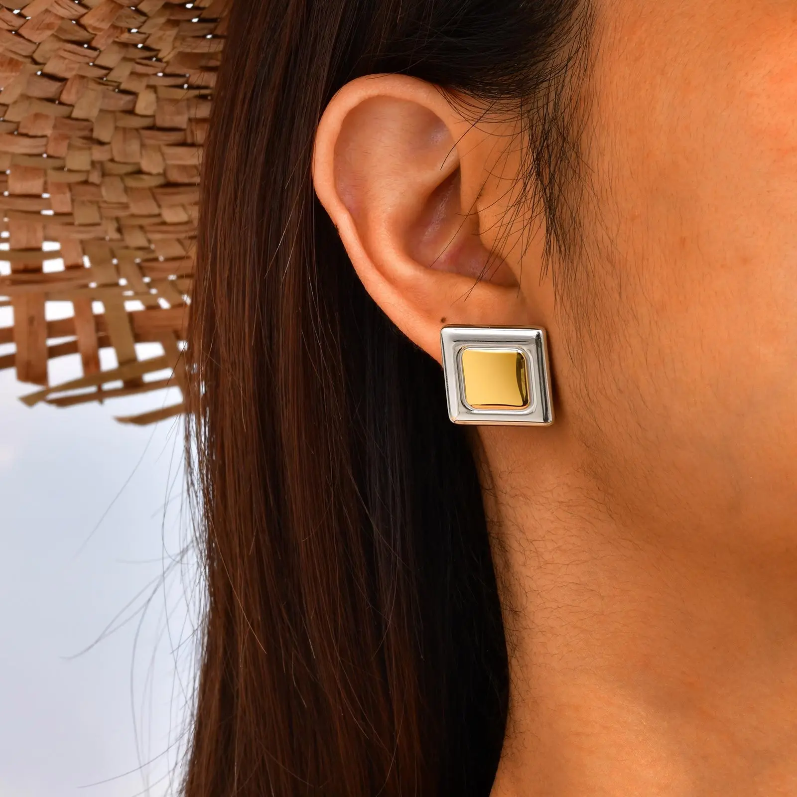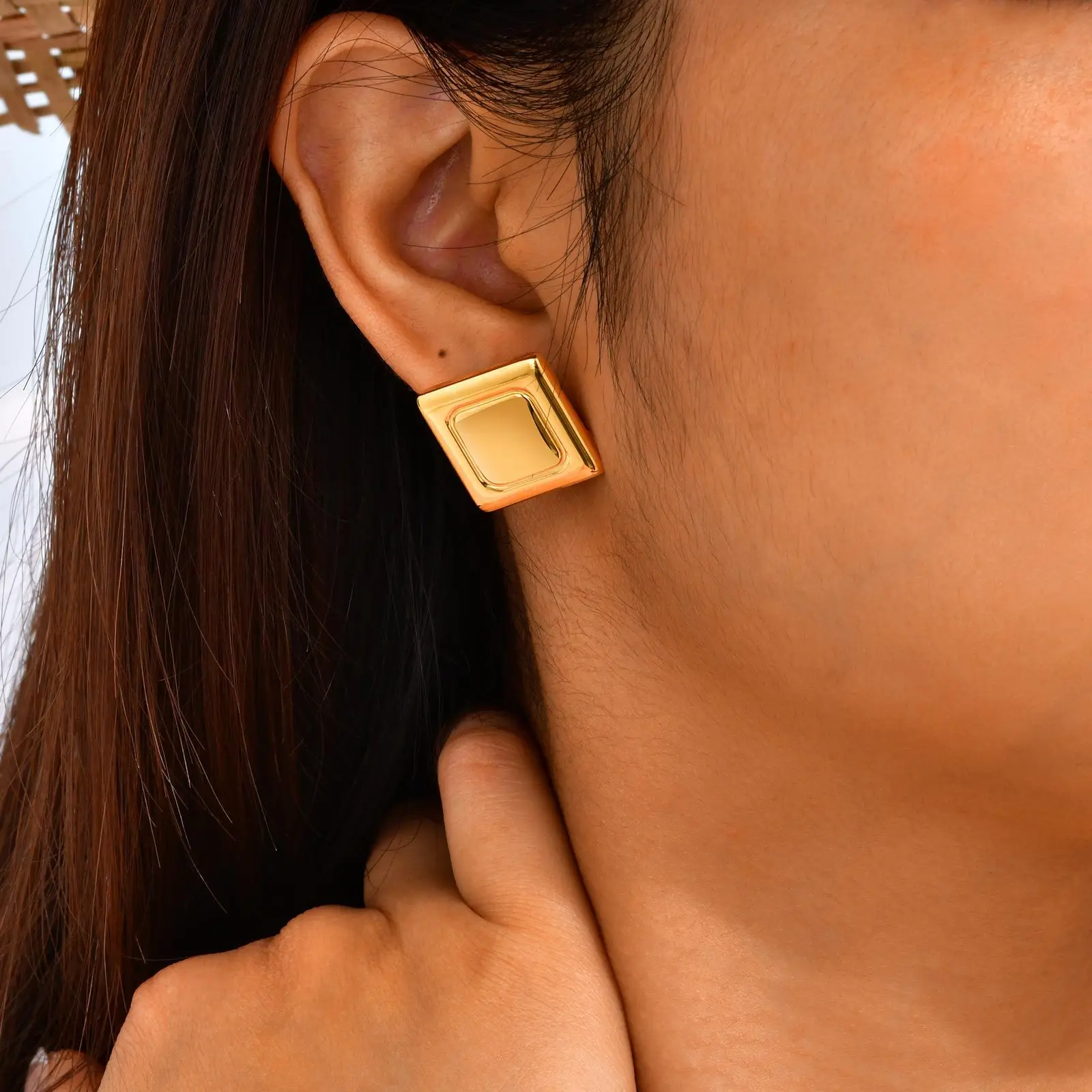 Fashion Exaggerated Geometric Pattern Stainless Steel Gold Plated Ear Studs Square Stud Earring for Women Trendy Jewelry