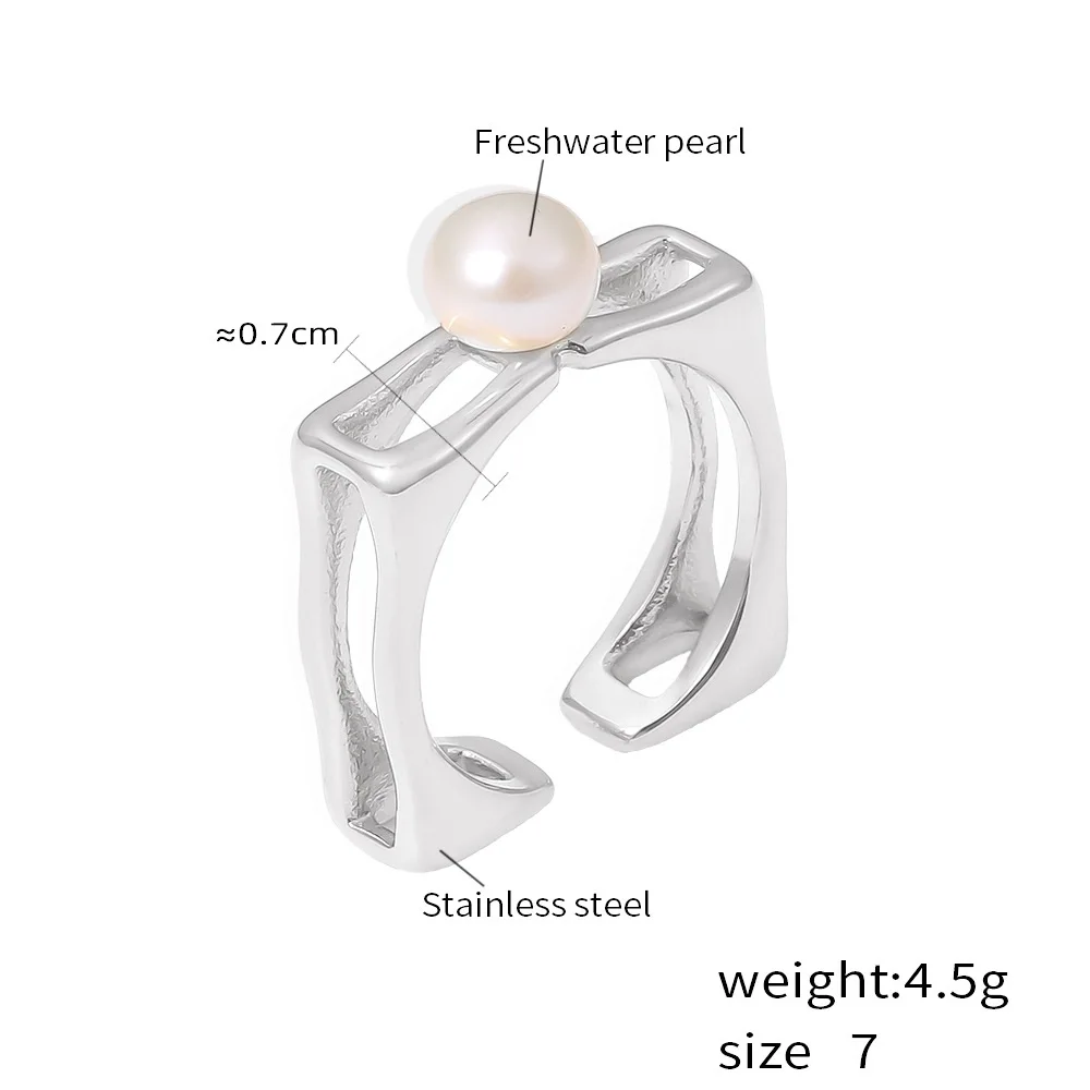 Fashion Modern Jewelry 18k Gold Plated Stainless Steel Women Open Adjustable Rings Square Hollow Inlaid Pearl Rings
