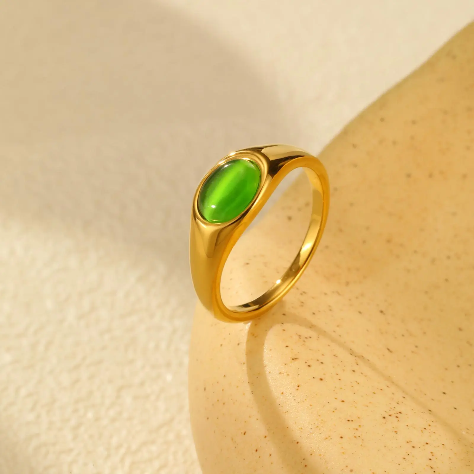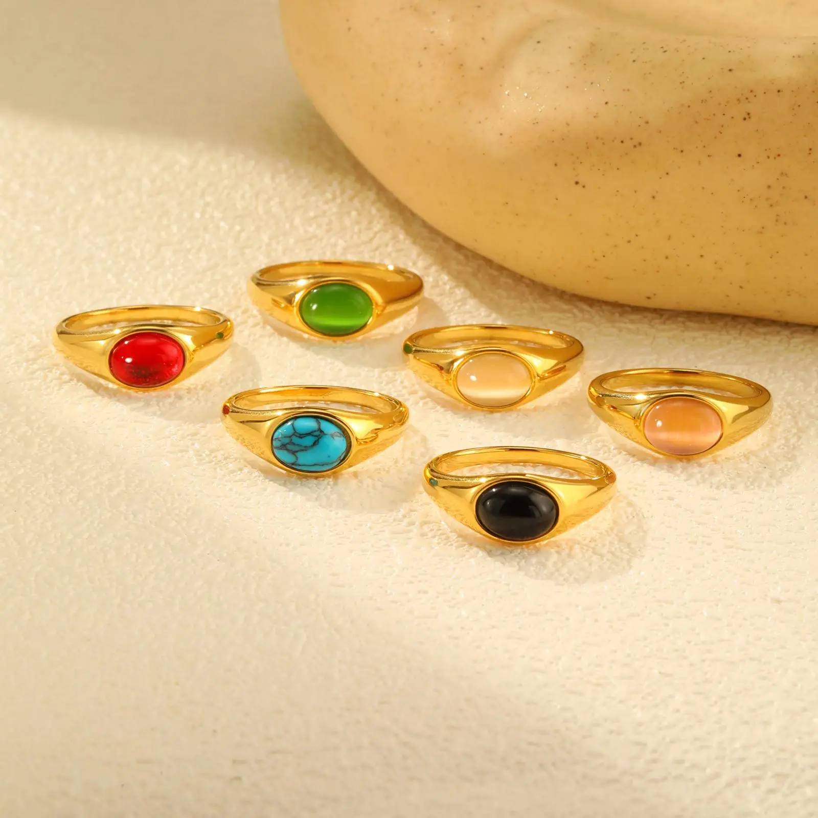 Vintage Design Natural Stone Chunky Rings Stainless Steel Jewelry Rings Women 18k Gold Plated Rings