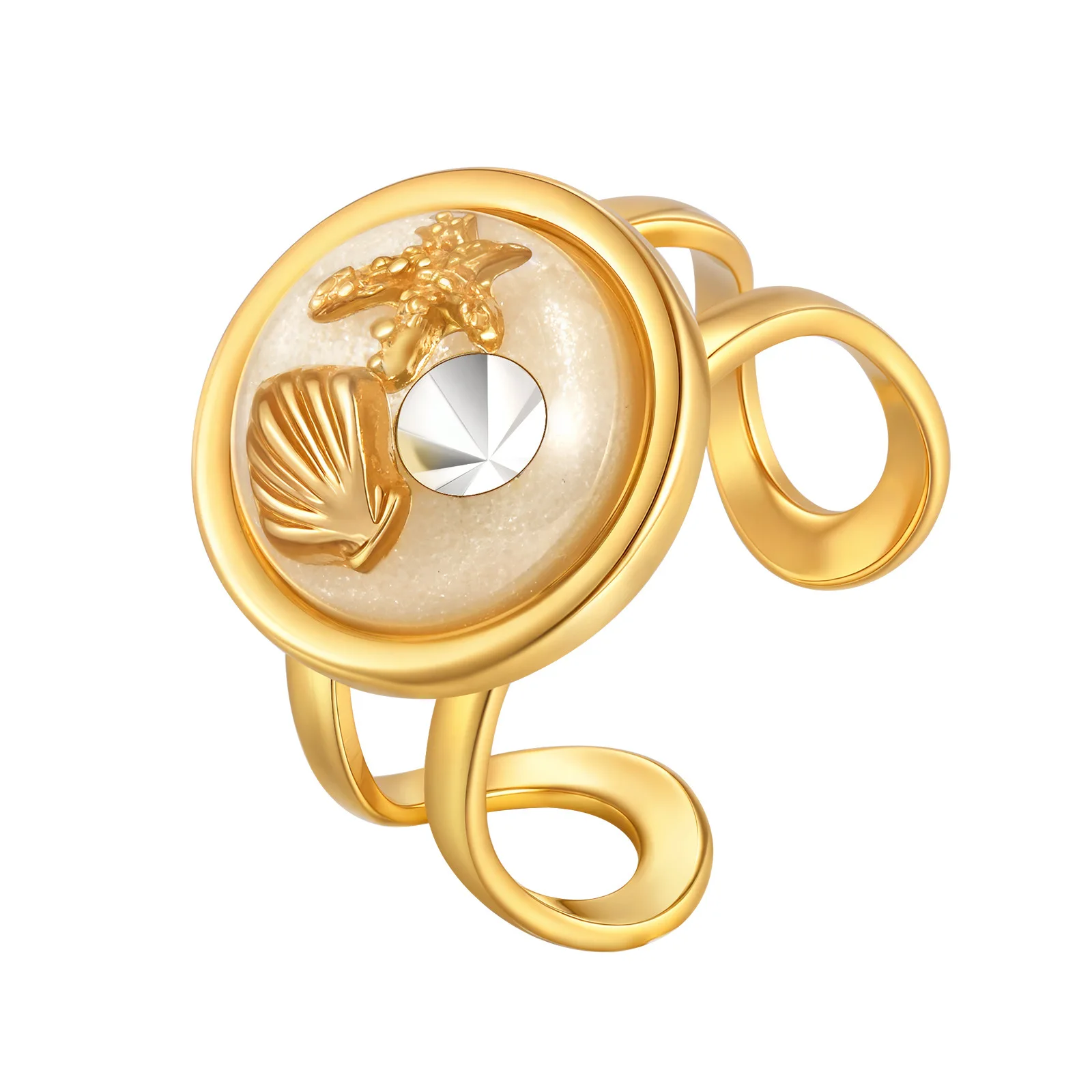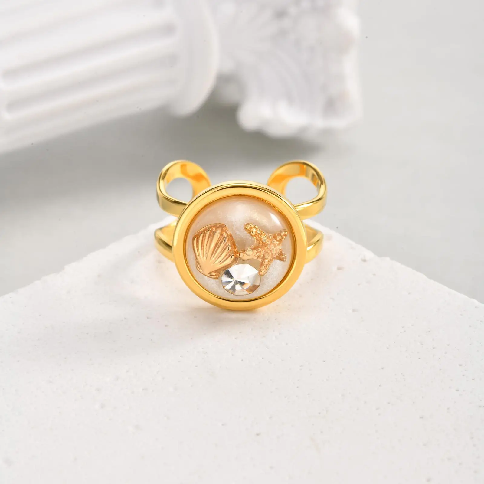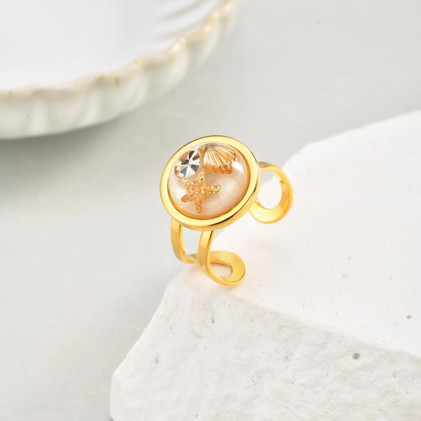 Summer Adjustable Women Stainless Steel 18k Gold Plated Jewelry Ring Tarnish Free Waterproof Round Resin Opening Ring