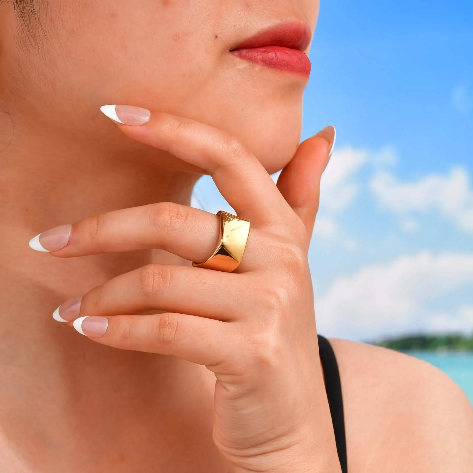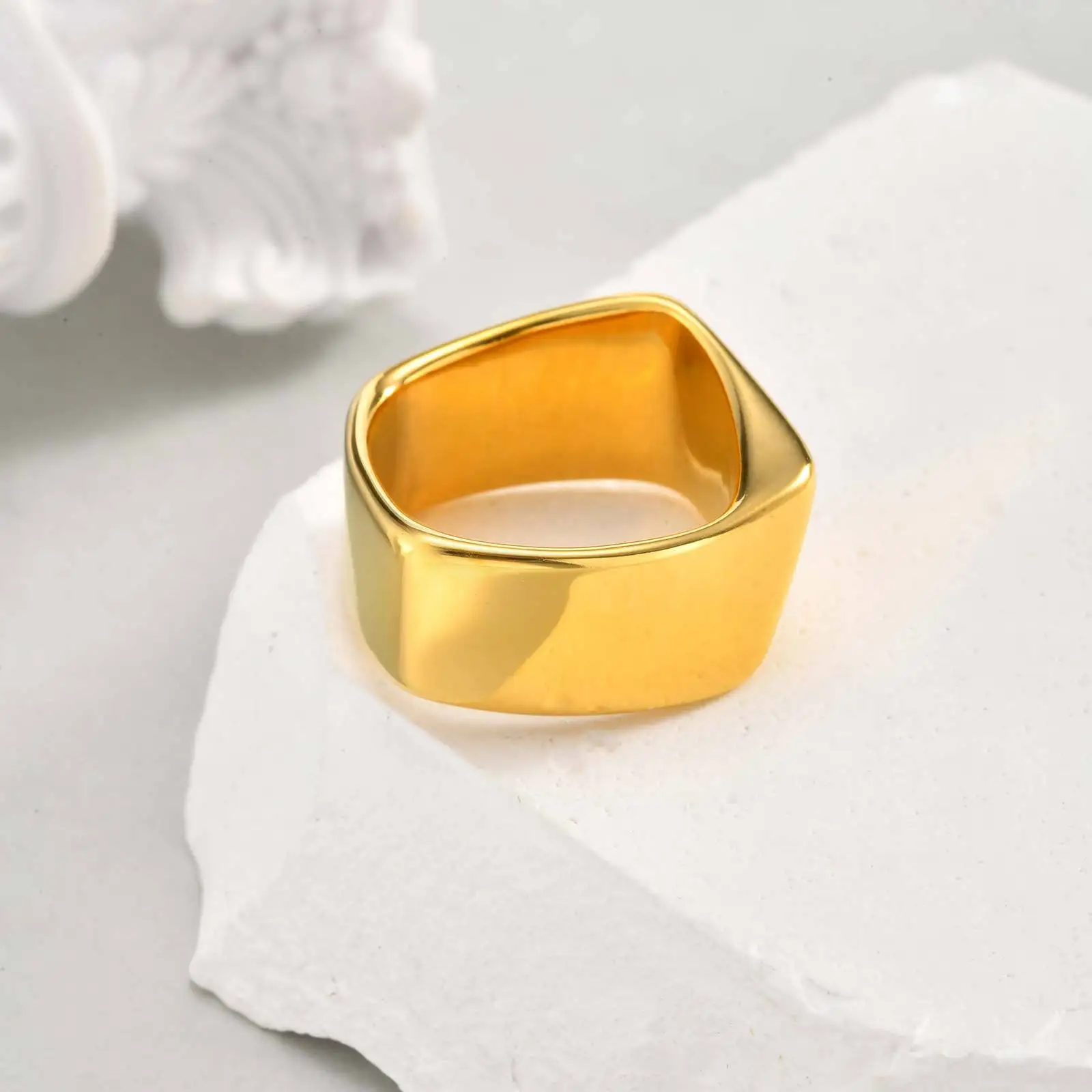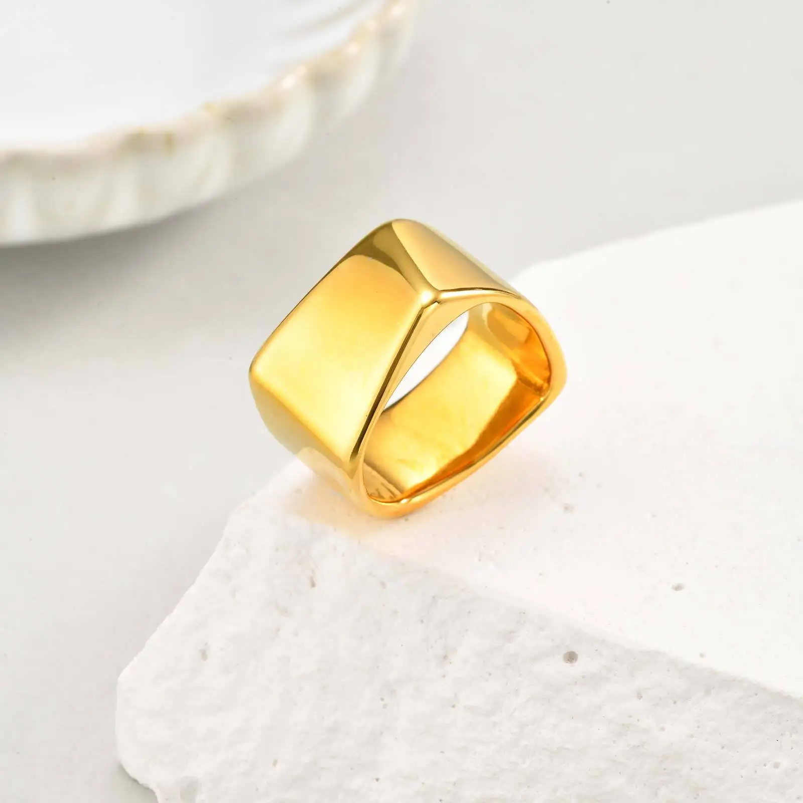Fashion Geometric Smooth Surface Women Men Rings Stainless Steel Gold Plated Ring Waterproof Jewelry