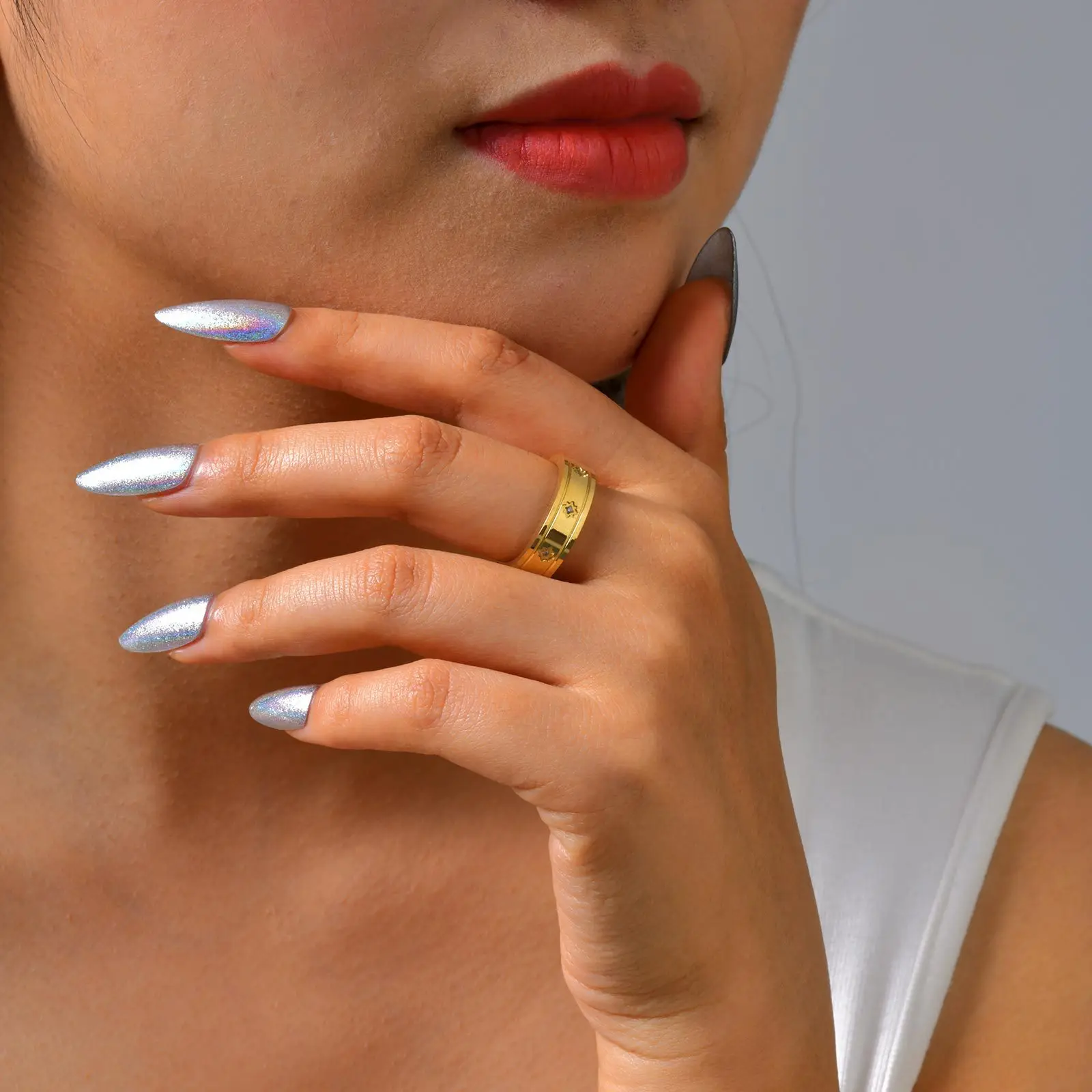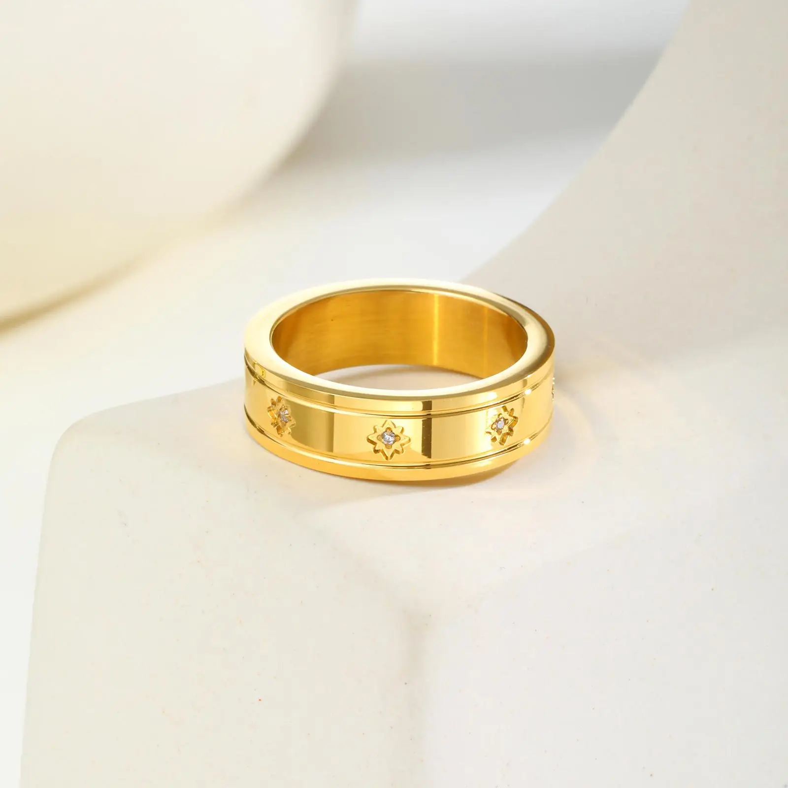 Unisex Zircon Tarnish Free Jewelry Gold Plated Stainless Steel Rings Women Men Eight Point Star Engagement Rings