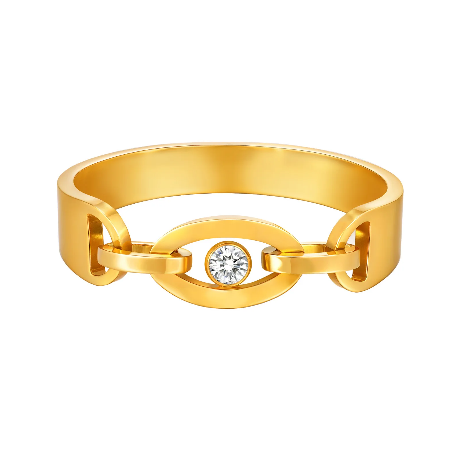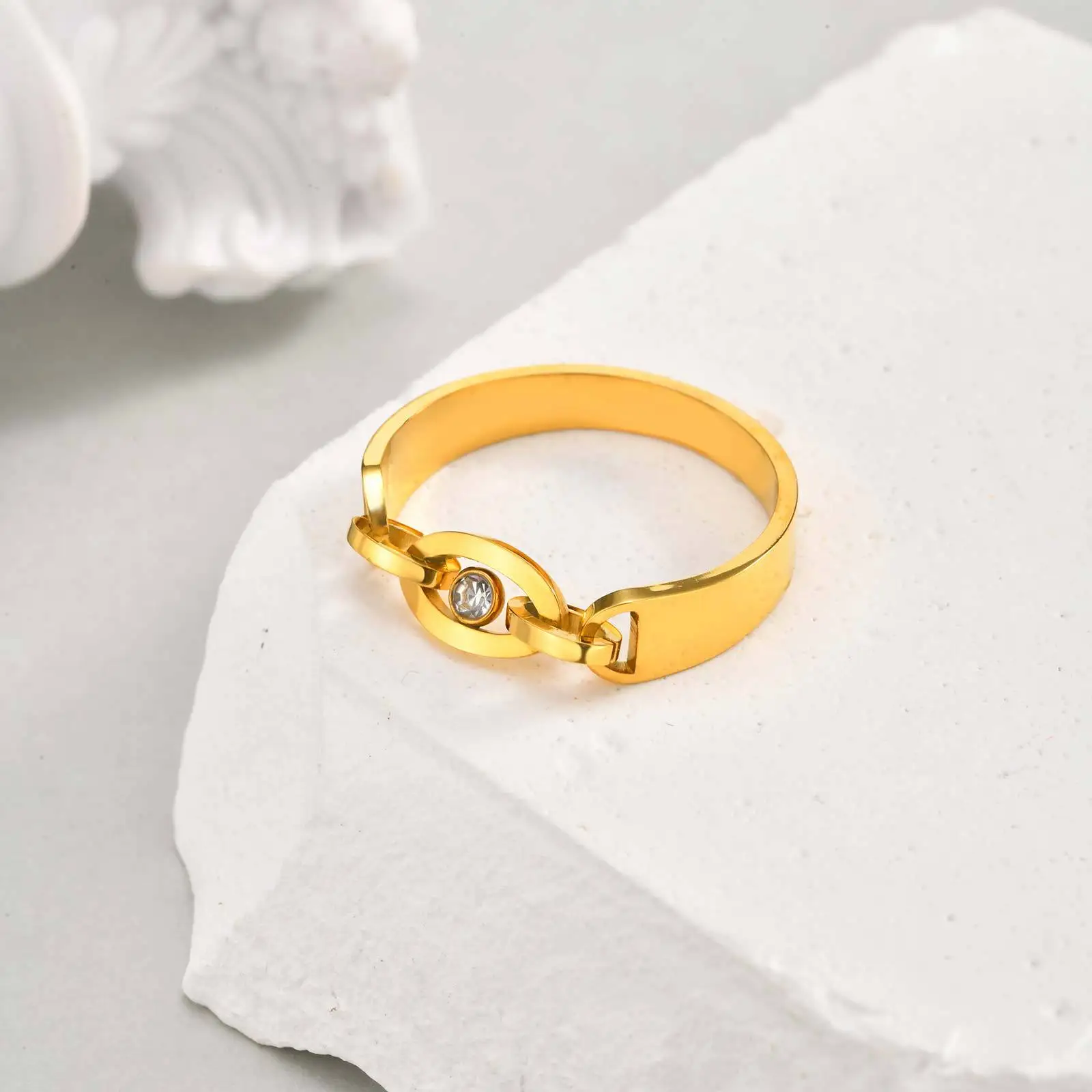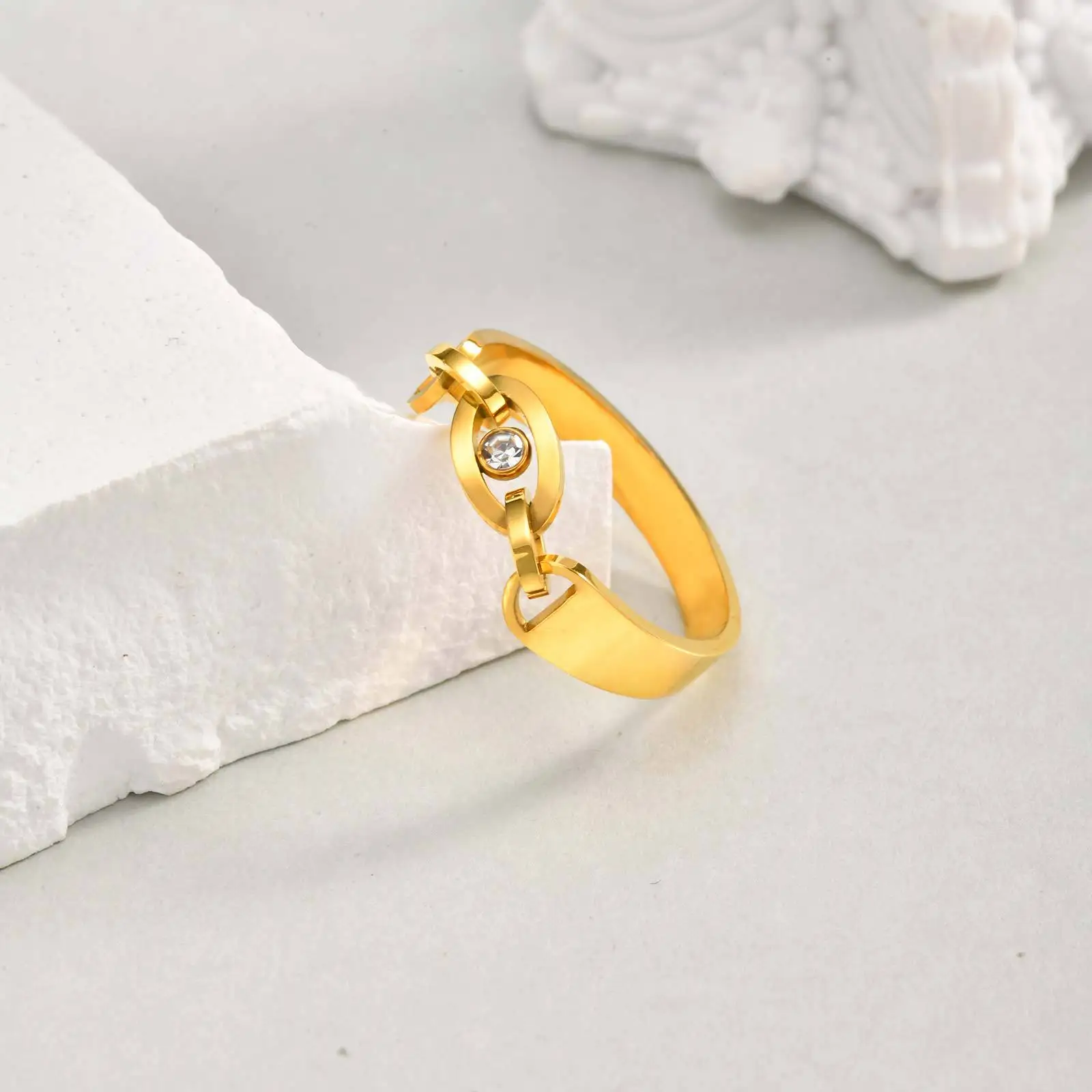 Unique Design Women's Geometric Ring Stainless Steel Plated 18k Gold Geometric Zircon Ring