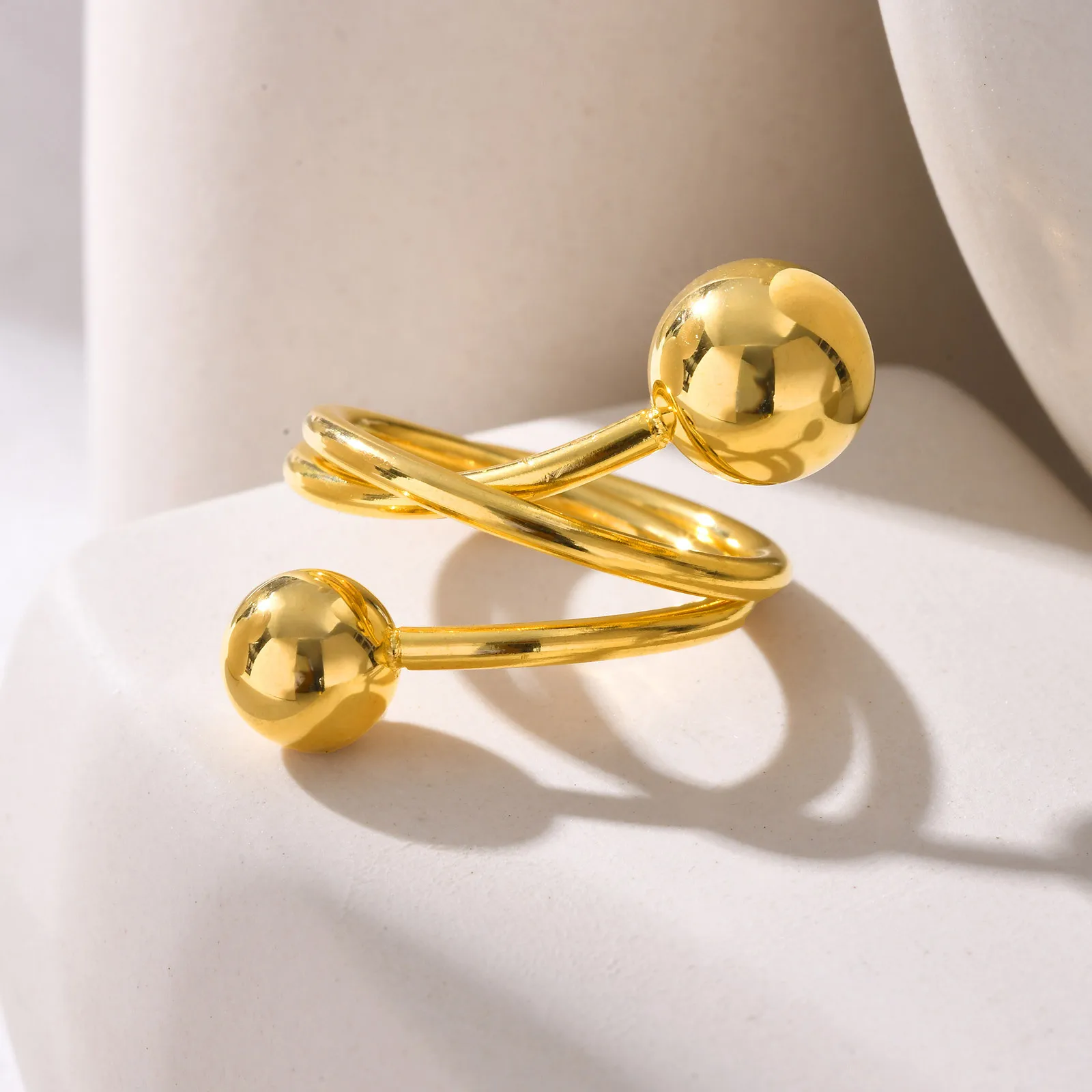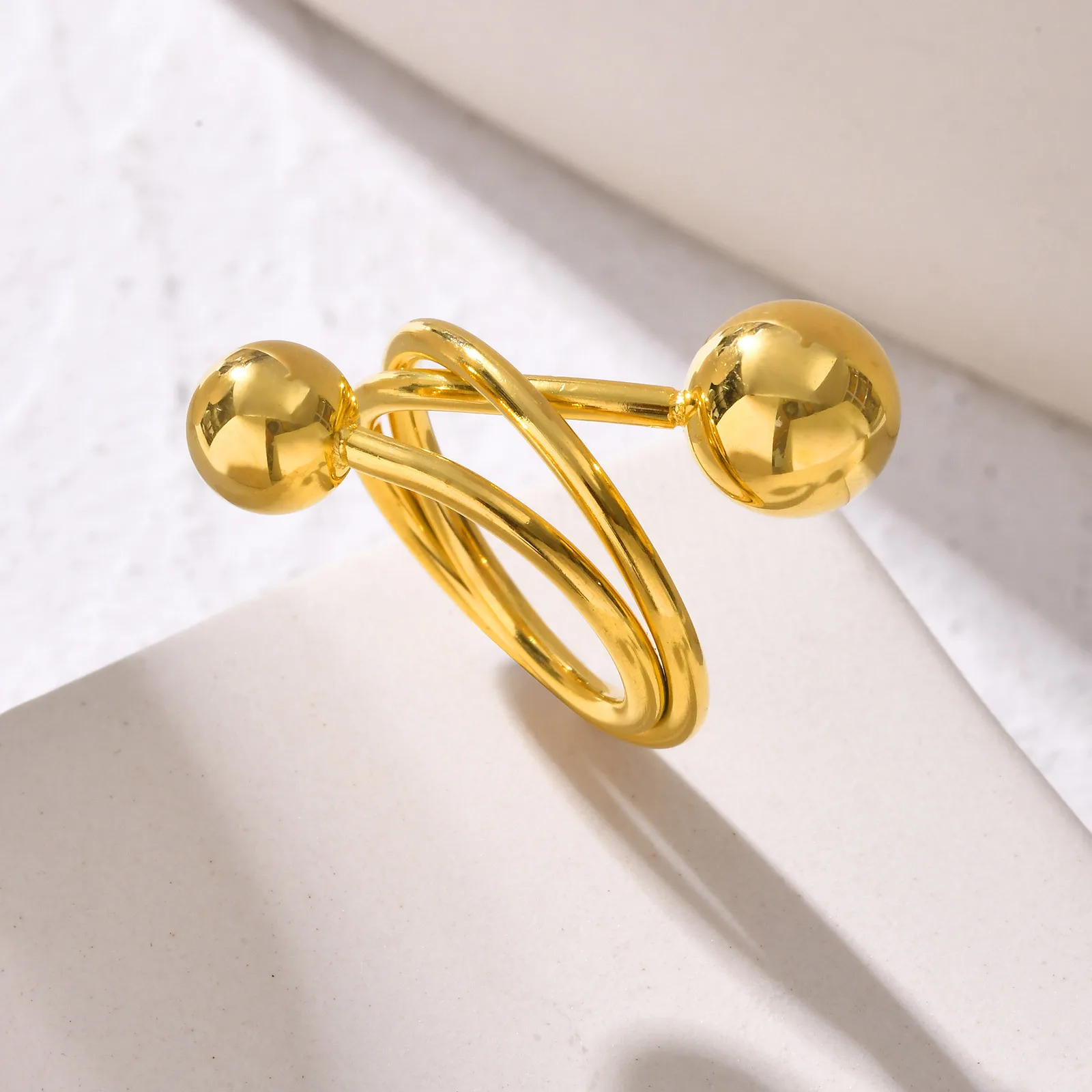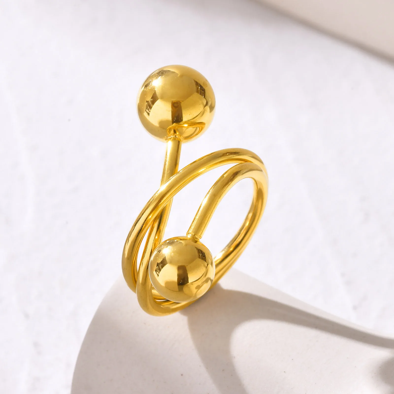 New Ins Style Women's Jewelry Ring Gold Plated Stainless Steel Ball Irregular Ring Daily Accessories