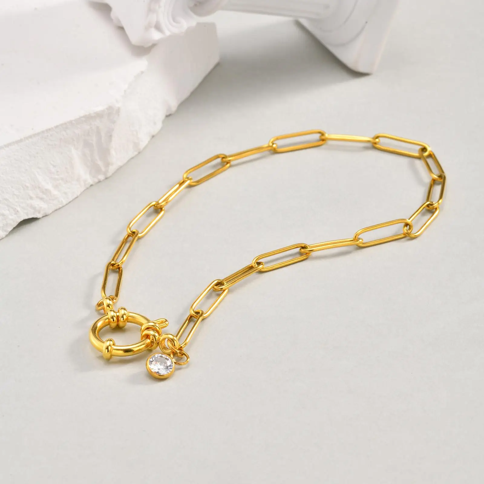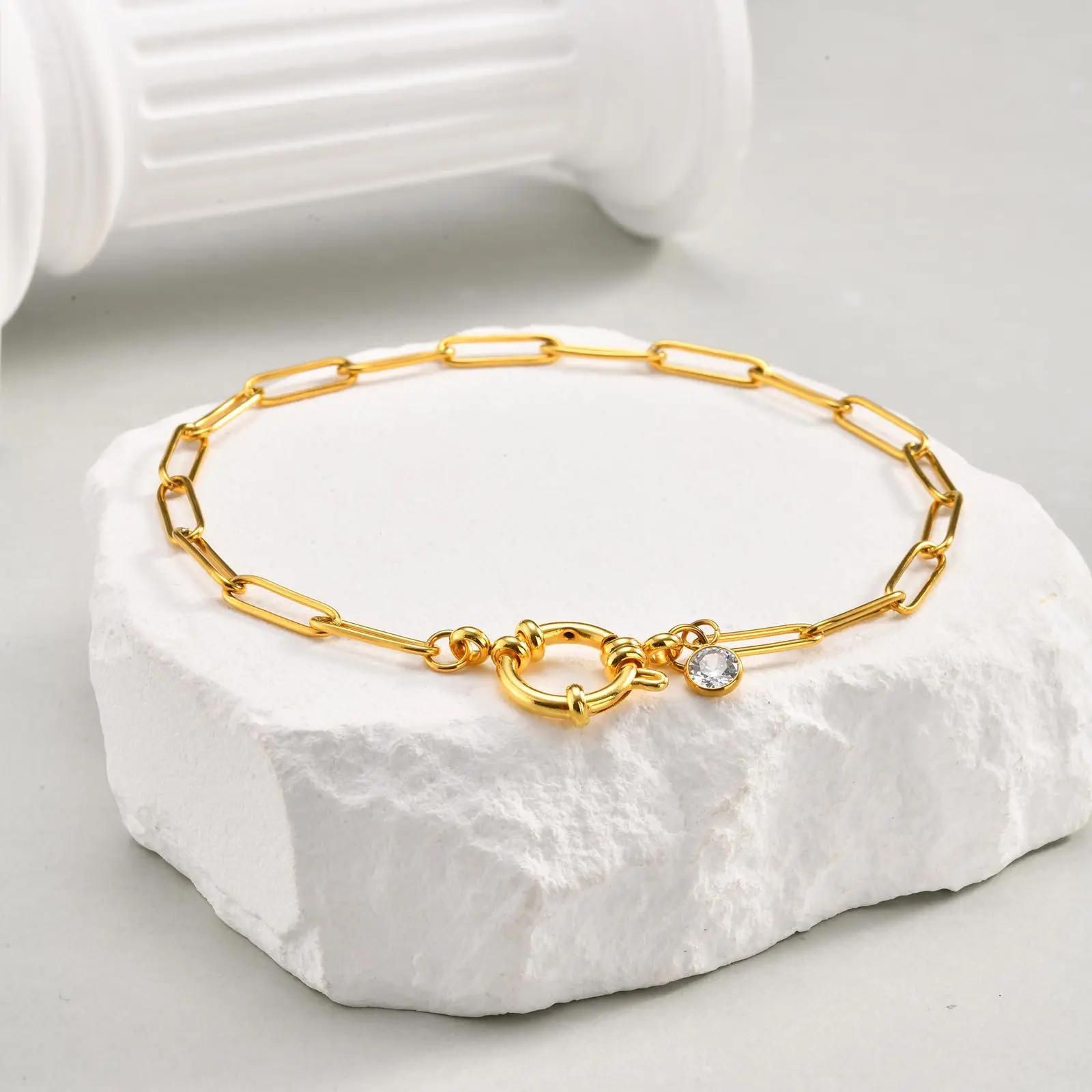 Fashion Rectangular Chain Bubble Buckle Foot Women Anklets 18k Gold Plated Stainless Steel Cuban Link Chain Waterproof Anklets