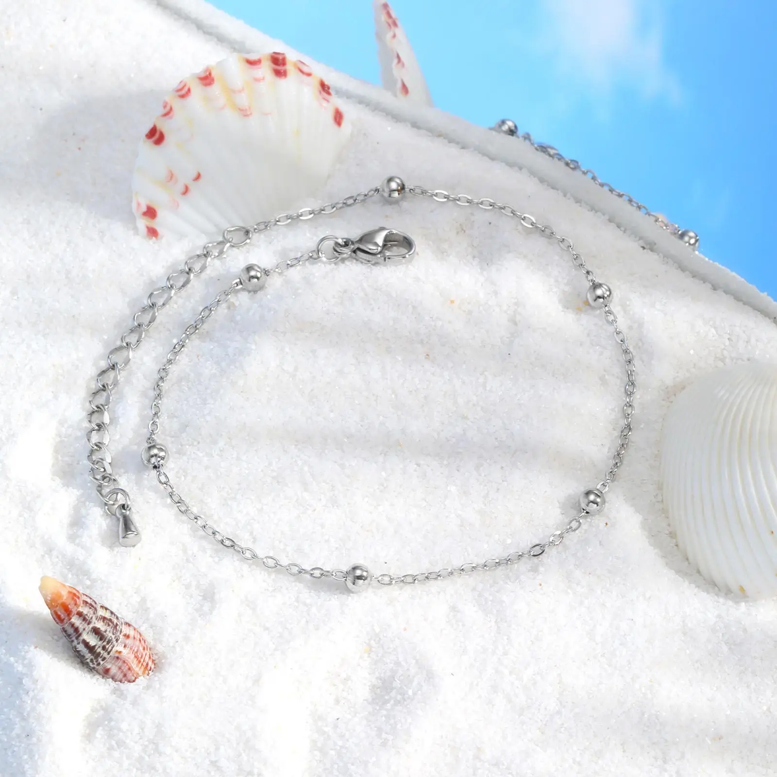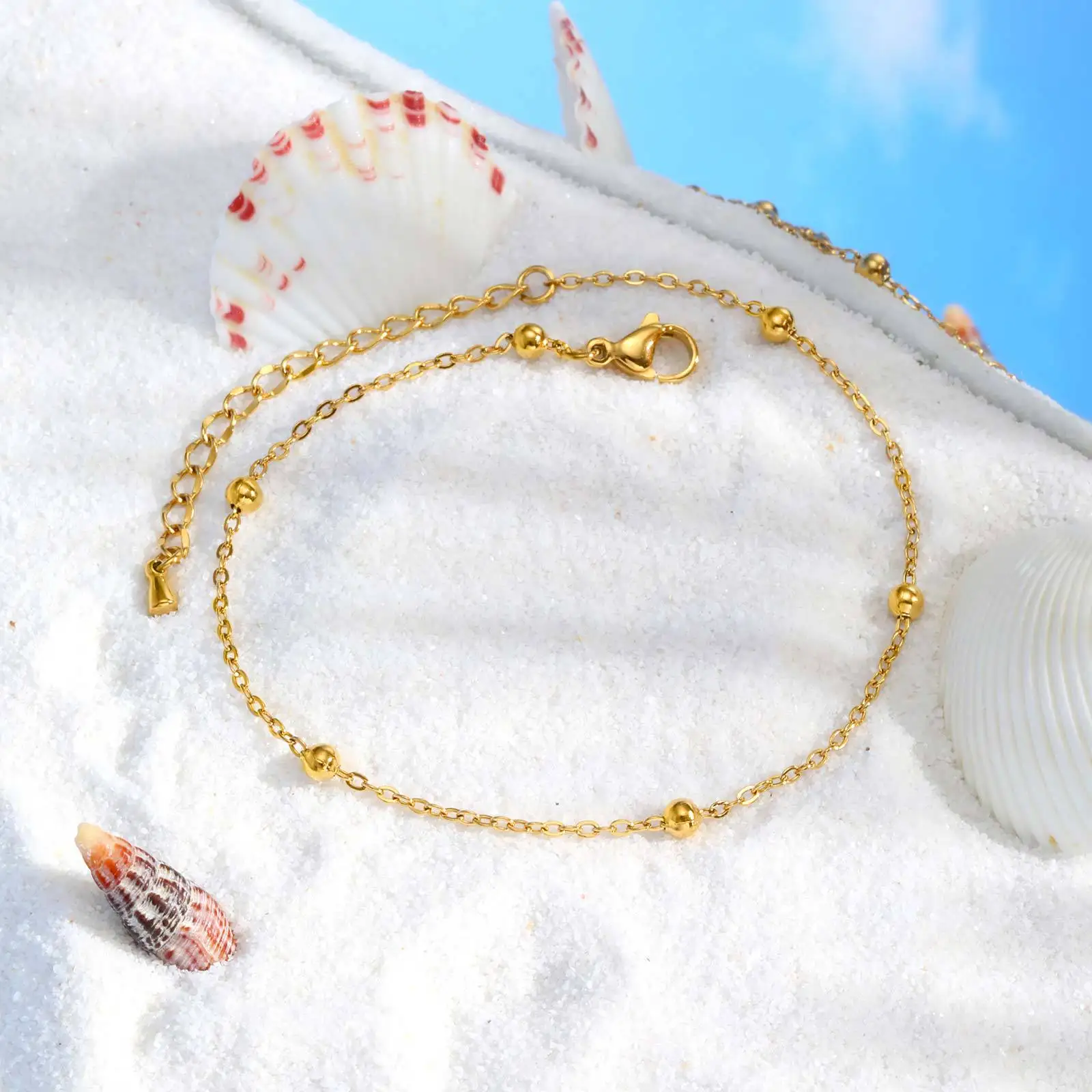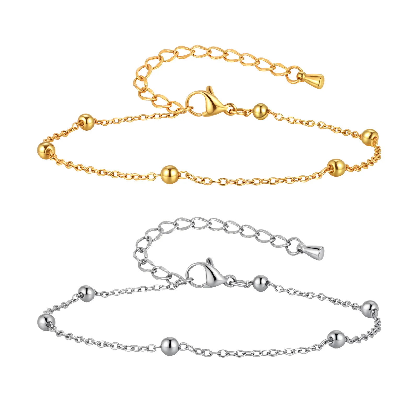 Trendy Simple Cross Chain Bead Anklet for Women 18k Gold Silver Plated Stainless Steel Anklet Bracelet