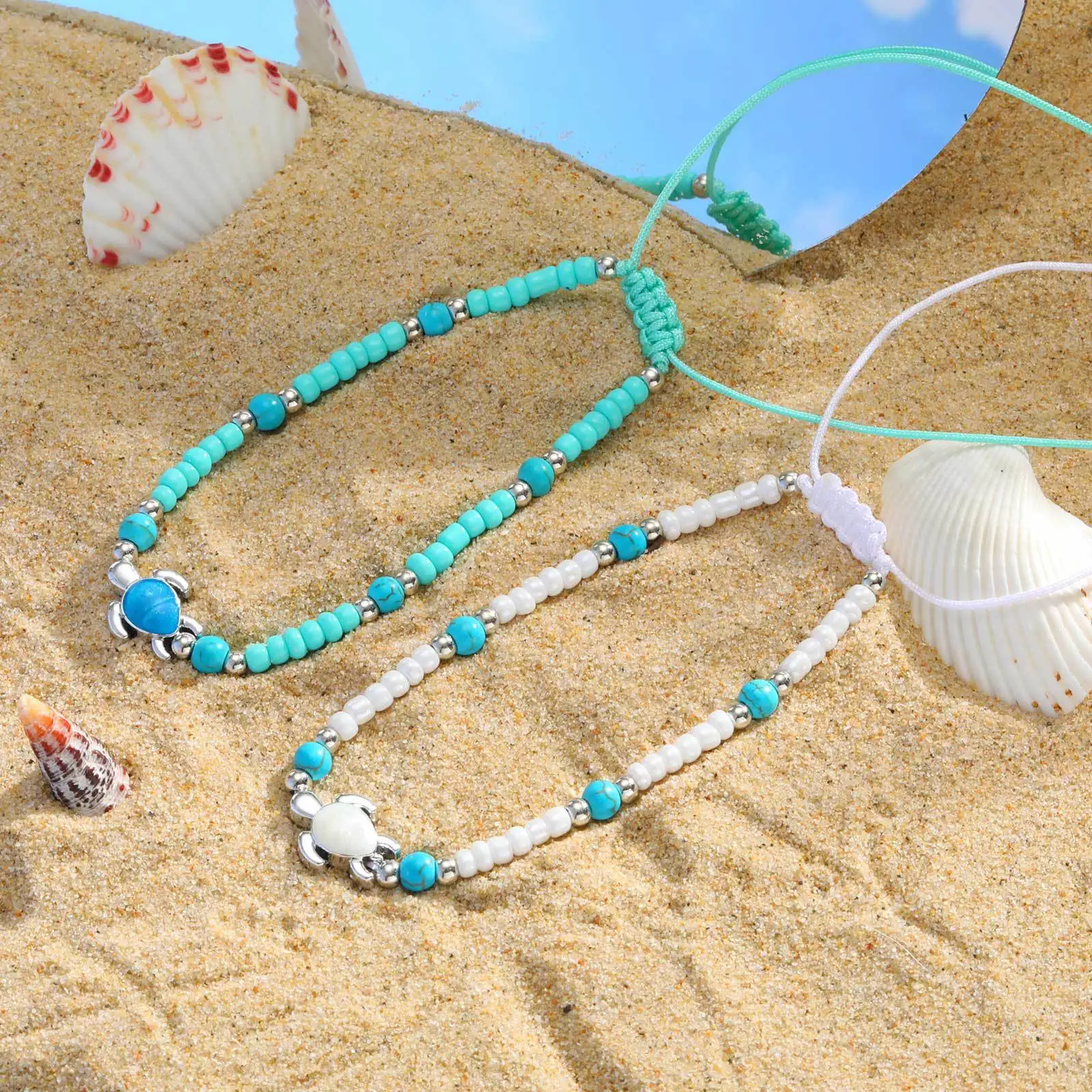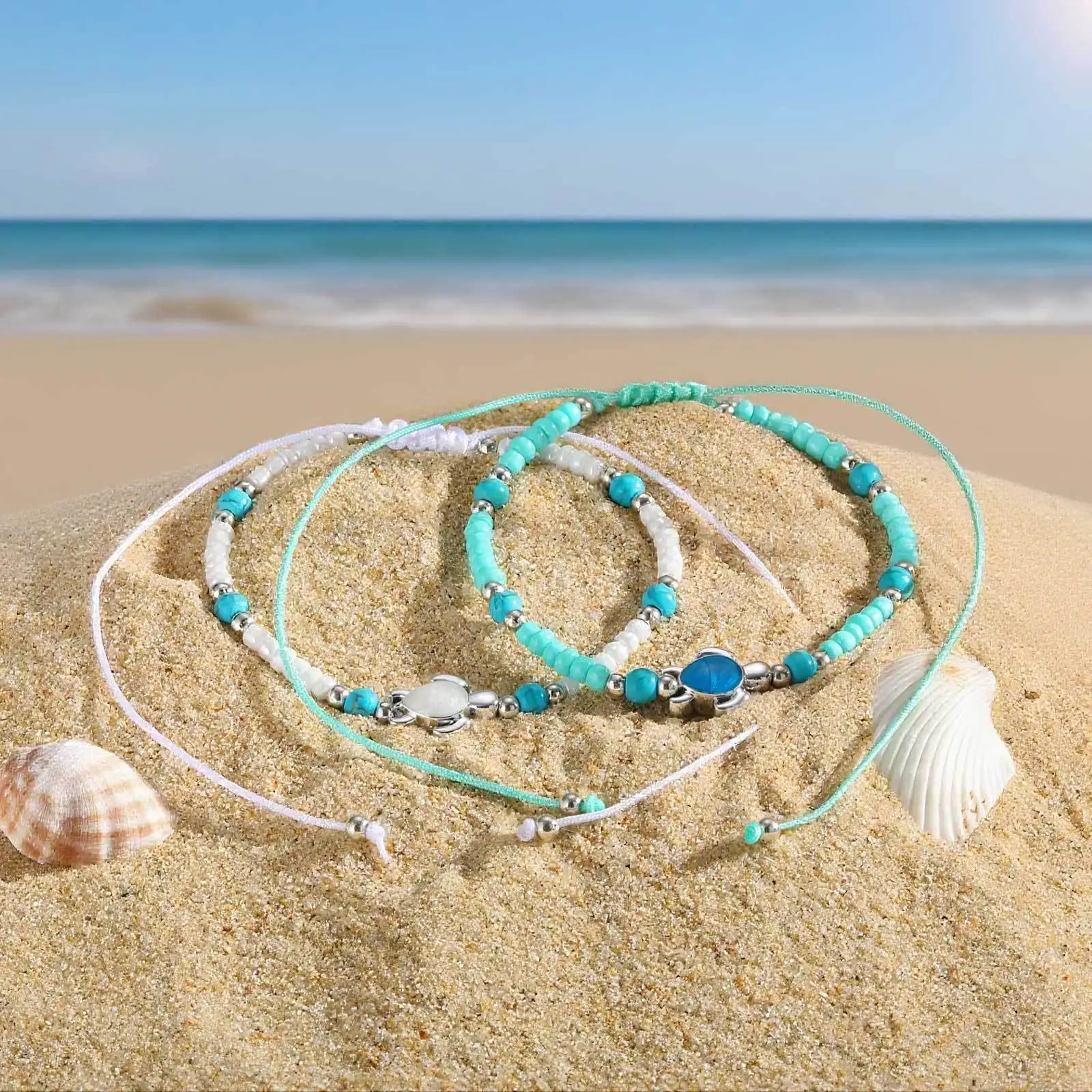 Summer Beach Bohemia Style Women Conch Shell Beads Anklets Stainless Steel Adjustable Charm Anklets