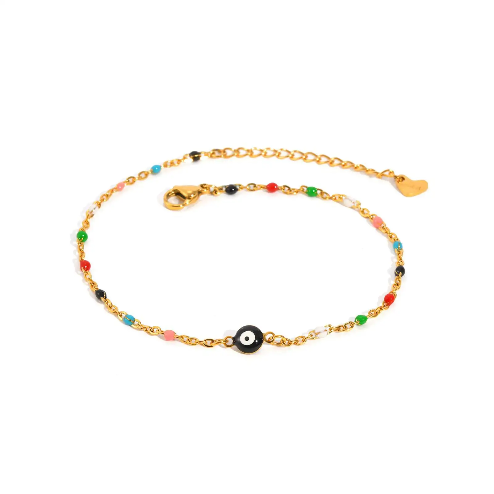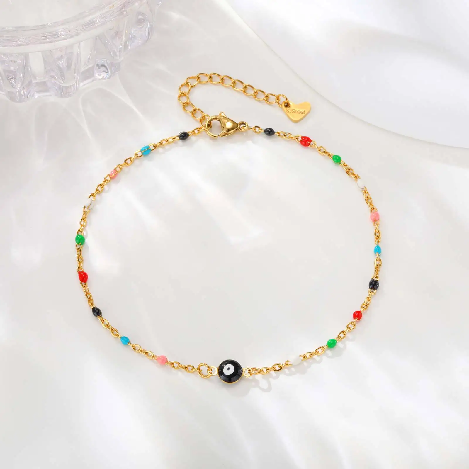 Customizable Multicolor Waterproof Stainless Steel Anklets Blue Eye Charms Beaded Chains Anklets for Women