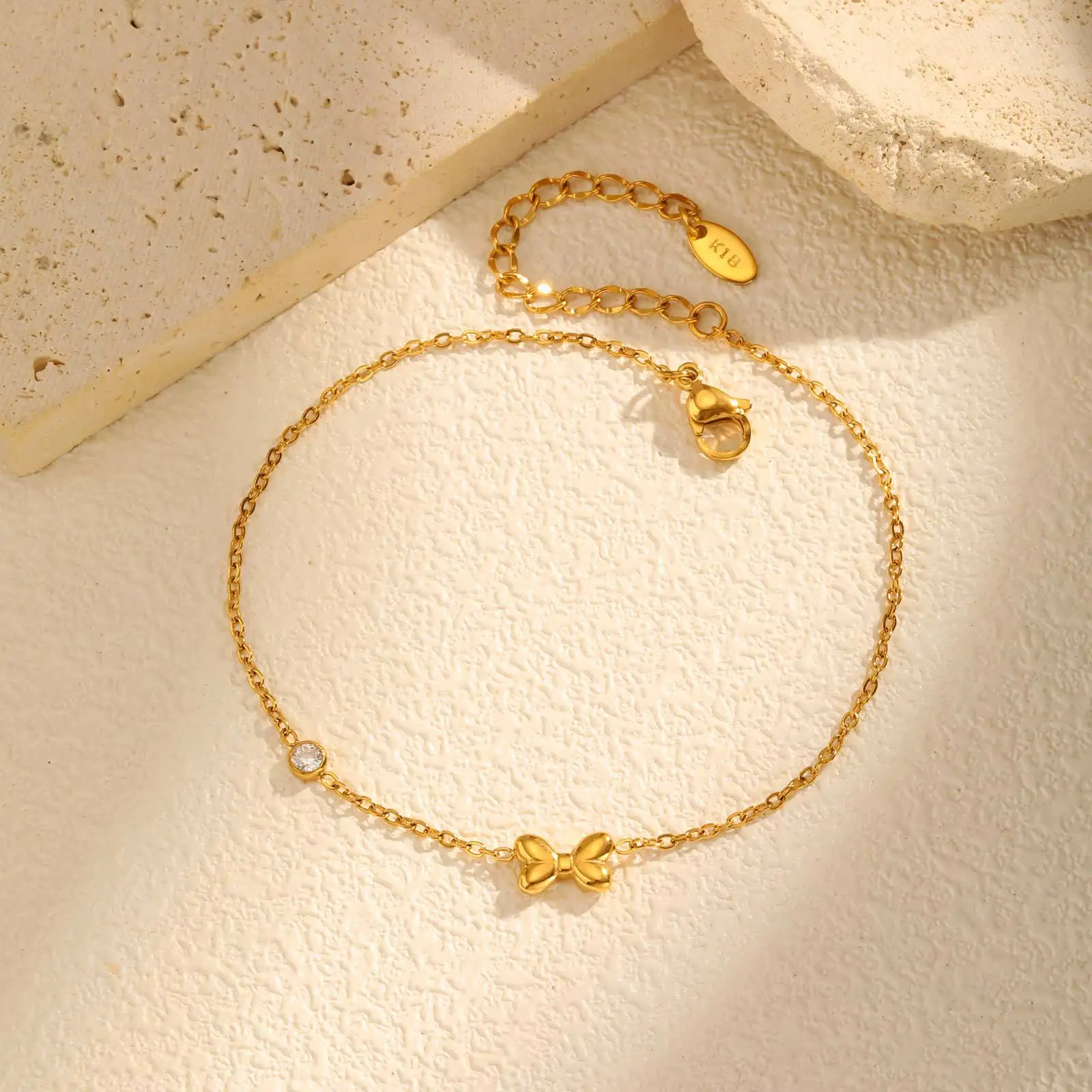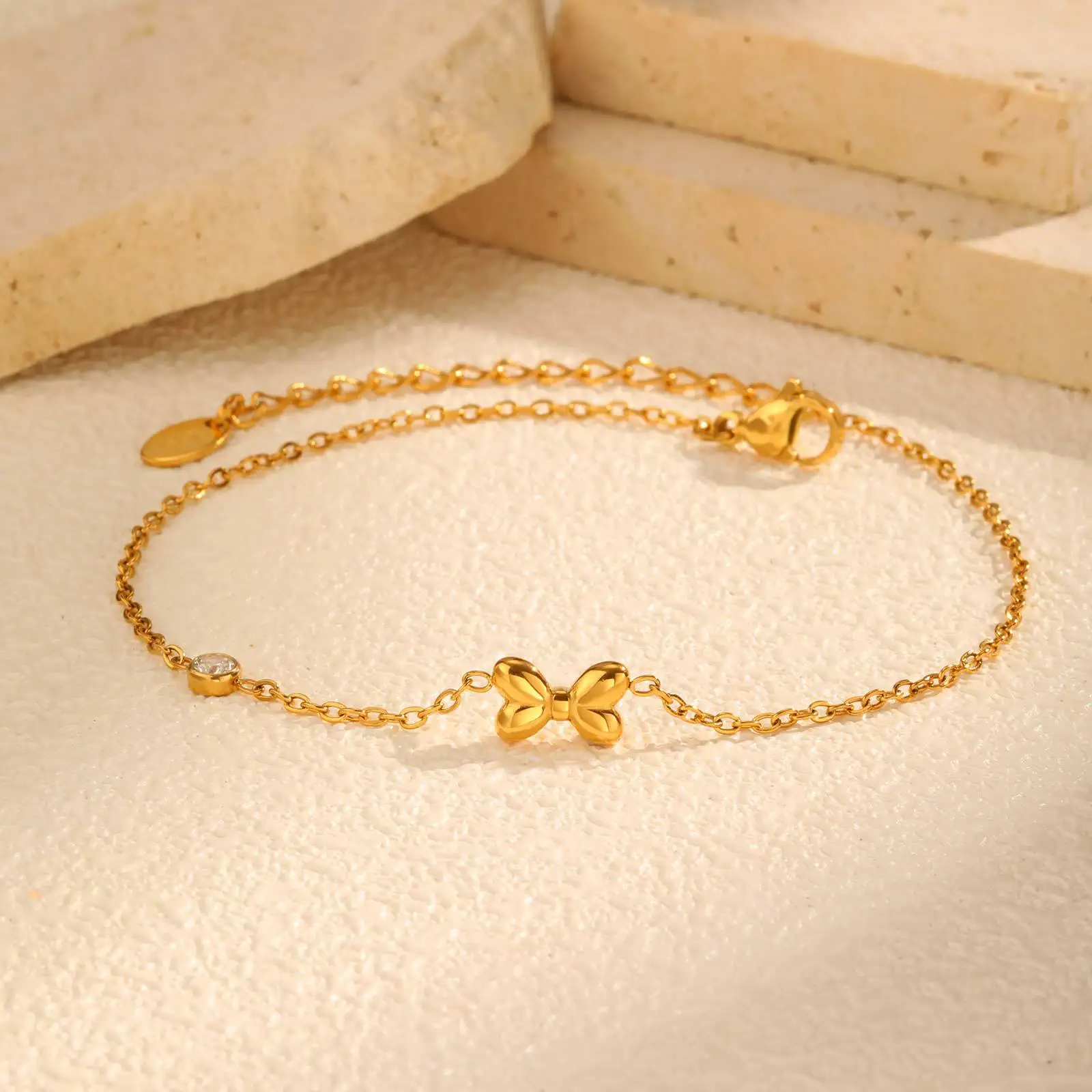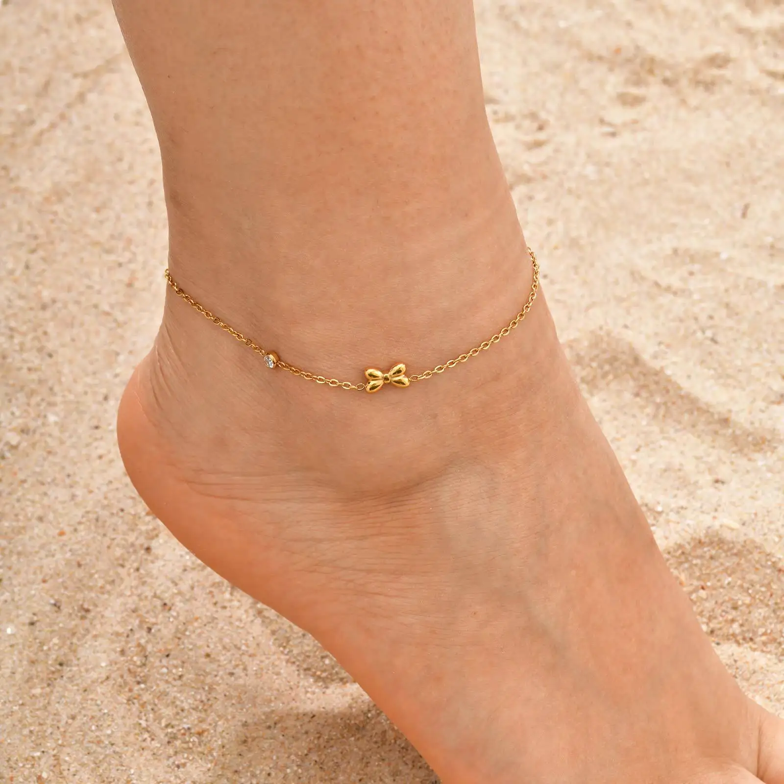 Minimalist Elegant Jewelry Flat Cross Chain Zircon Bowknot Anklets Anti Tarnish Anklets for Women